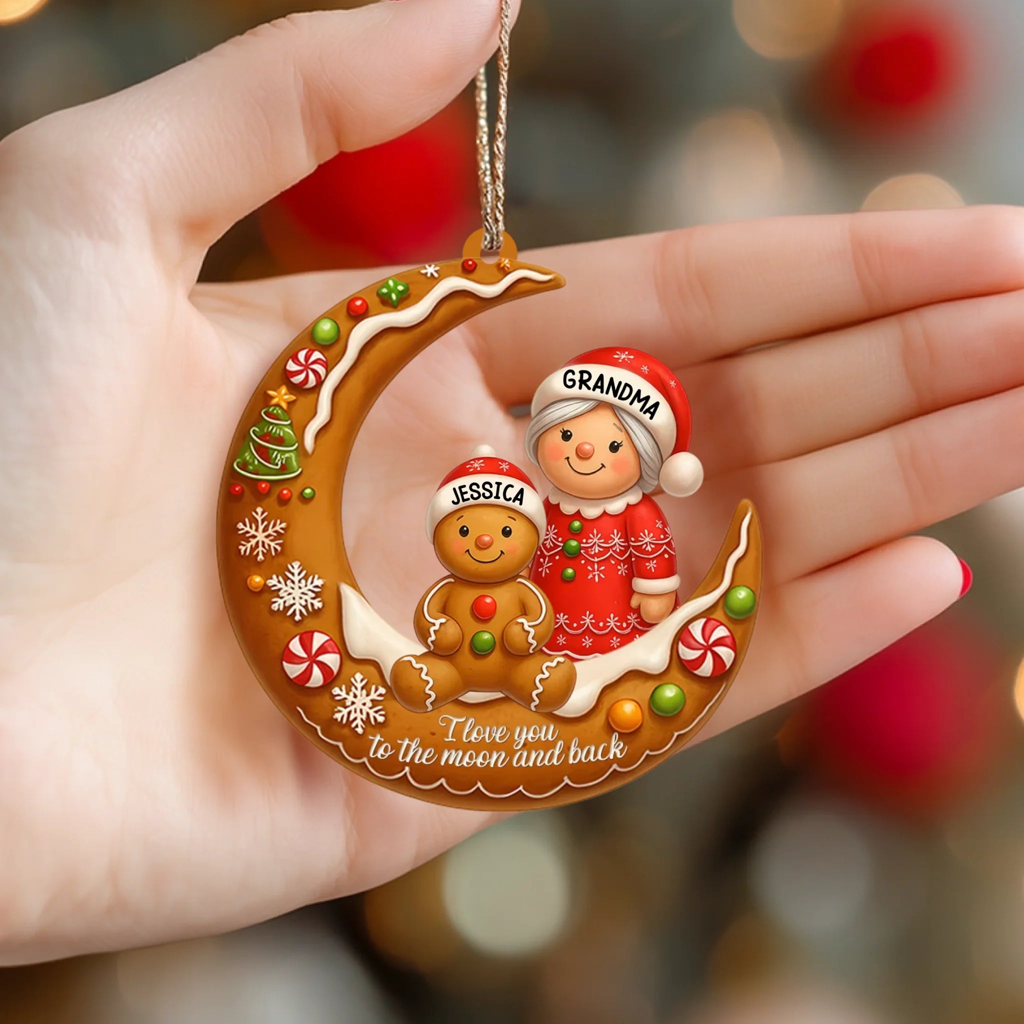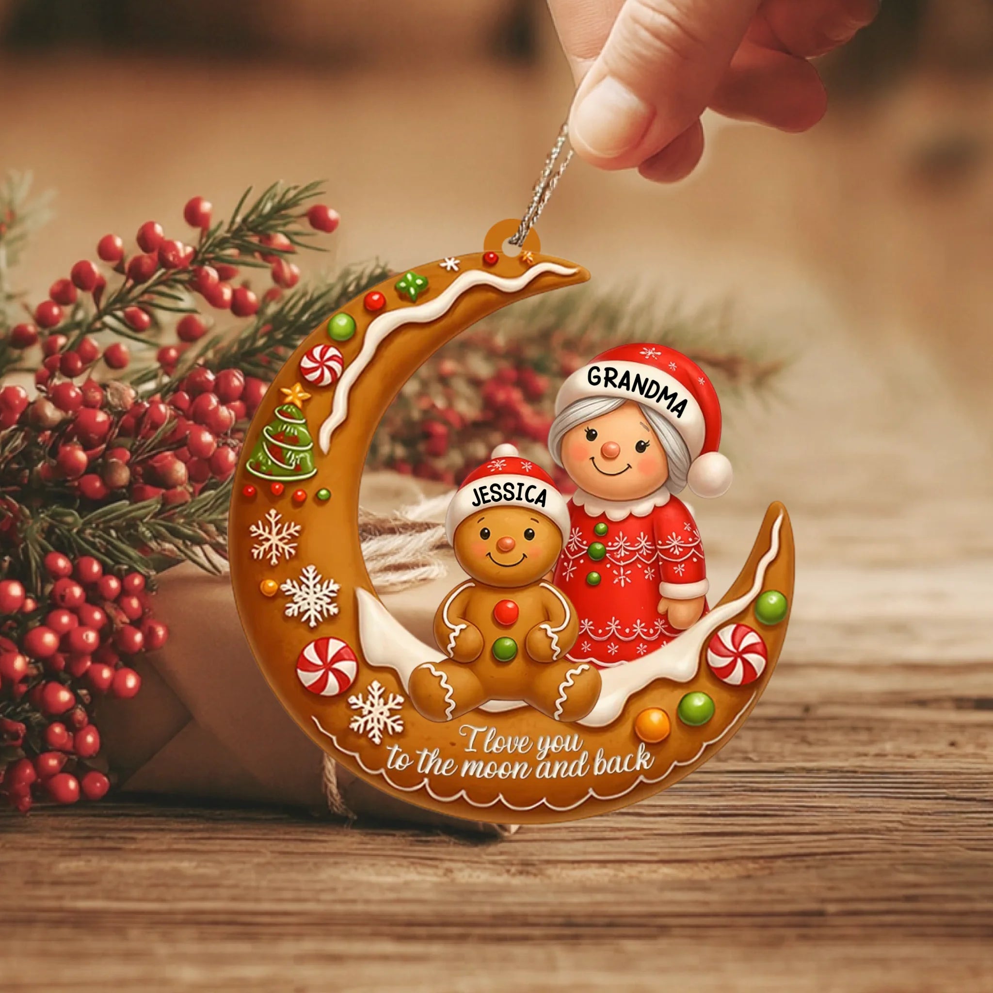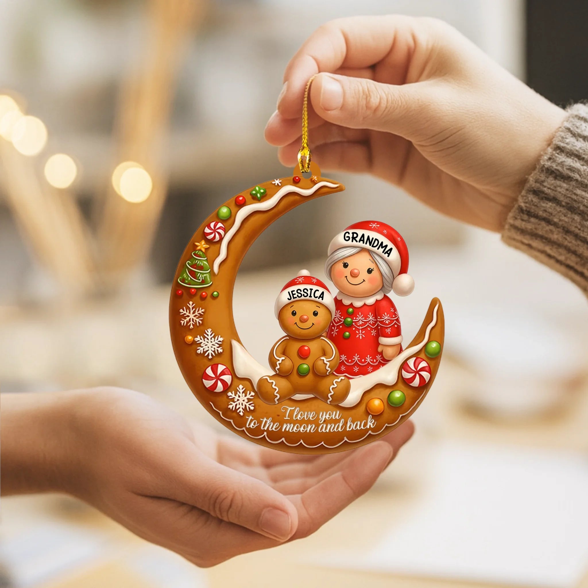 Personalisierte Lebkuchen-Oma & Enkelkinder Acryl-Ornament – „Ich hab dich bis zum Mond und zurück lieb“ Individuelles Weihnachtsgeschenk