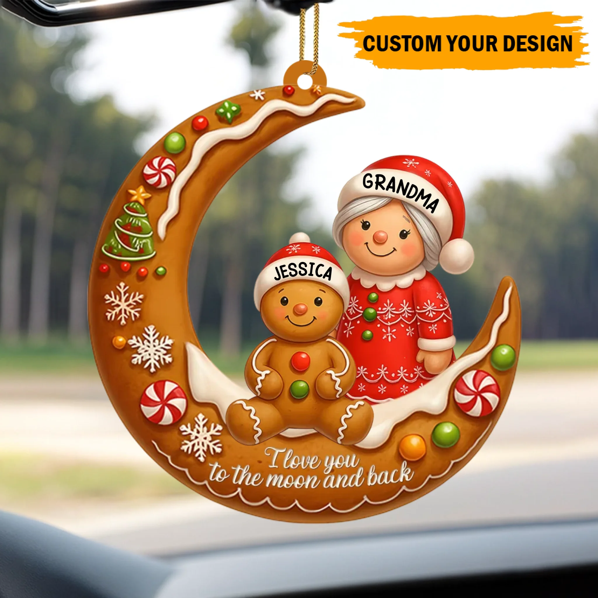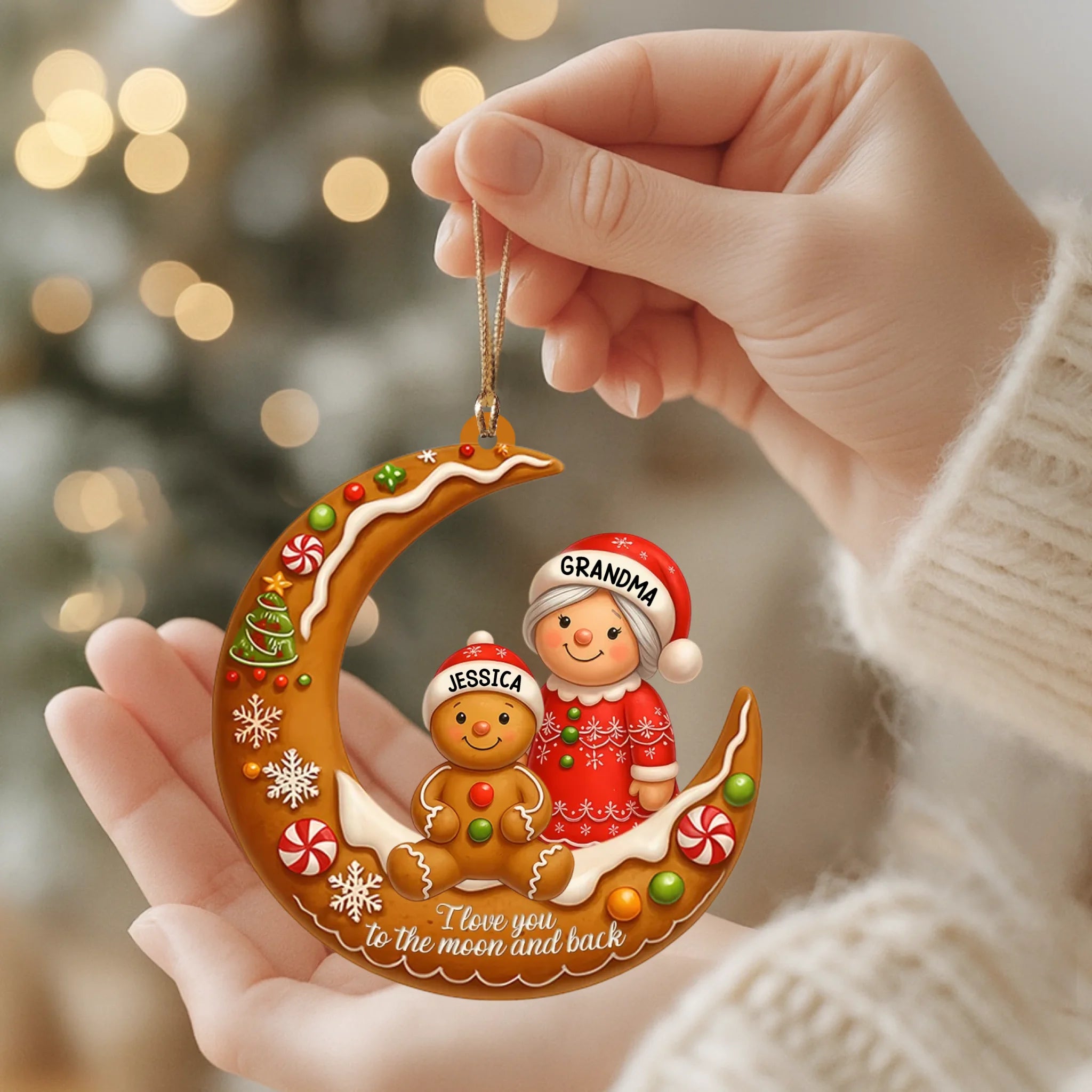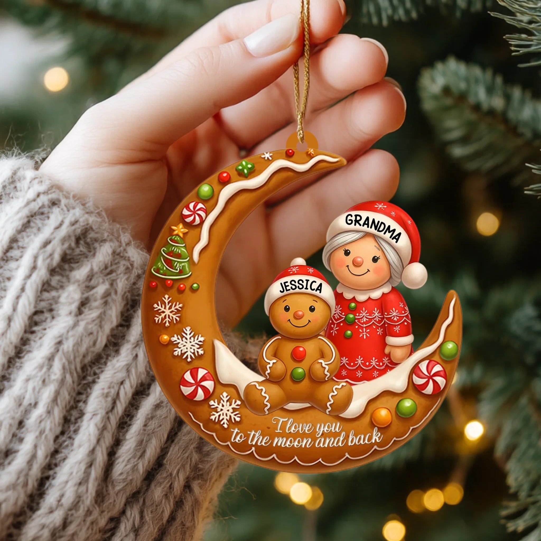 Personalisierte Lebkuchen-Oma & Enkelkinder Acryl-Ornament – „Ich hab dich bis zum Mond und zurück lieb“ Individuelles Weihnachtsgeschenk