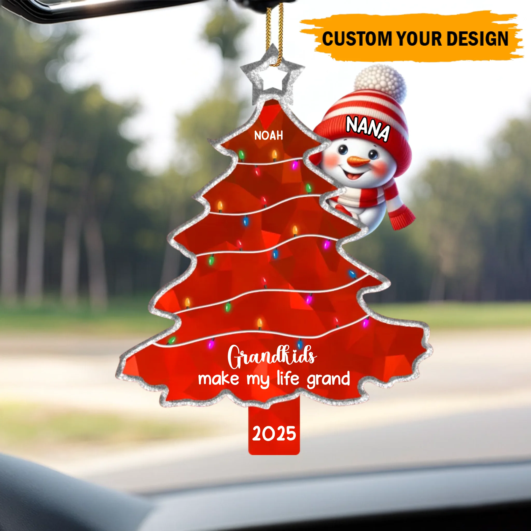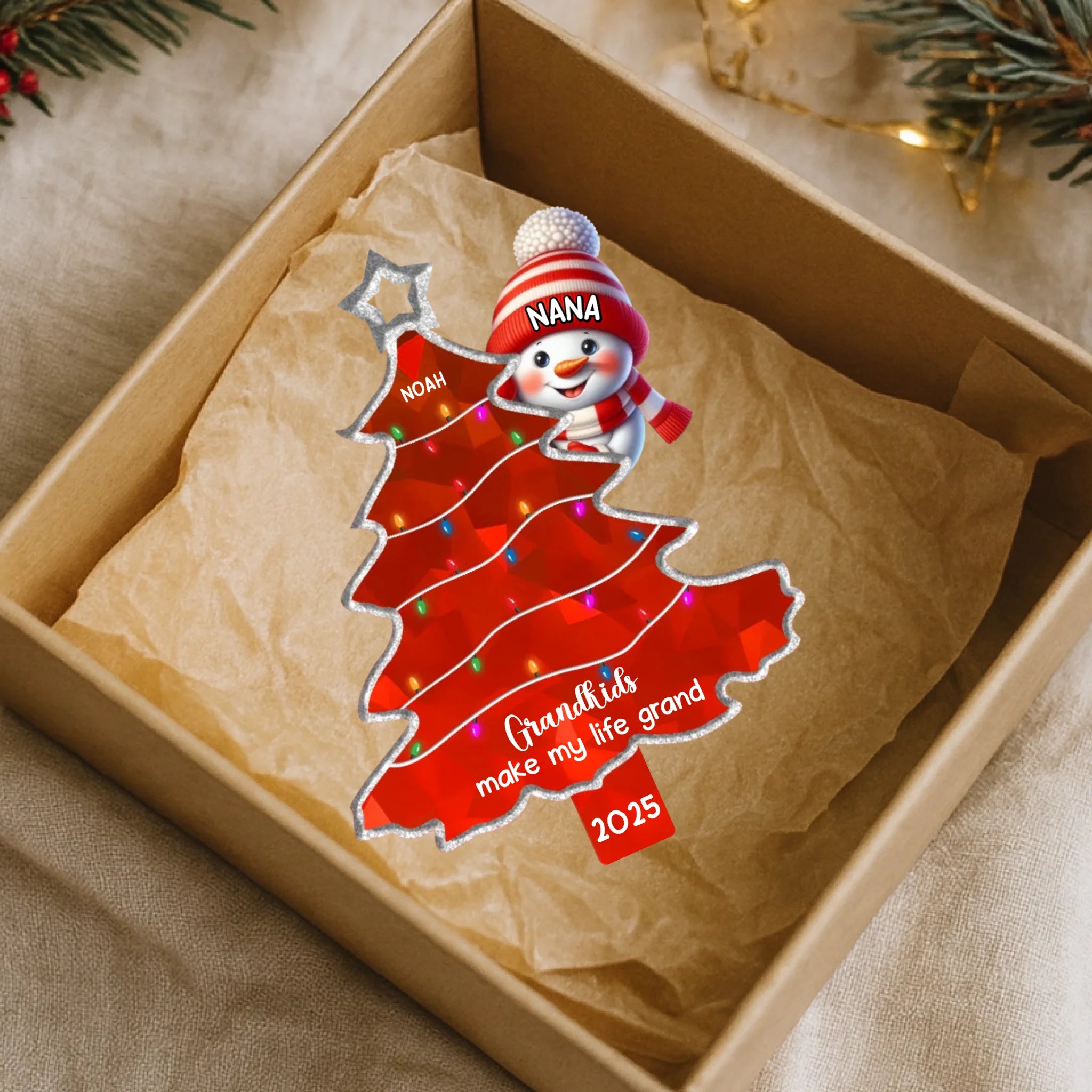 Personalized Grandma & Grandkids Acrylic Ornament – Custom Name Snowman Christmas Tree Decoration 2025