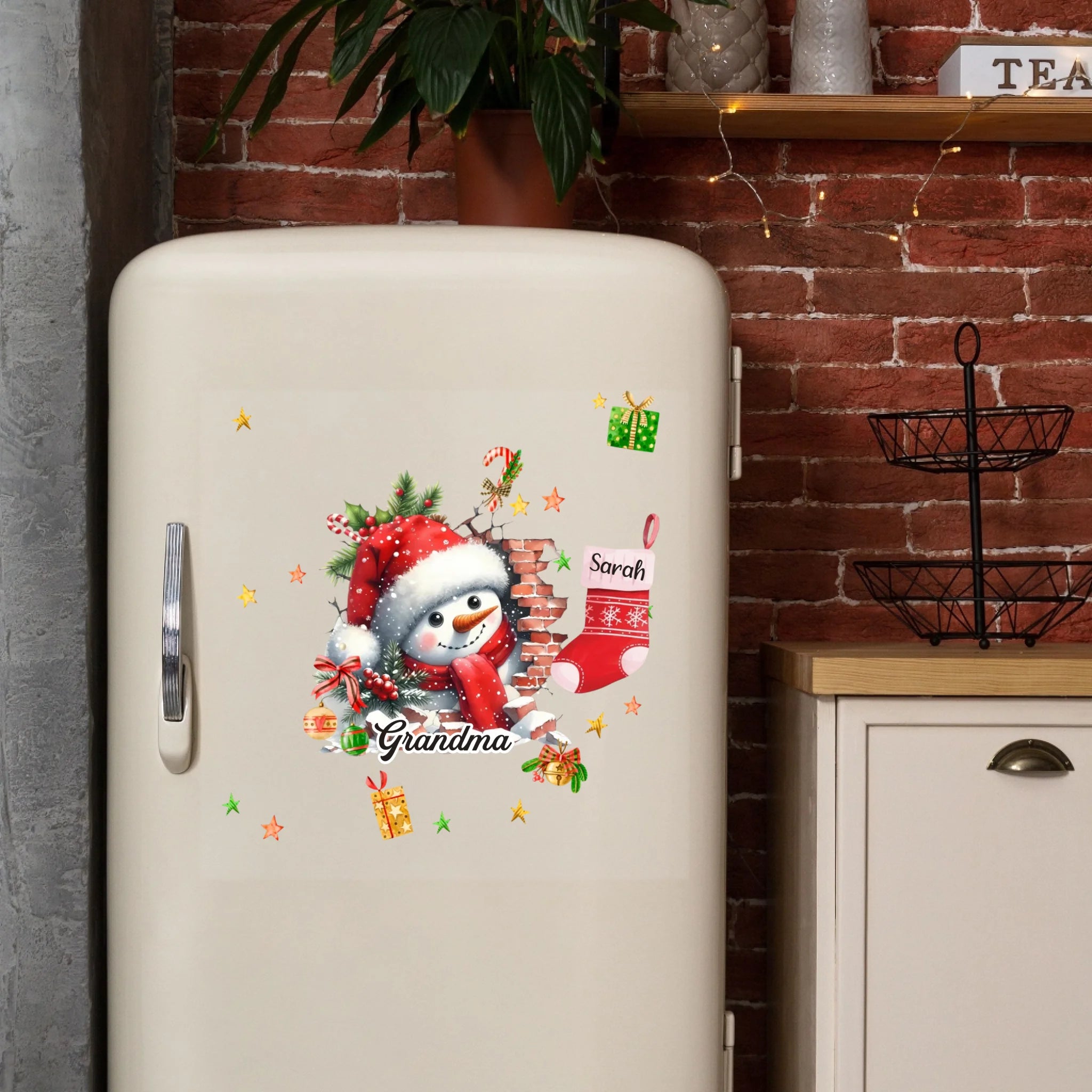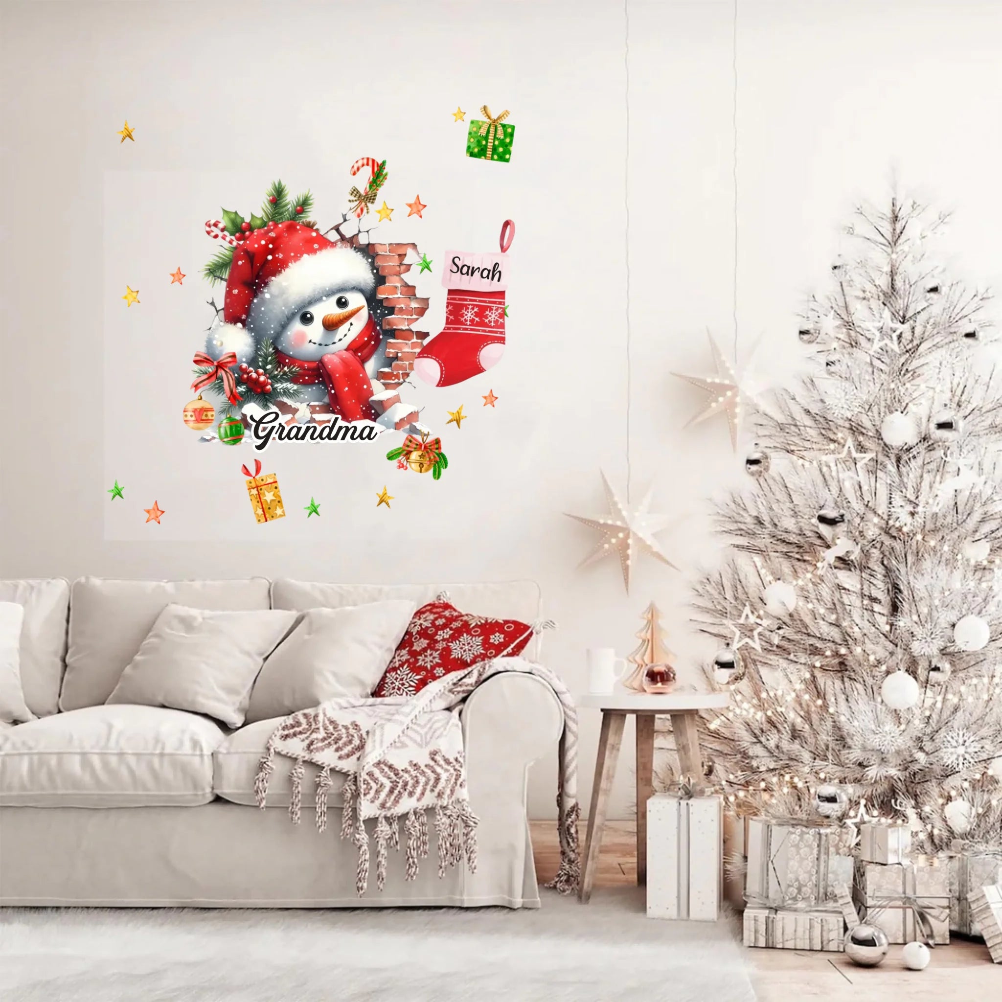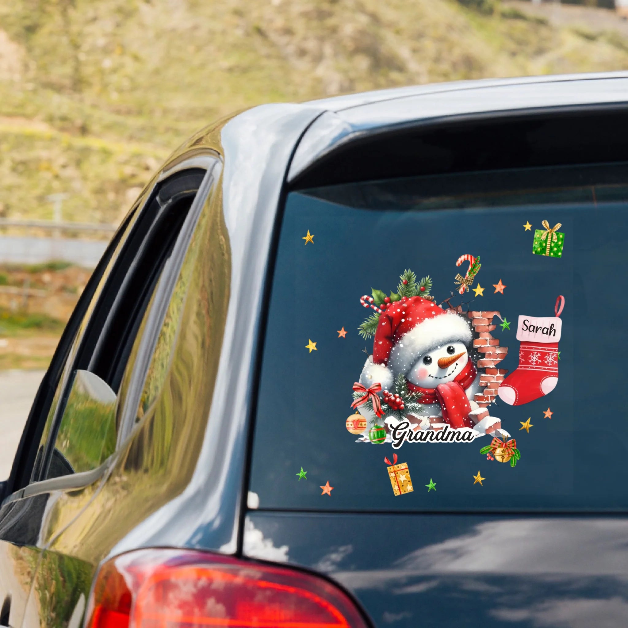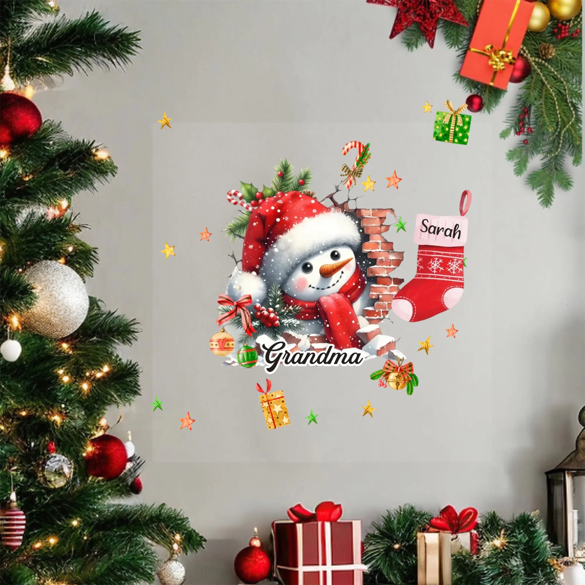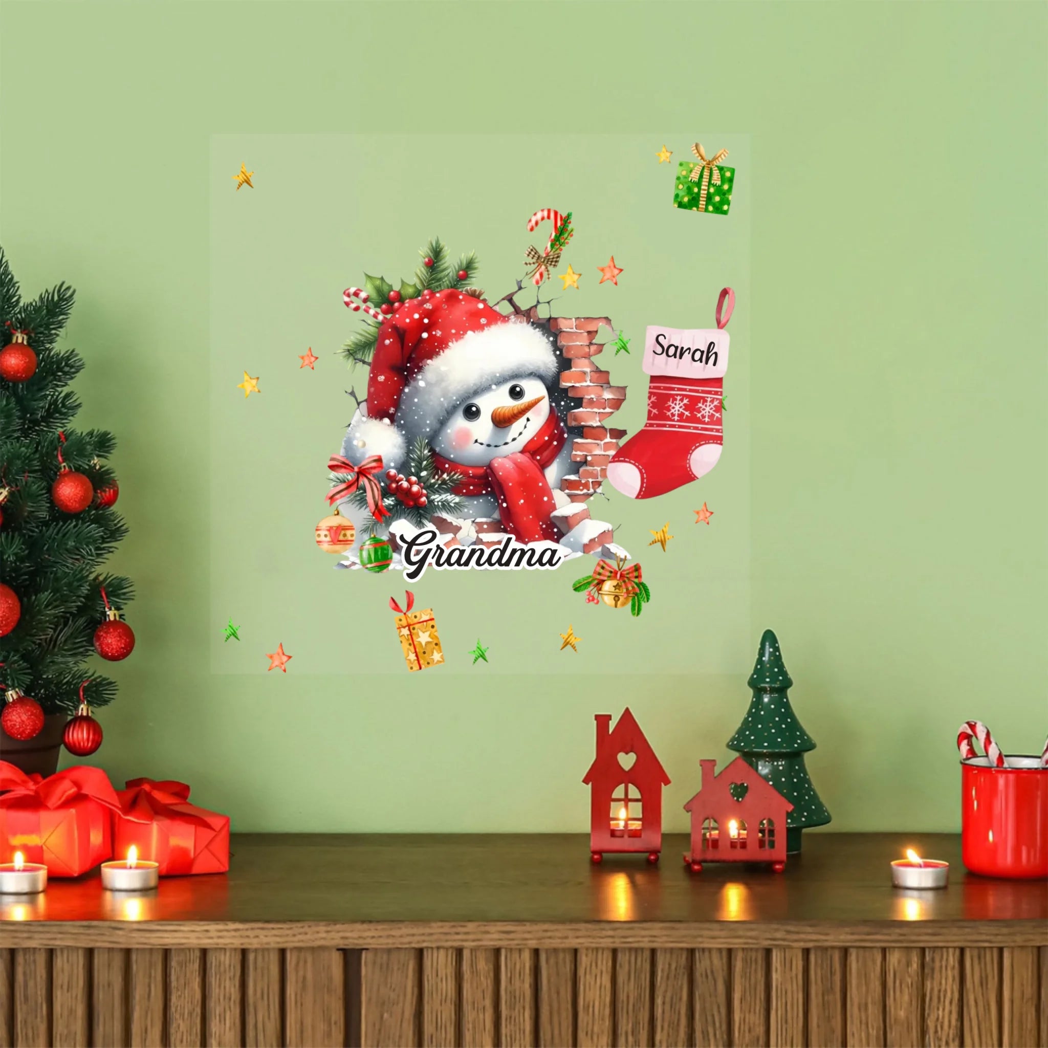 Personalized Grandma & Grandkids Snowman Christmas Wall Decal – Custom Name Holiday Sticker Decoration for Home or Gifts