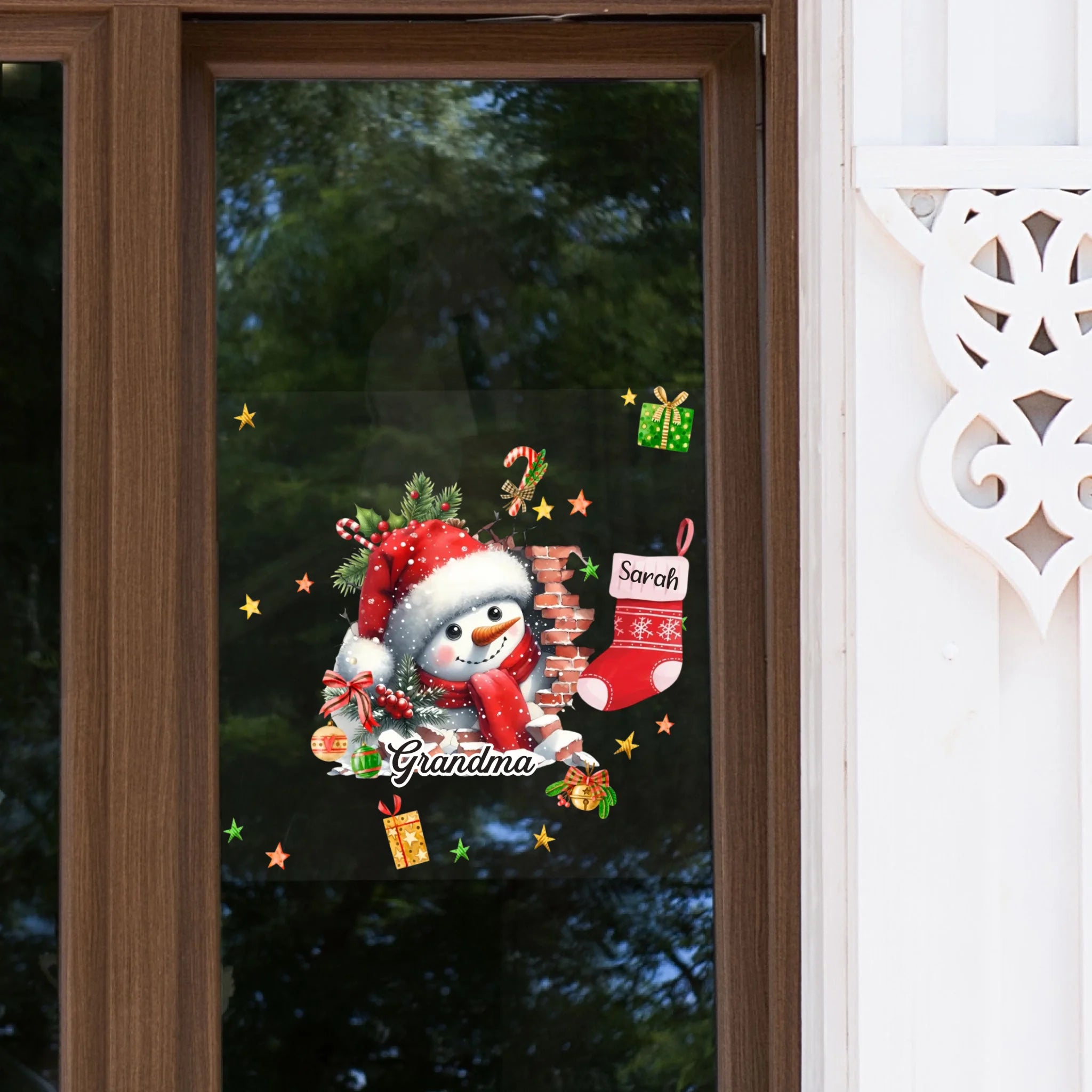 Featuring an adorable snowman peeking through a brick wall, surrounded by sparkling stars, candy canes, and gifts — this decal is the perfect way to add a cozy holiday touch. Personalize it with Grandma’s name or the names of her grandkids to make it truly special.