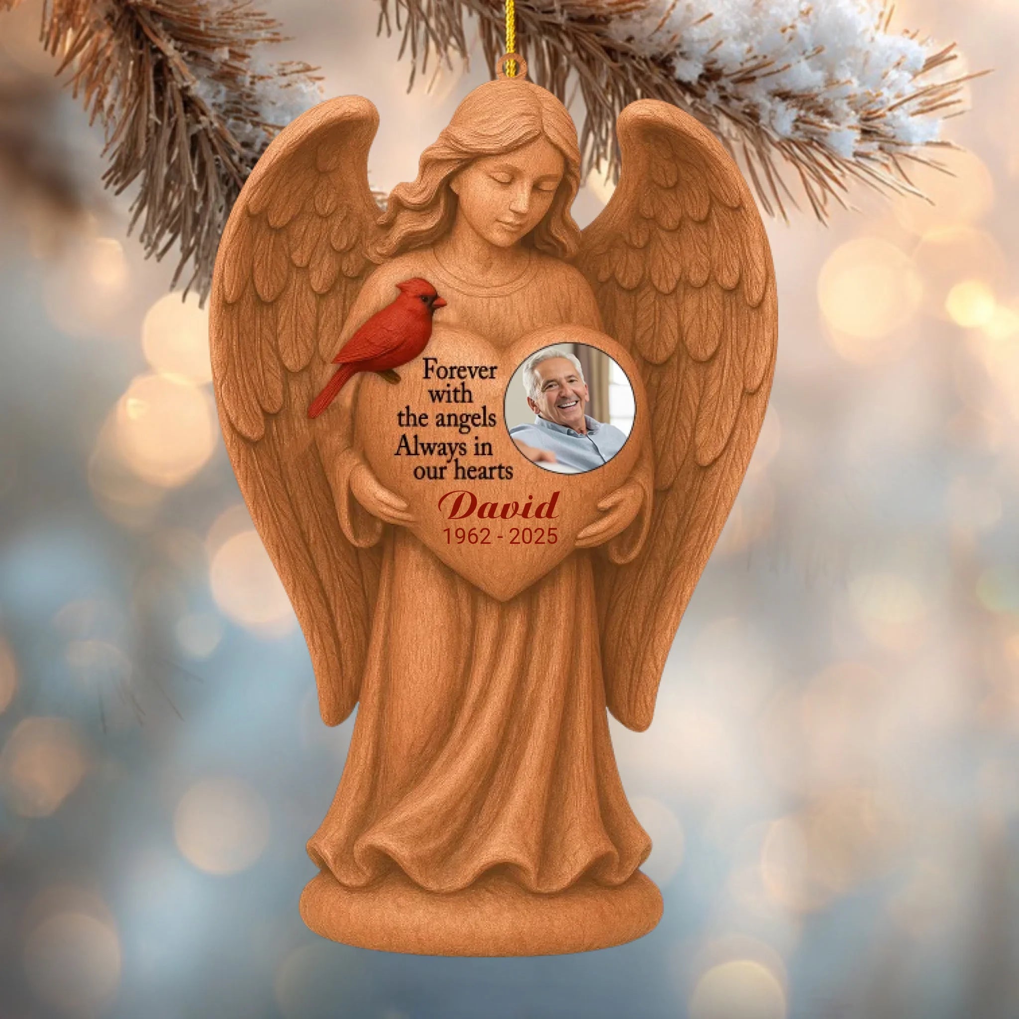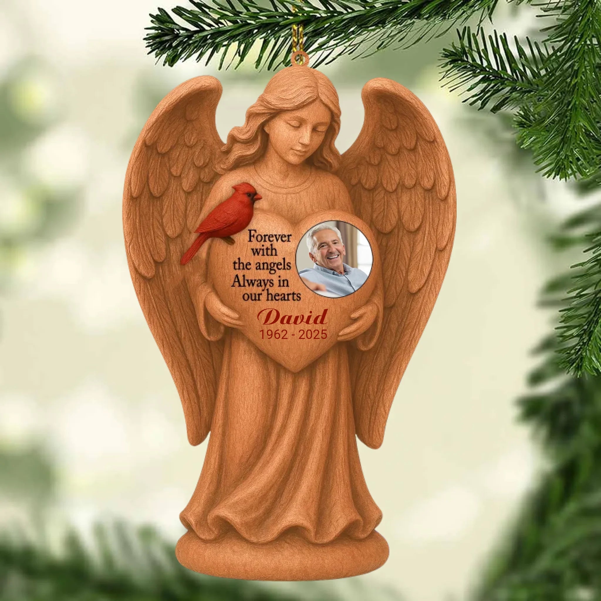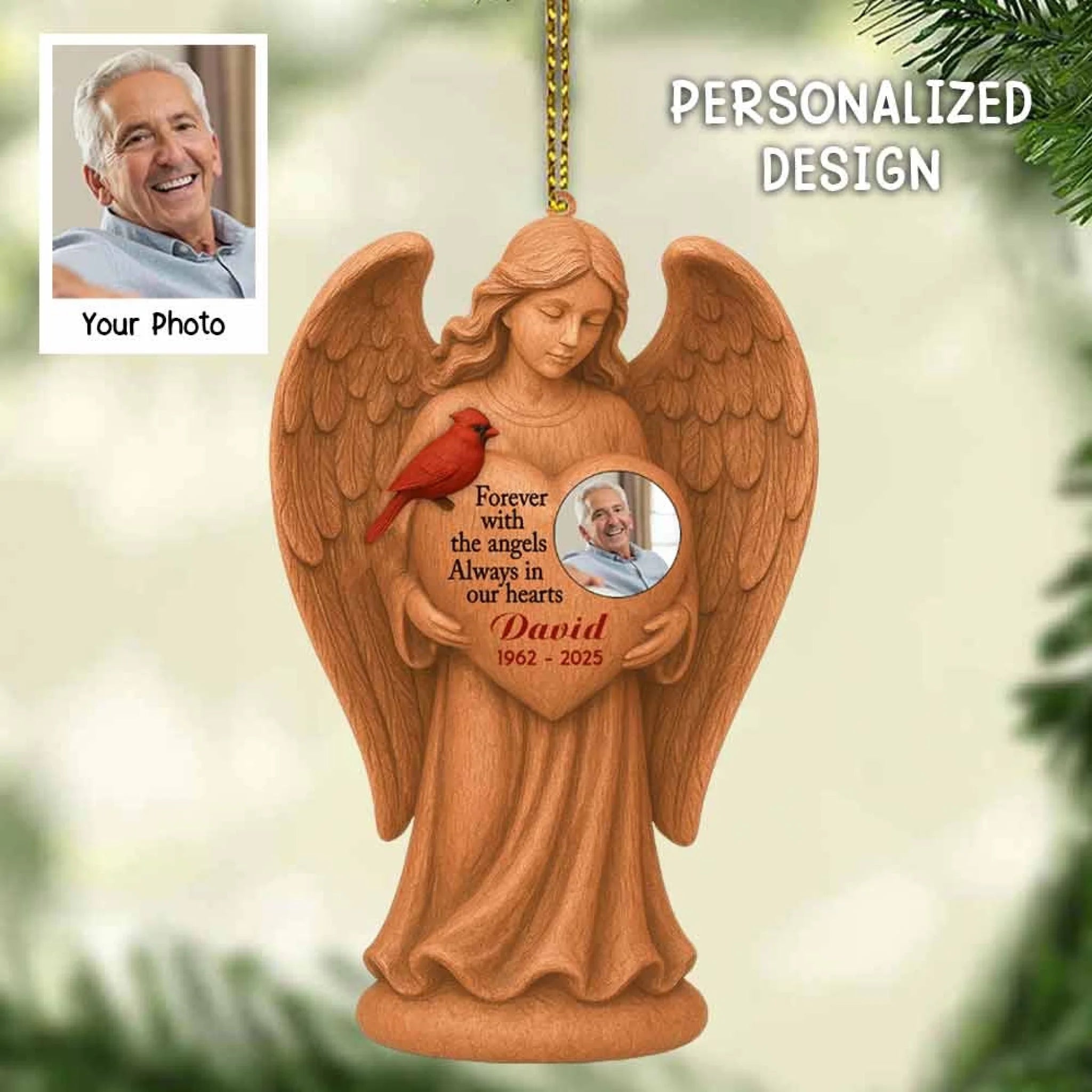 Ornamento Ángel Conmemorativo Personalizado – Recuerdo Acrílico con Foto y Nombre a Medida para Seres Queridos | Regalo de Condolencia, Decoración En Memoria