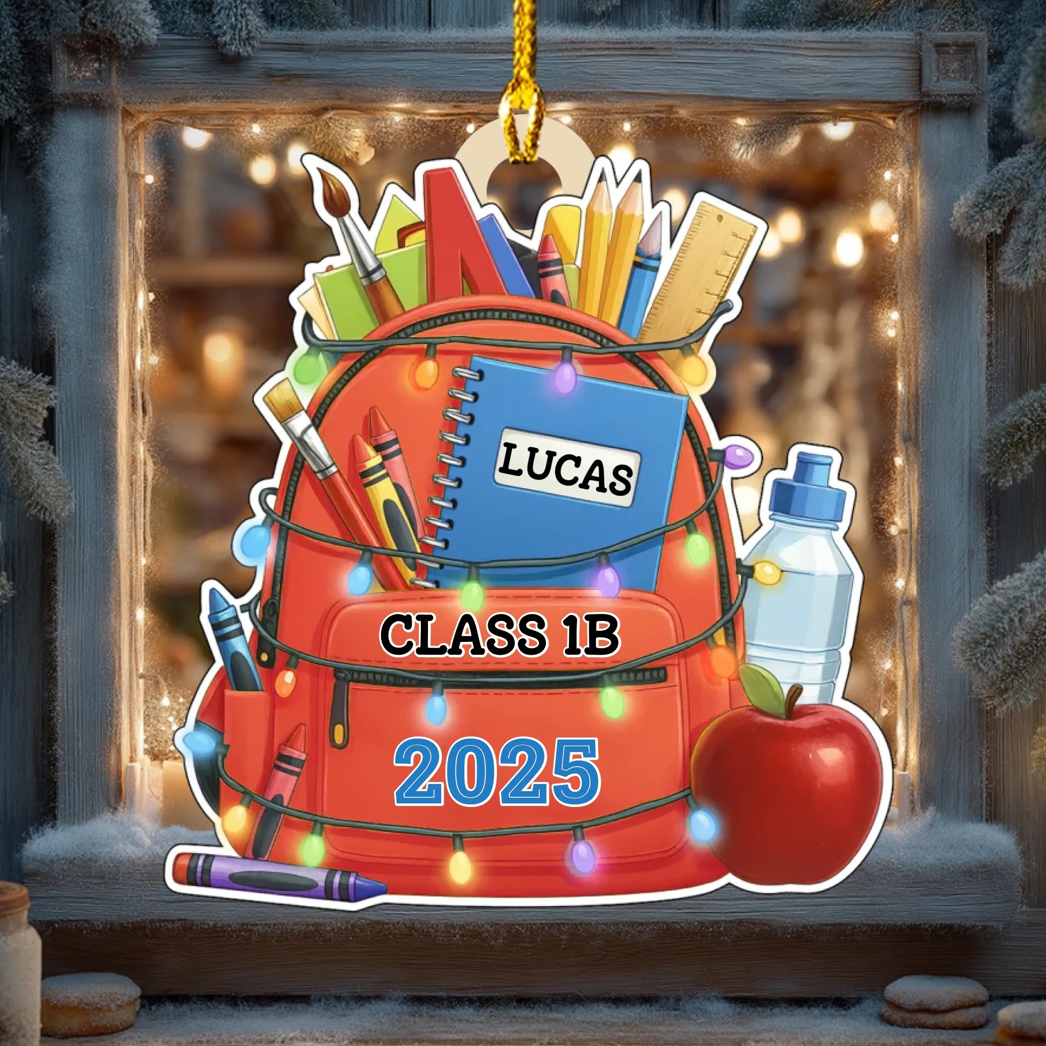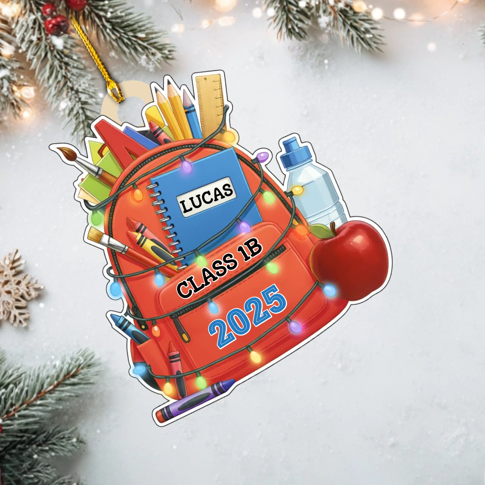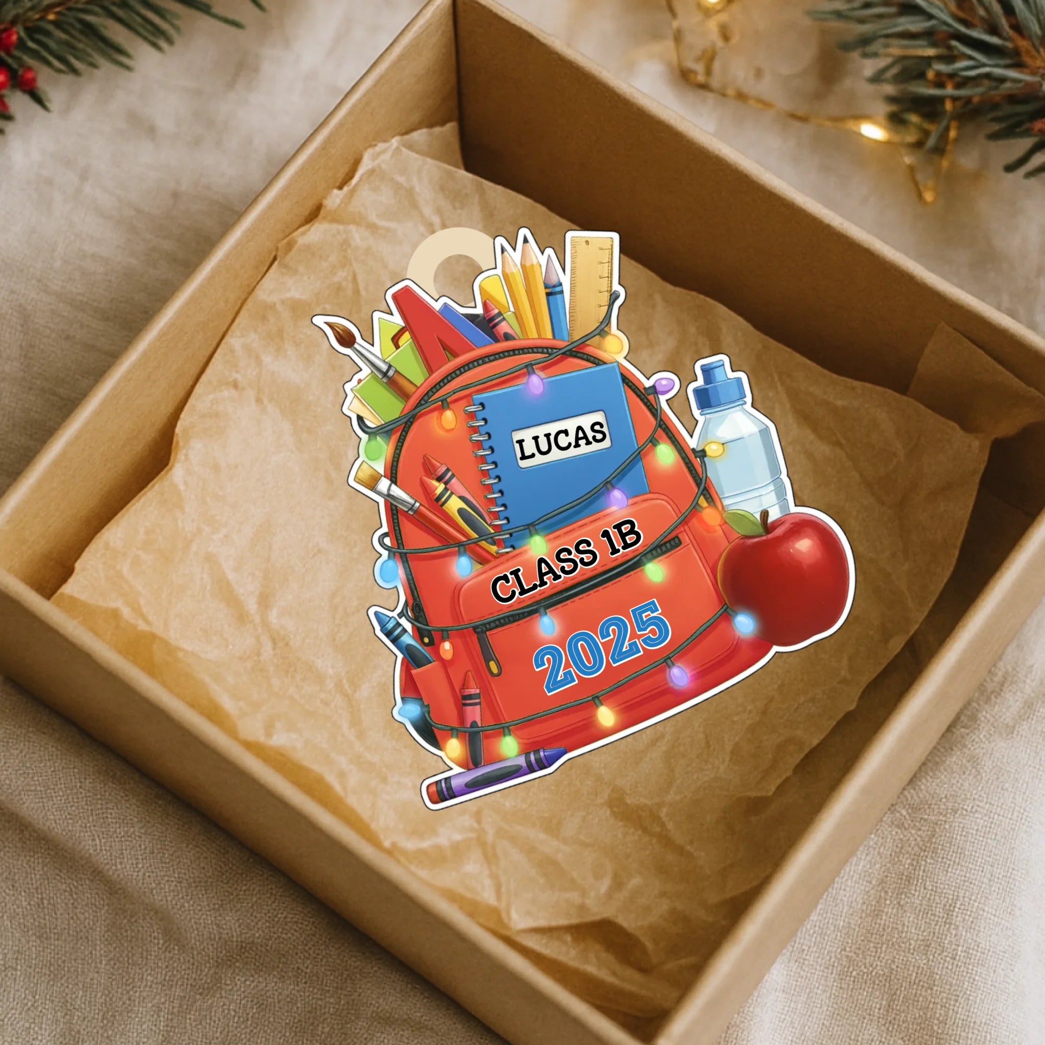 Personalisiertes Schulrucksack-Holzornament – Individuelle Namens- und Klassen-Erinnerung für Kinder | Ausgabe 2025