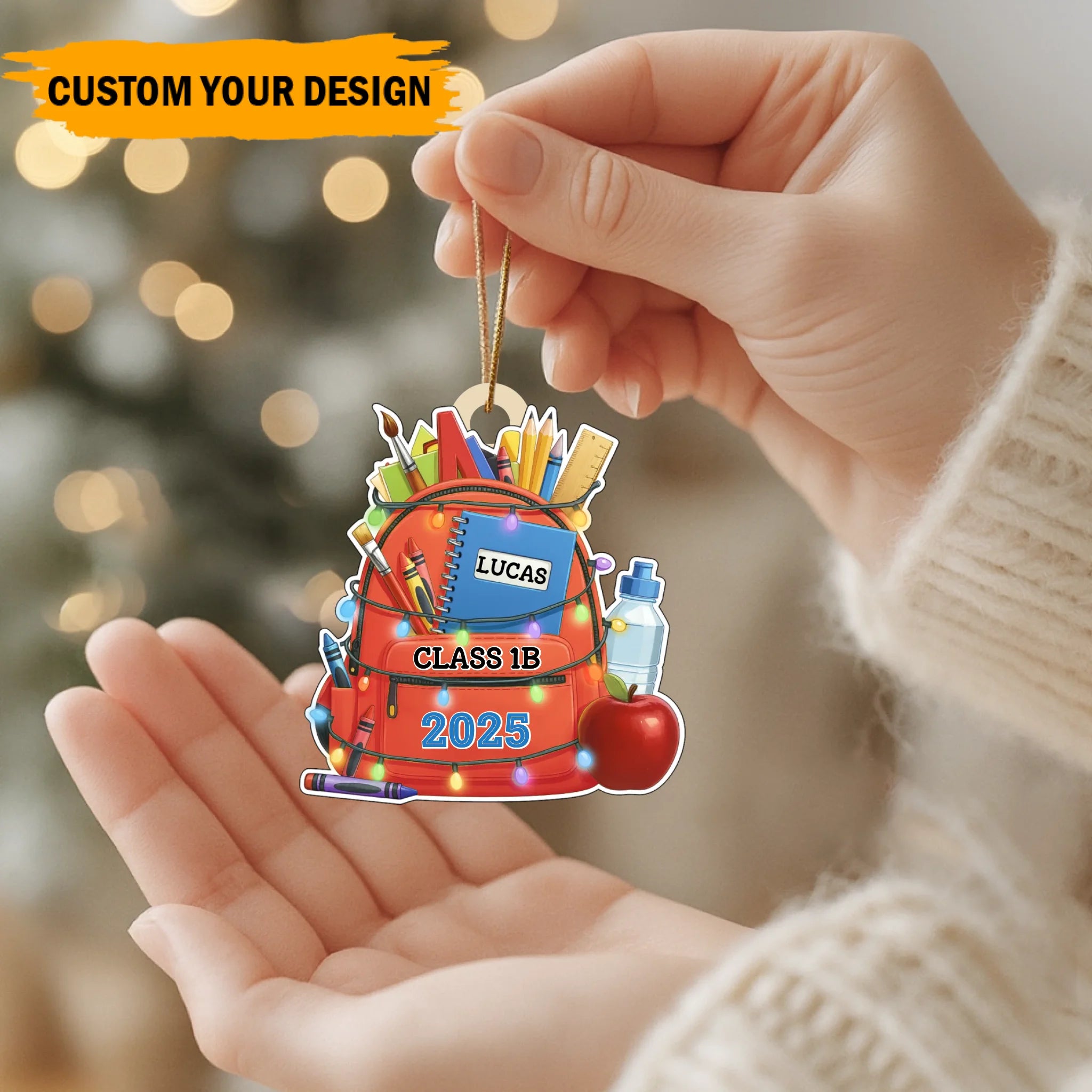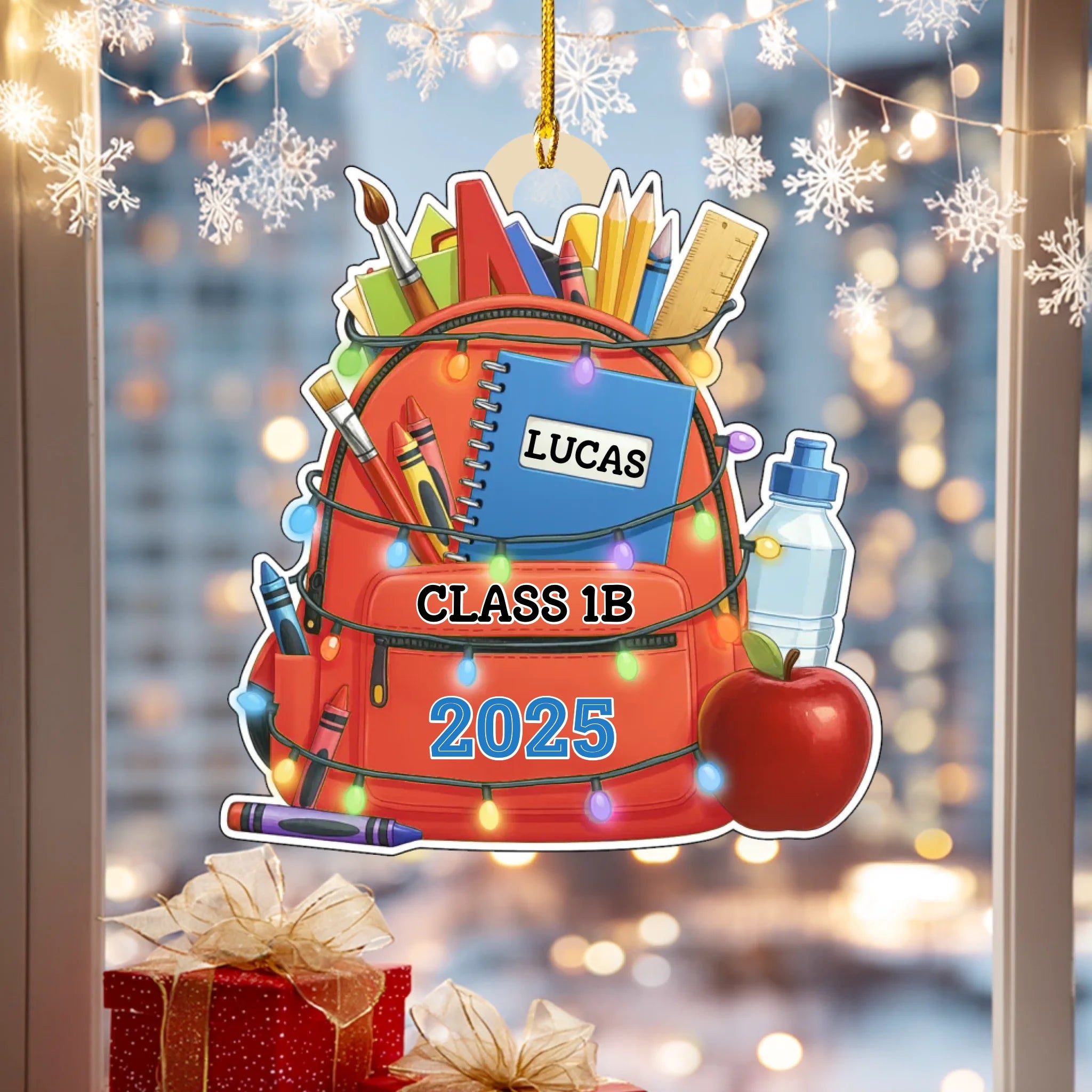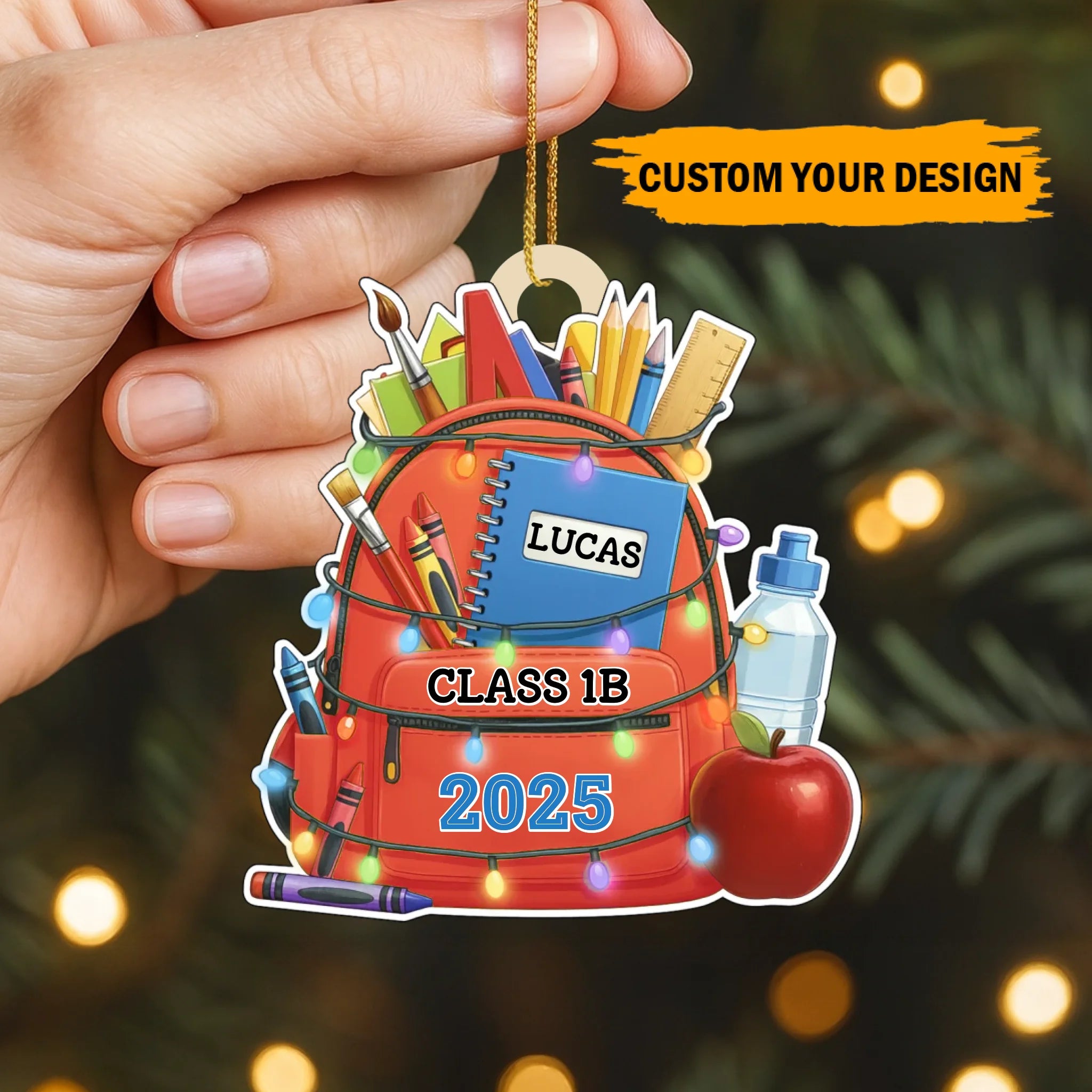 Personalisiertes Schulrucksack-Holzornament – Individuelle Namens- und Klassen-Erinnerung für Kinder | Ausgabe 2025