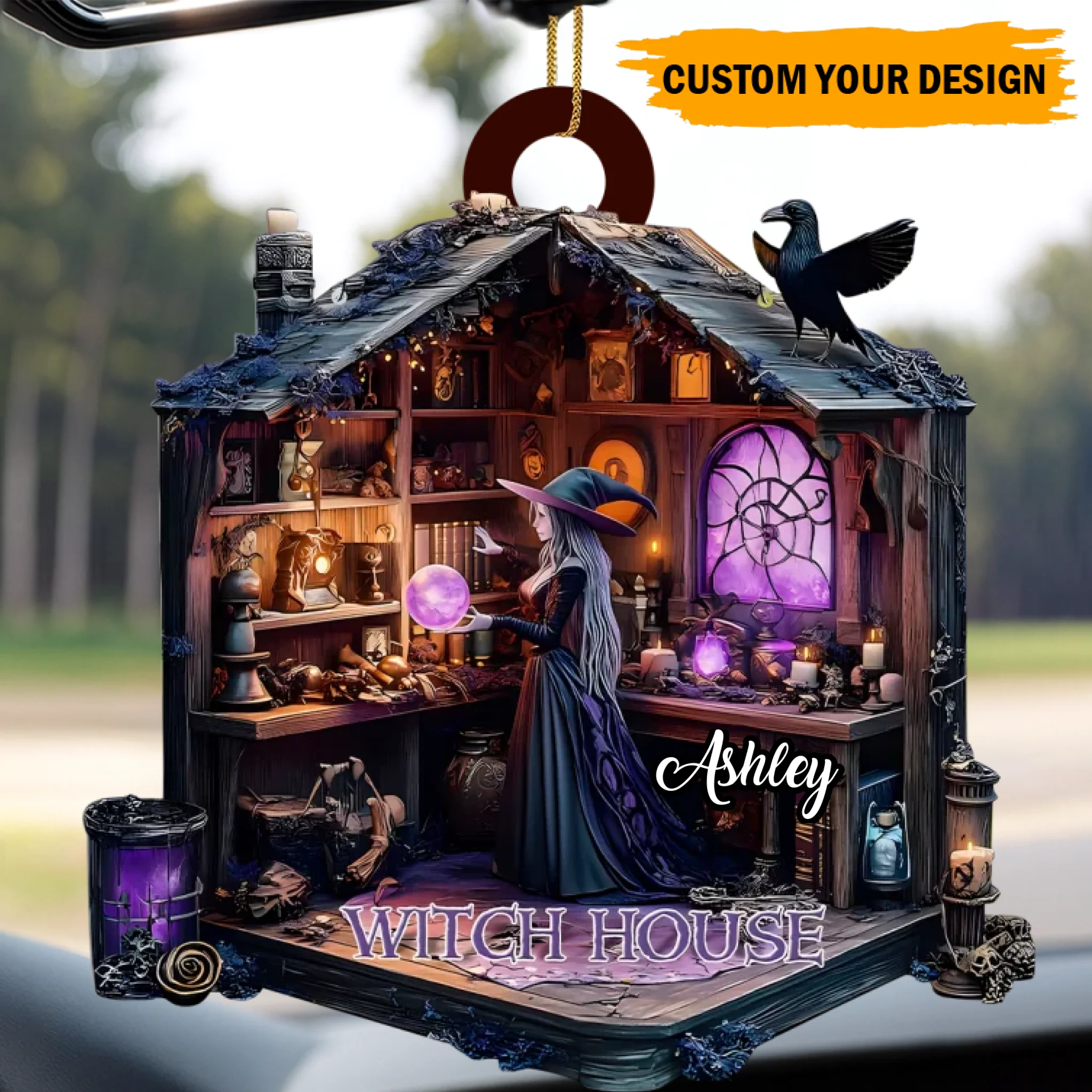 Vielseitige Dekoration: Perfekt zum Aufhängen an einem Weihnachtsbaum, Autospiegel oder zur Präsentation in Ihrem Zuhause, Büro oder Ihrer Hexen-Einrichtung. Mit vorgestanztem Loch und Glitzerdrahtband zum einfachen Aufhängen.