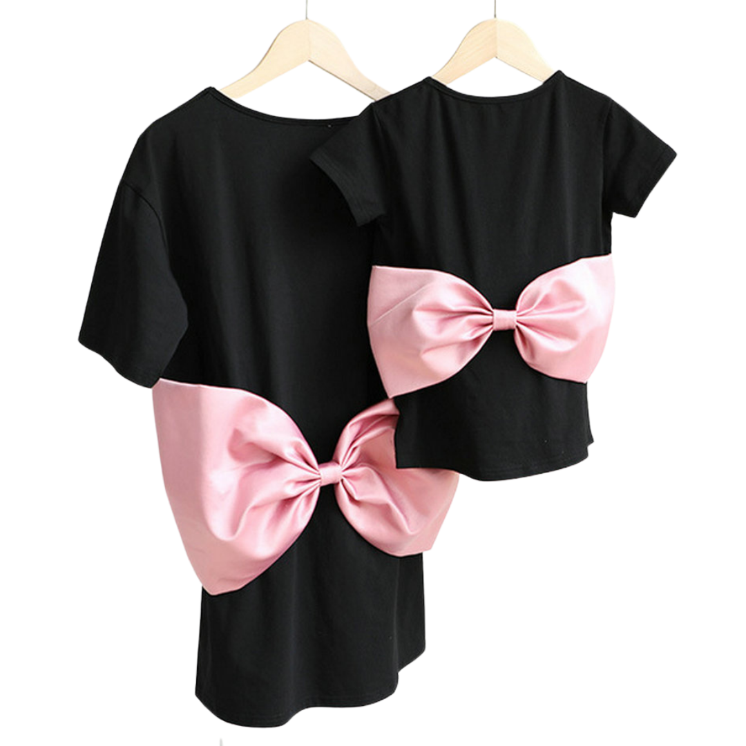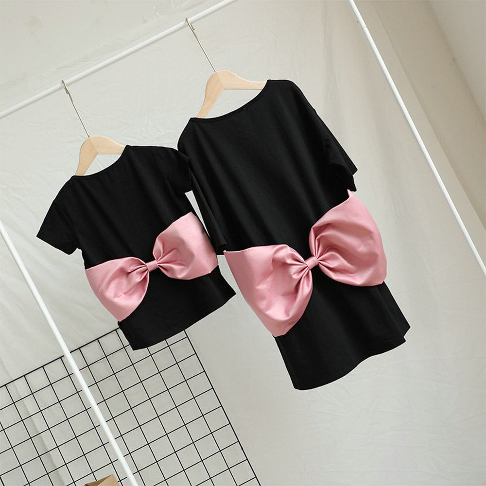 Vestido camiseta a juego para mamá e hija con gran lazo rosa