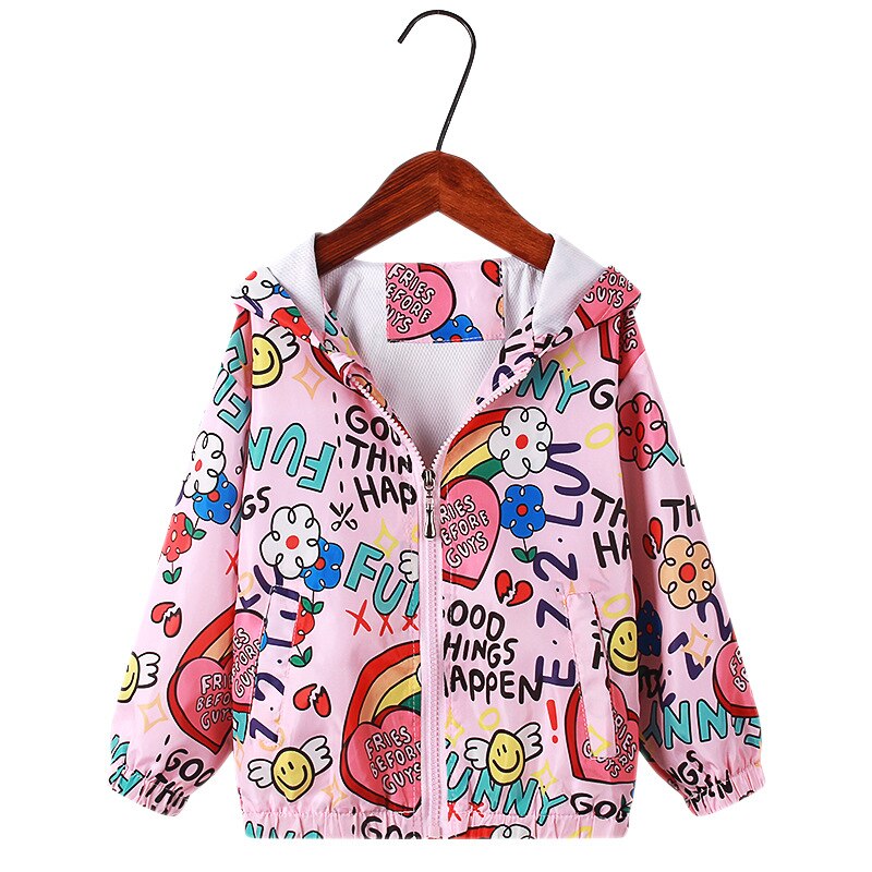 Bereite deine Mädchen auf das Wetter vor mit dieser Pink Rainbow Unicorn Windbreaker Hoodie Jacket. Das Material ist glatt, leicht und sehr wasserabweisend, damit du trocken und warm bleibst. Das Design ist tailliert mit einem Reißverschluss vorne und langen Ärmeln.