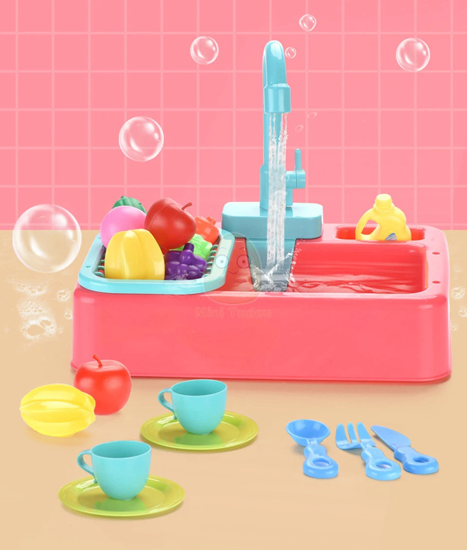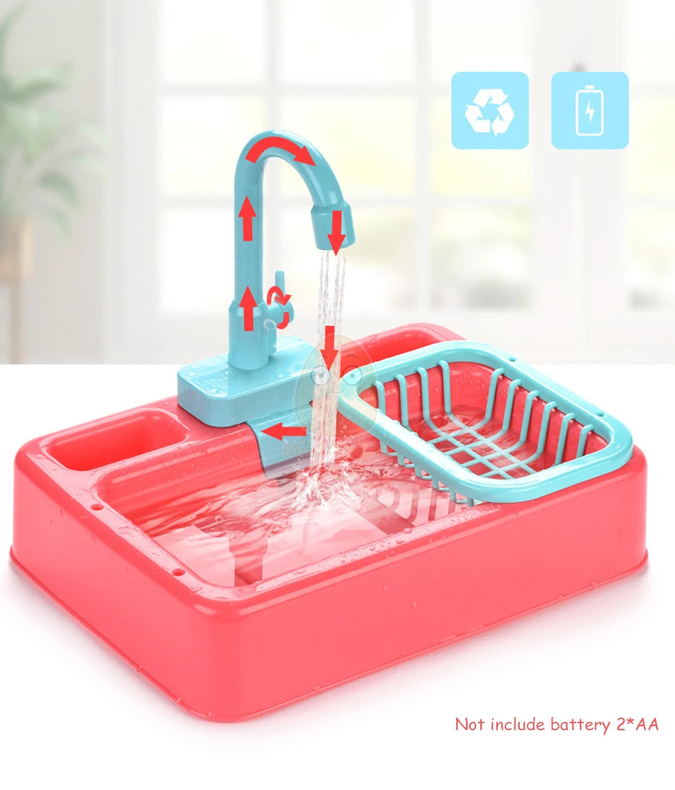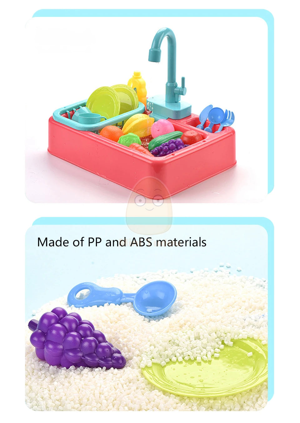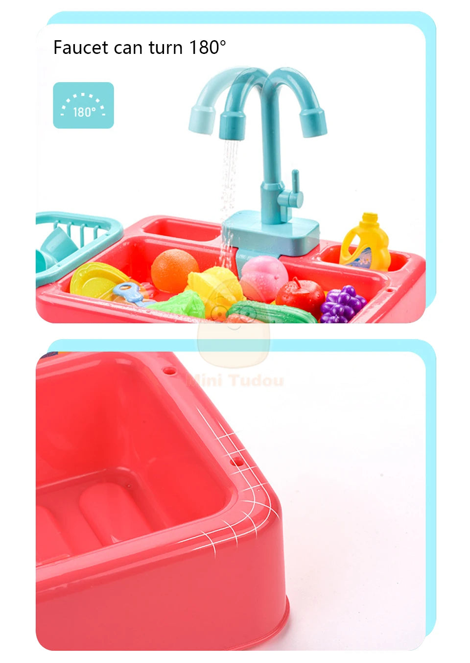 Einzigartige Eigenschaften: Füllen Sie einfach den Spülenboden mit Wasser, drehen Sie den Griff und beobachten Sie, wie das Wasser aus dem Wasserhahn fließt – ein echtes Küchenerlebnis. Dank unseres einzigartigen Wasserzirkulationssystems entfällt ständiges Nachfüllen und beim Spielen wird kein Wasser verschwendet.