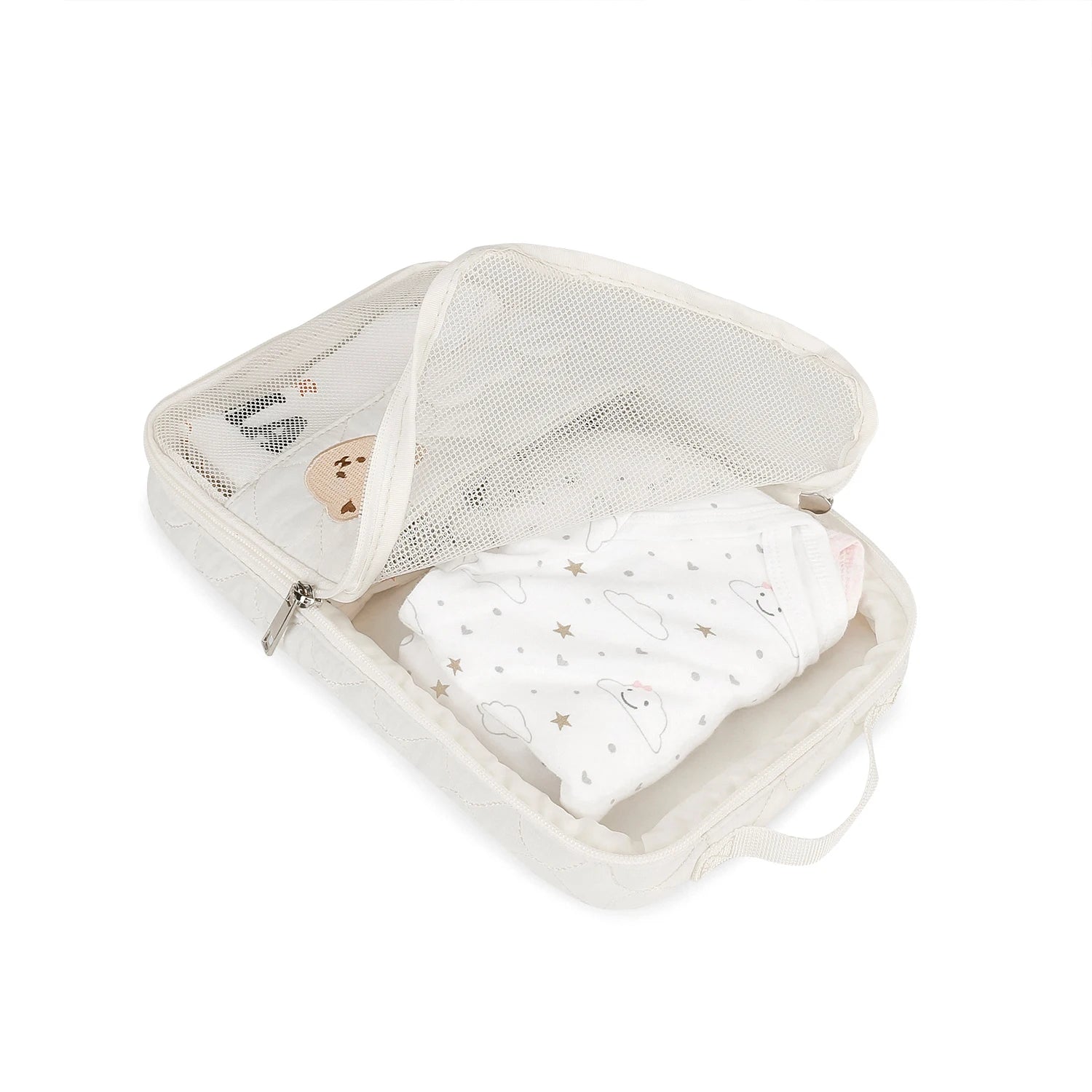Mit dieser kompakten und stylischen Reisewickeltasche haben Sie die wichtigsten Babyutensilien und Mamas Toilettenartikel stets griffbereit. Das praktische Design besticht durch eine Außenseite aus strapazierfähigem Stoff, ein atmungsaktives Mesh-Oberteil und einen sicheren Doppelreißverschluss. Die wasserdichte Konstruktion schützt vor Verschüttungen und ist somit ideal für Reisen und den täglichen Gebrauch.
