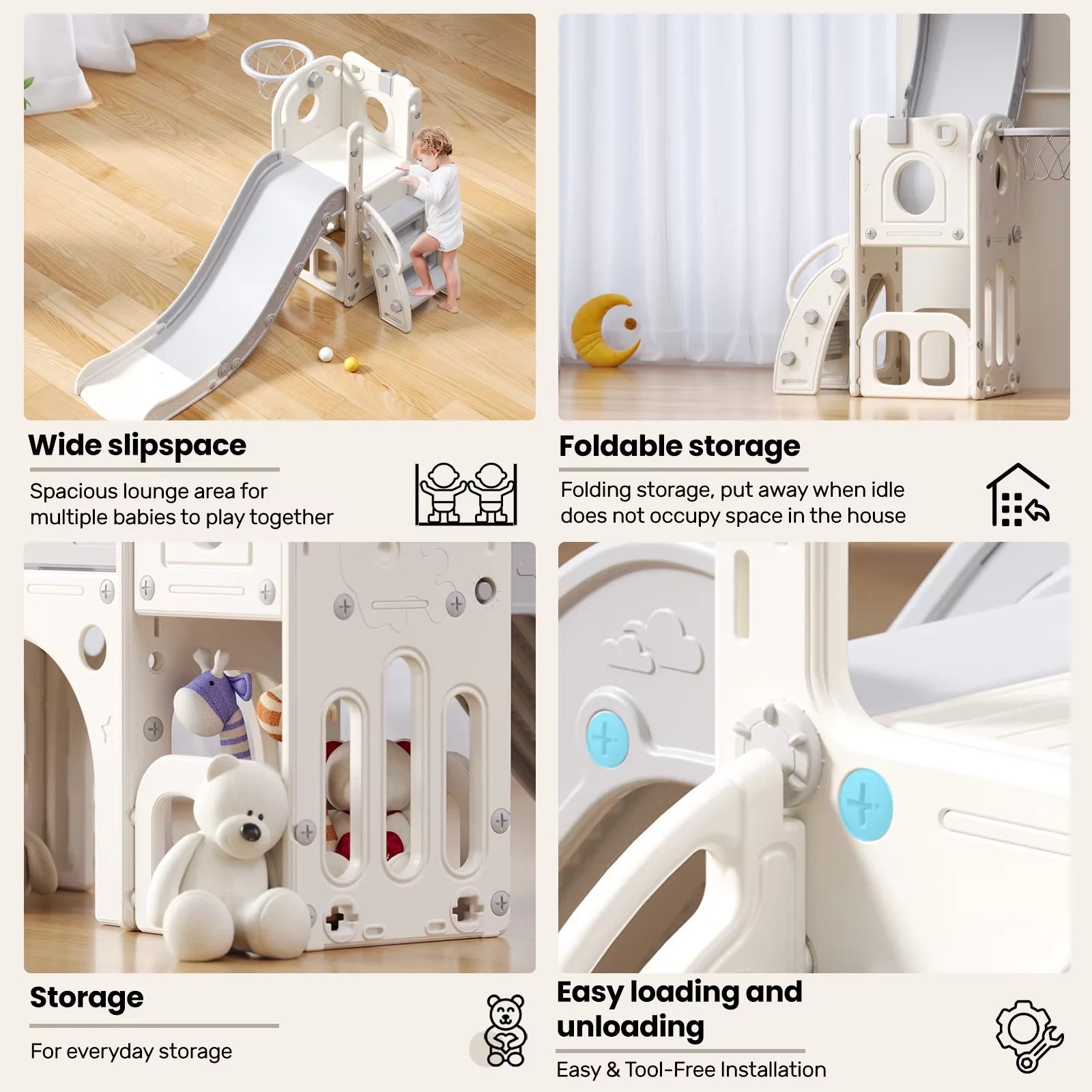 Premium 3-in-1 Kids Slide for 1-6 Years Old - Extra Long Toddler Climber with Basketball Hoop & Anti-Slip Steps