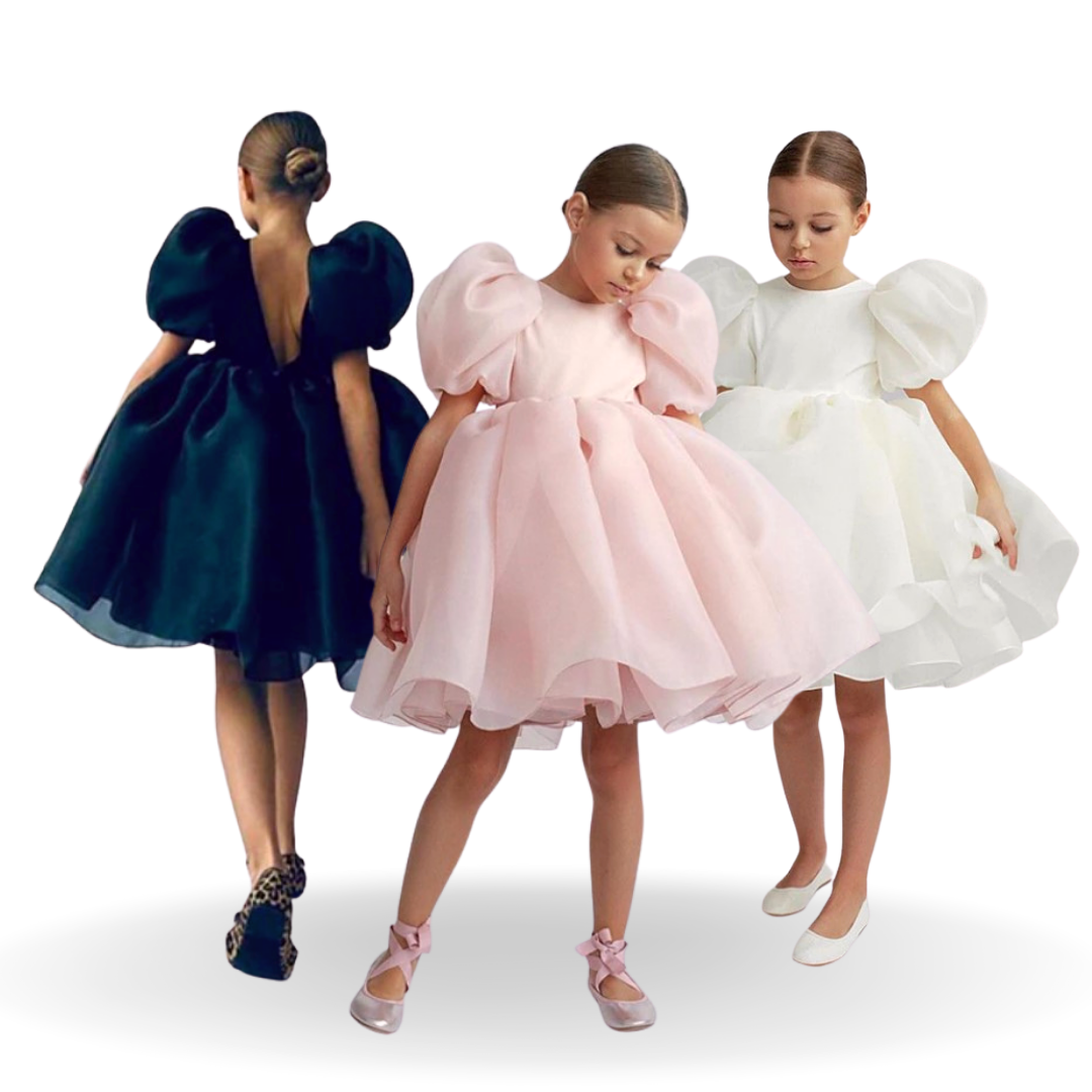 Bringe Regency-Vibes mit diesem verspielten Partykleid mit Puffärmeln und rückenfreiem Design. Tribut Seide, Puffärmel, Ballonrock, tief ausgeschnittener Rücken – was gibt es daran nicht zu mögen? Es ist sehr romantisch, schick und kann selbst bei deinem kleinen Mädchen sehr königlich aussehen.