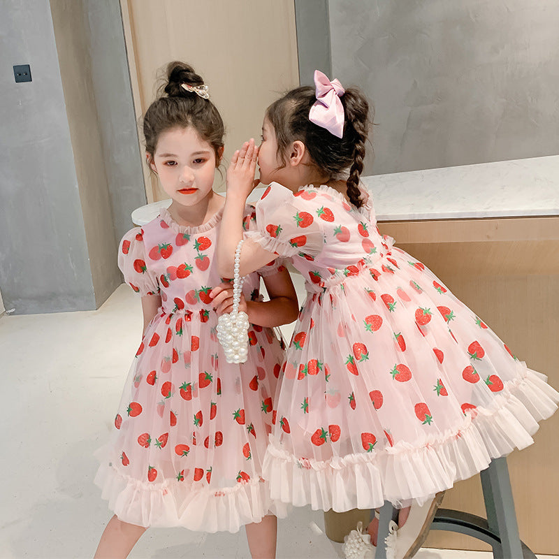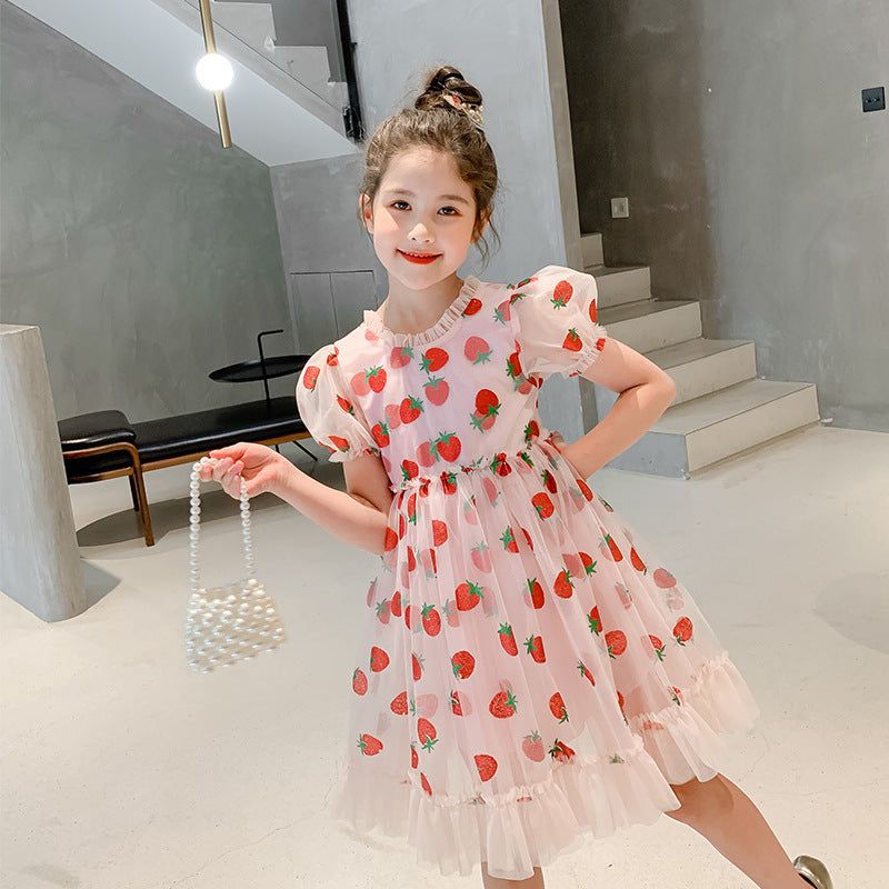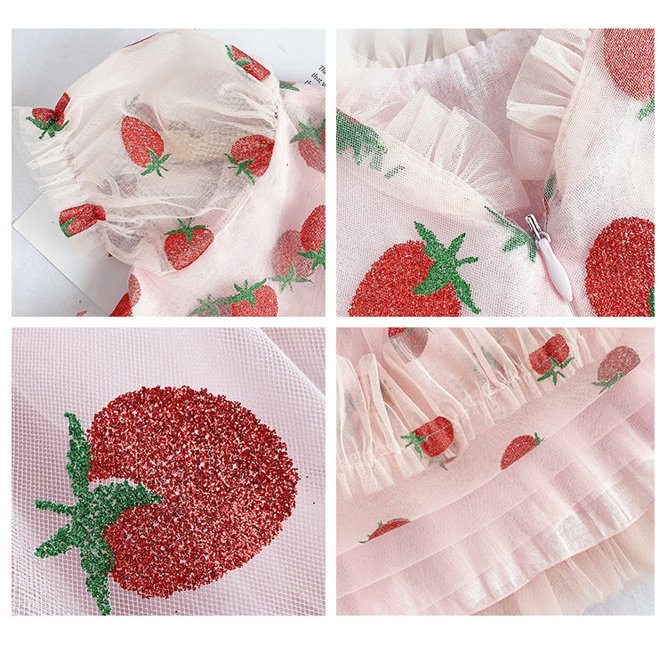 - Kurzes Kleid mit Erdbeermuster für Mädchen.