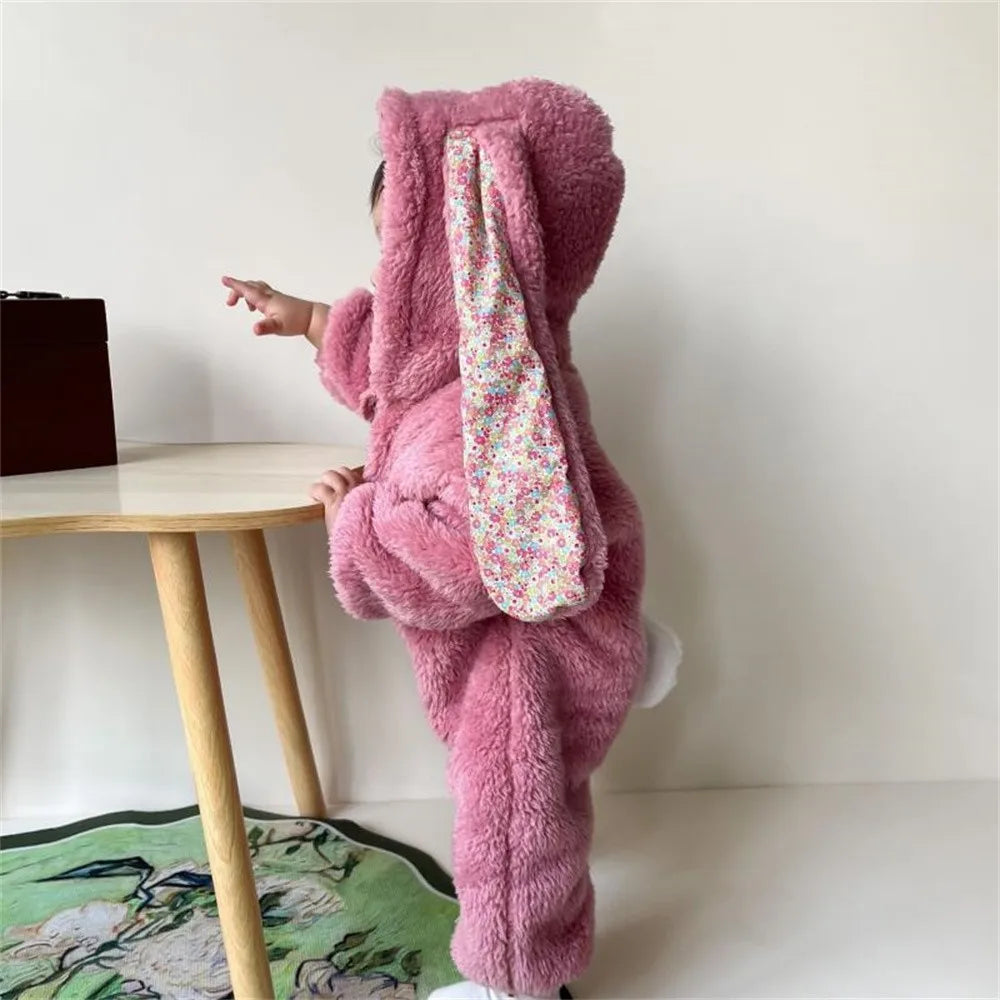 Kaninchen-Strampler mit Kapuze, Pyjama für Babys im Winter
