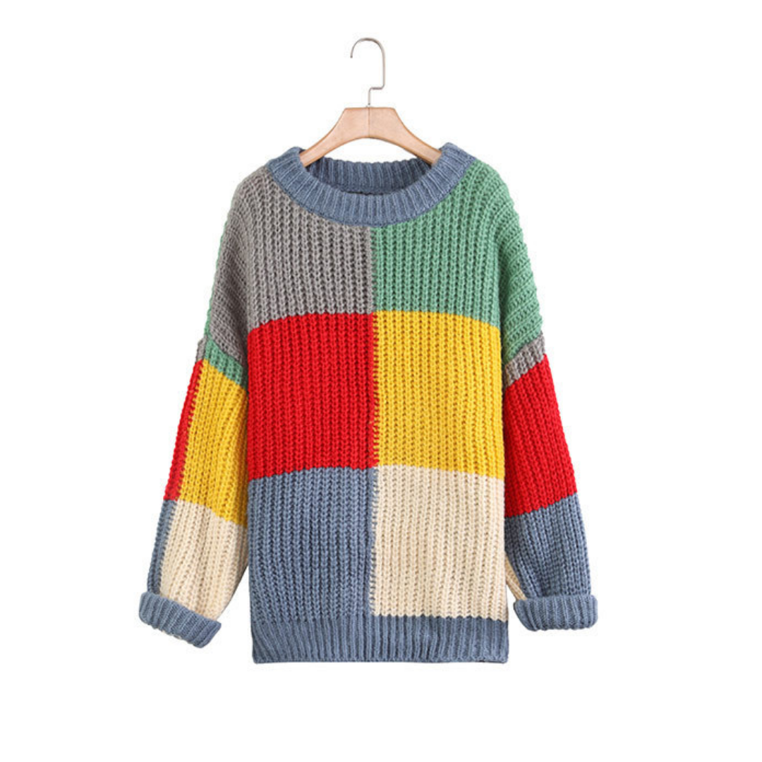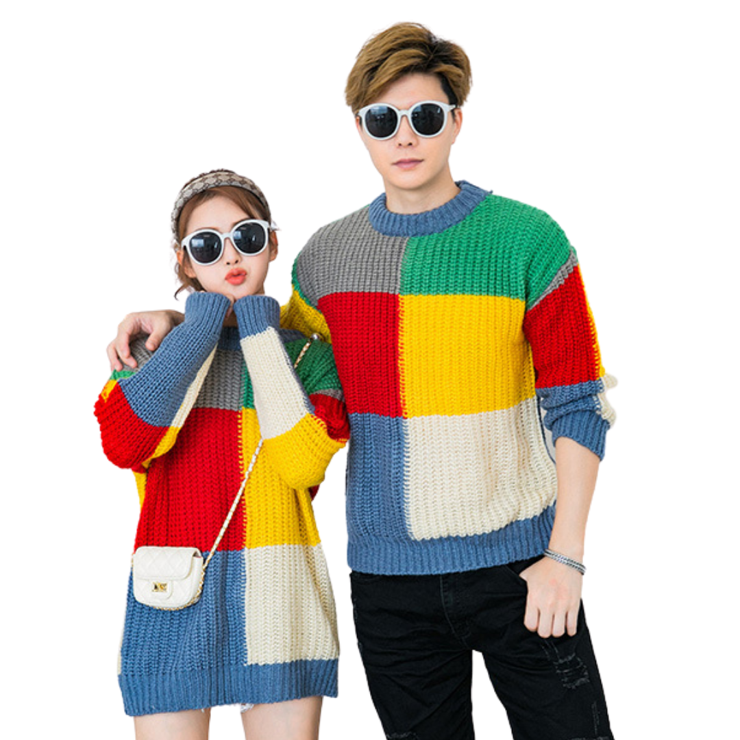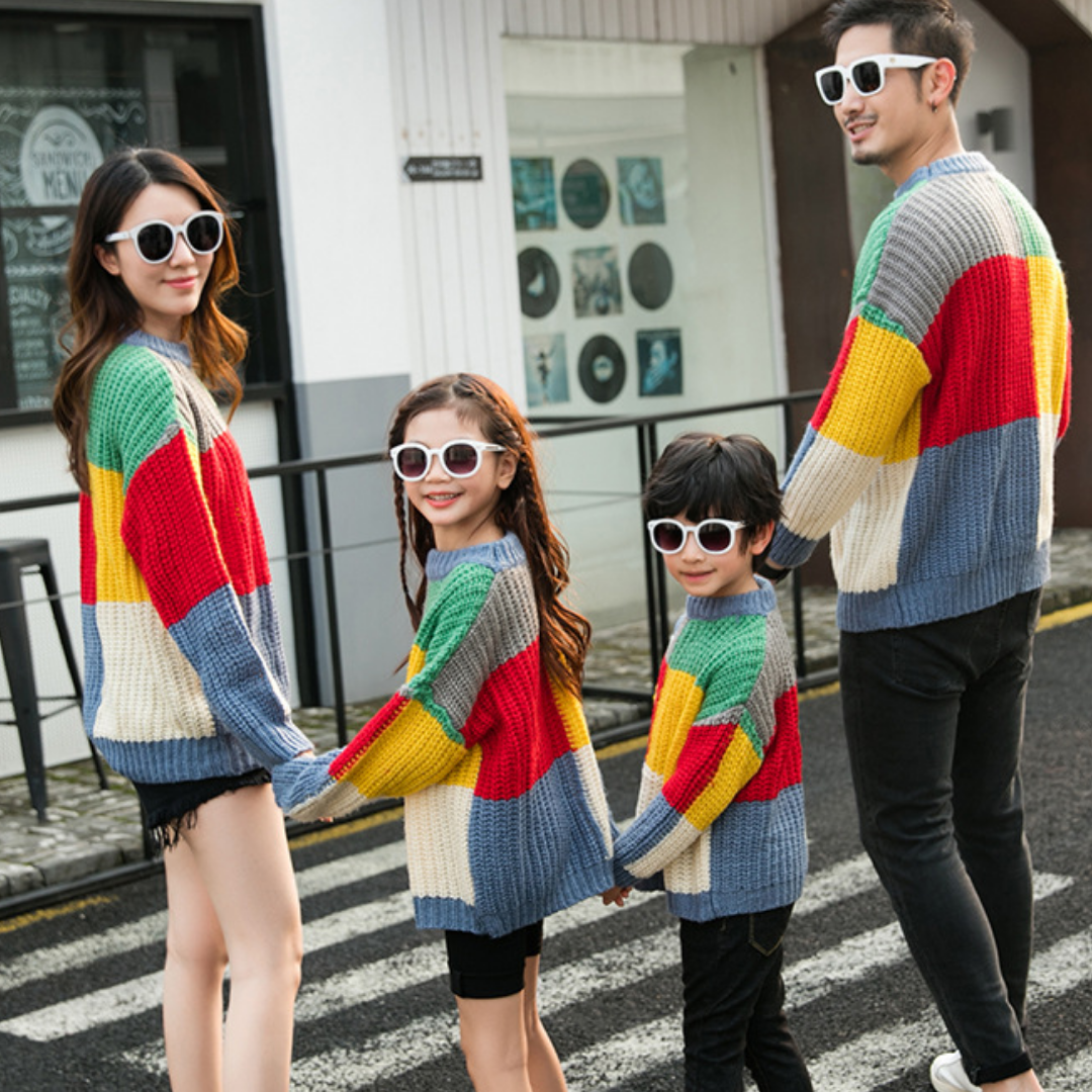 Suéter de punto a cuadros arcoíris para toda la familia – ¡Combínense y destaquen juntos! 🌈🧡