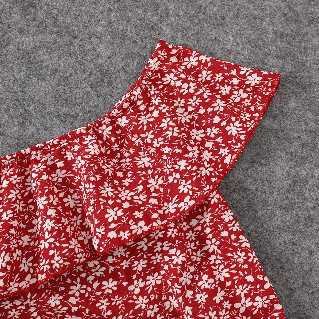 Red Floral Off-Shoulder Shirred Dresses for Mom and Daughter - Summer