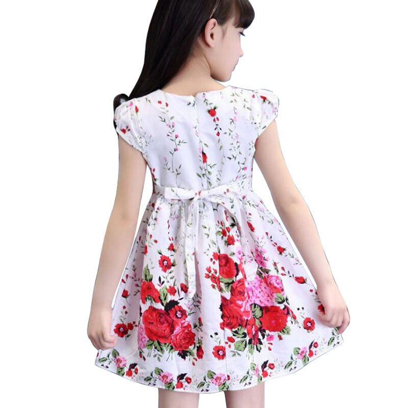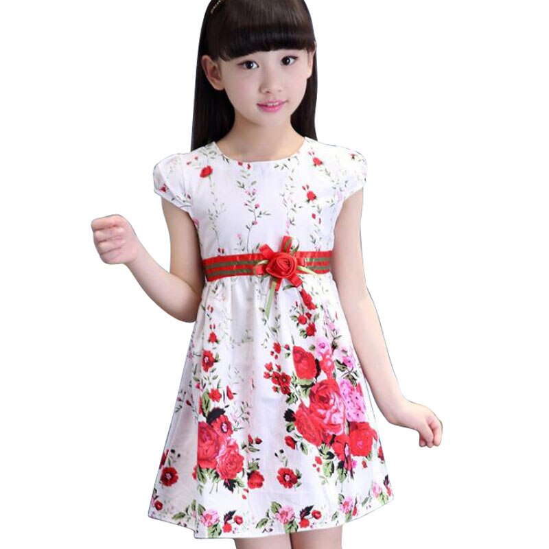 Vestido Casual de Verano para Niña con Estampado de Rosas Rojas