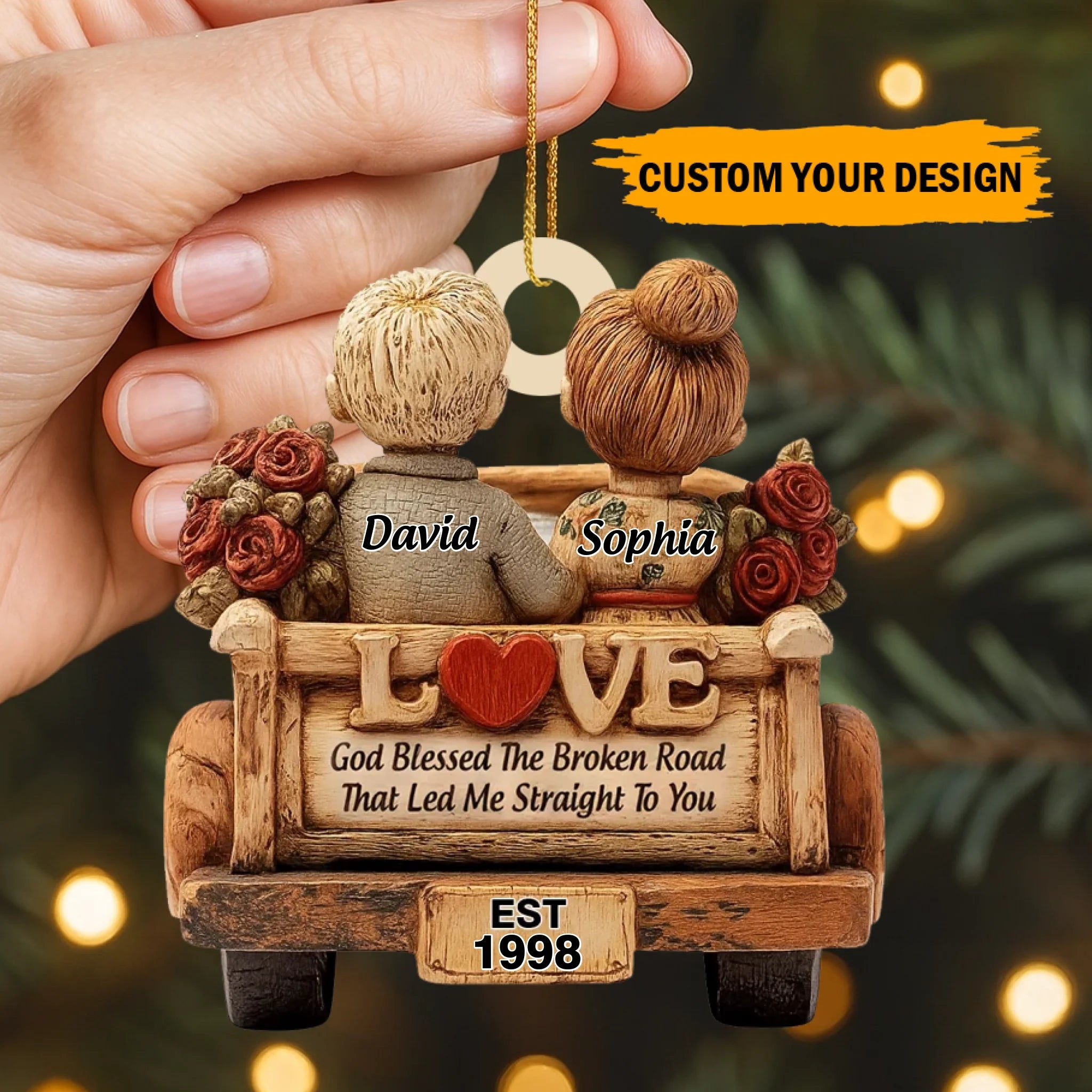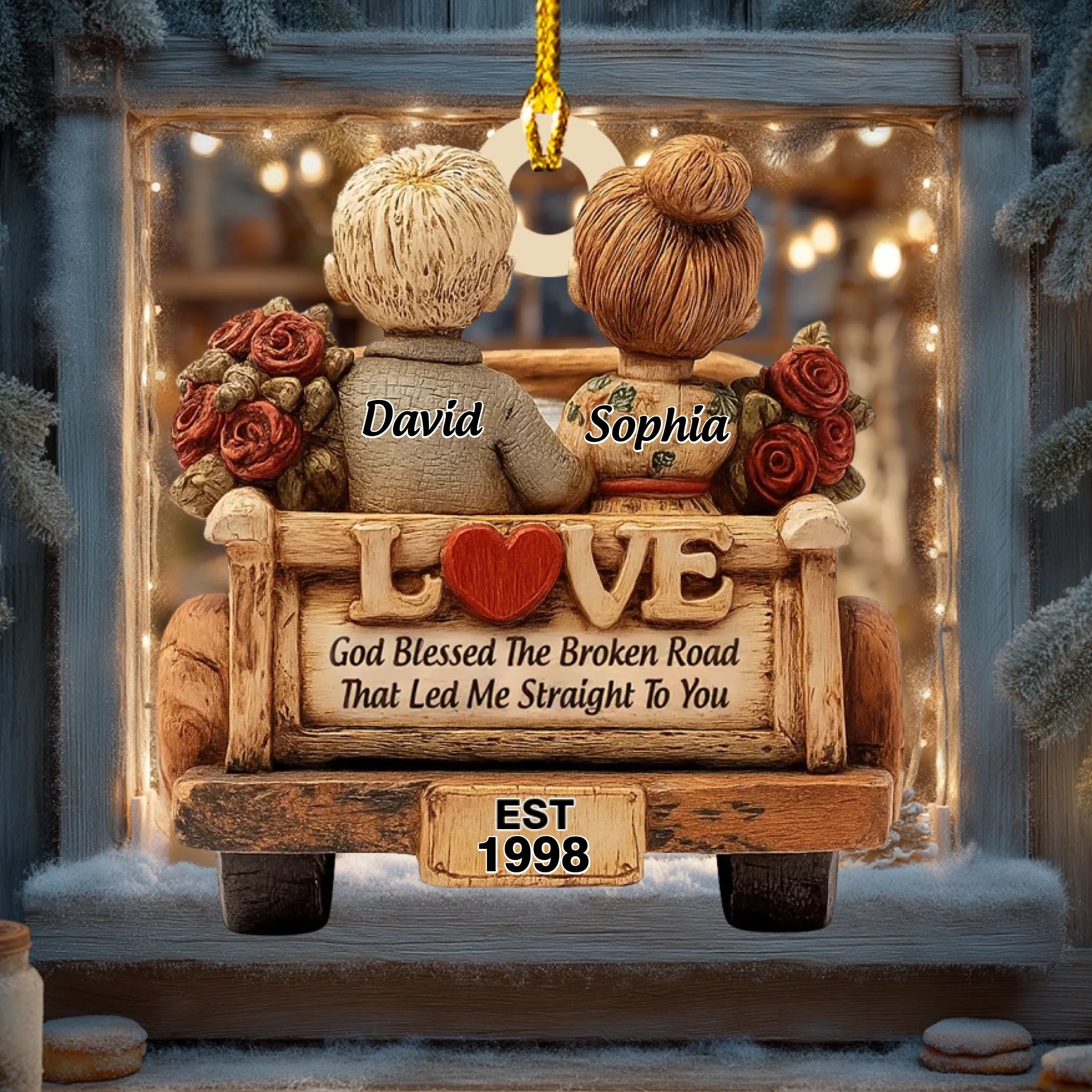 Perfect for couples, newlyweds, anniversaries, or anyone who believes in love that grows stronger through time. Display it proudly in your home, car, or holiday tree — and let it warm your heart every time you see it.