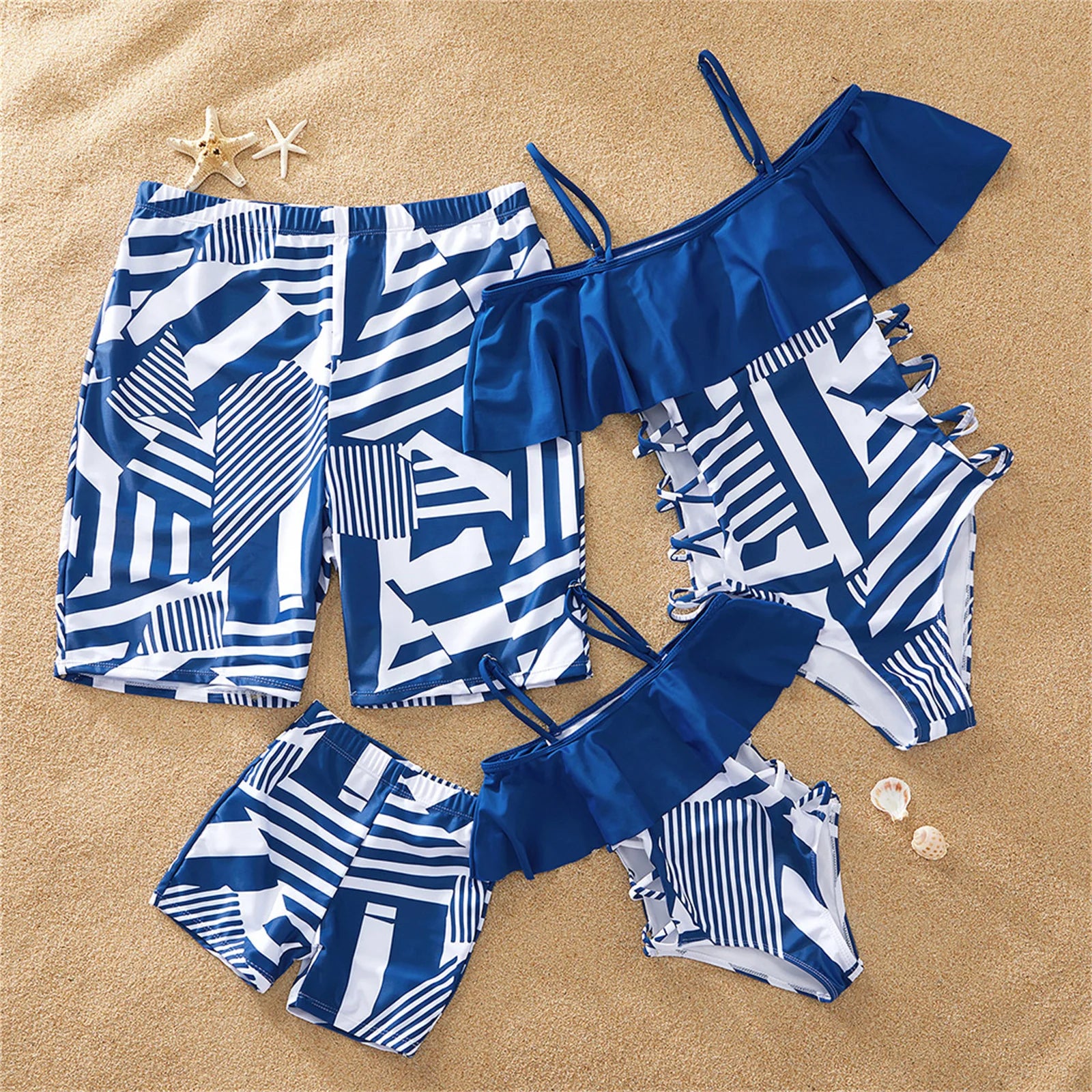 Einteiliger Familienbadeanzug mit Rüschen