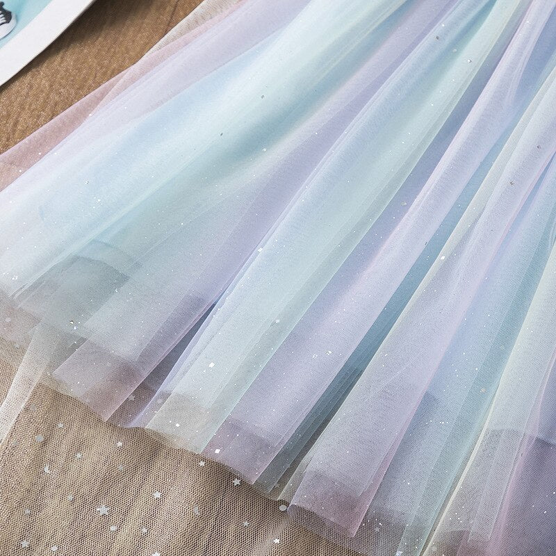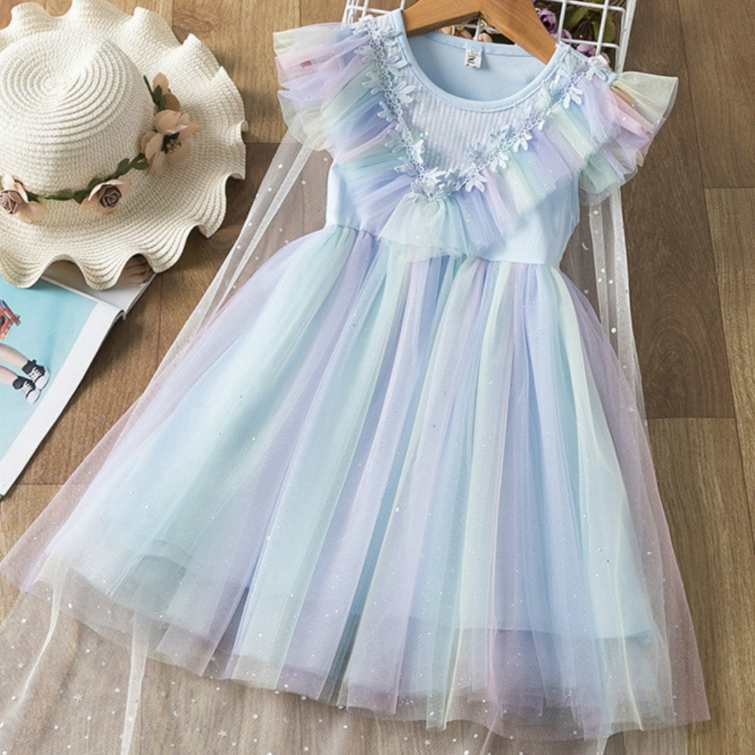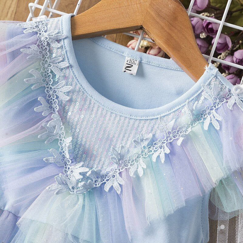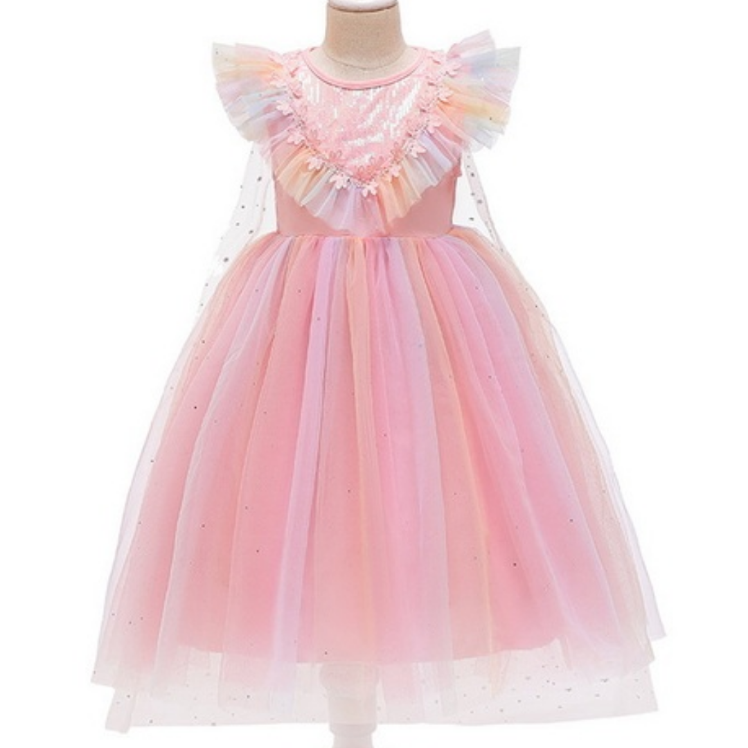 Dieses Paillettenstern- und Spitzen-Prinzessinnen-Sommerkleid mit Umhang ist perfekt als lässiges Prinzessinnen-Outfit für den Geburtstag oder Kinderparty-Events Ihrer kleinen Mädchen im Sommer geeignet. Es ist leicht und den ganzen Tag über angenehm zu tragen.