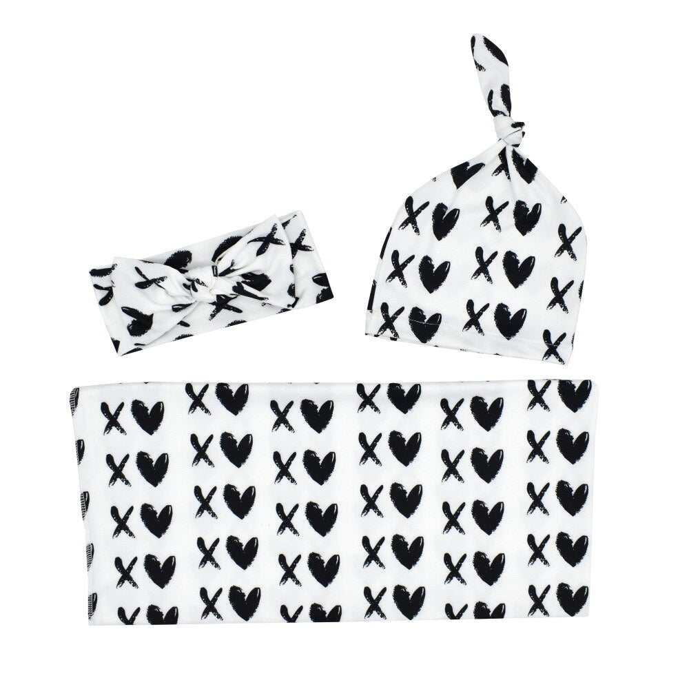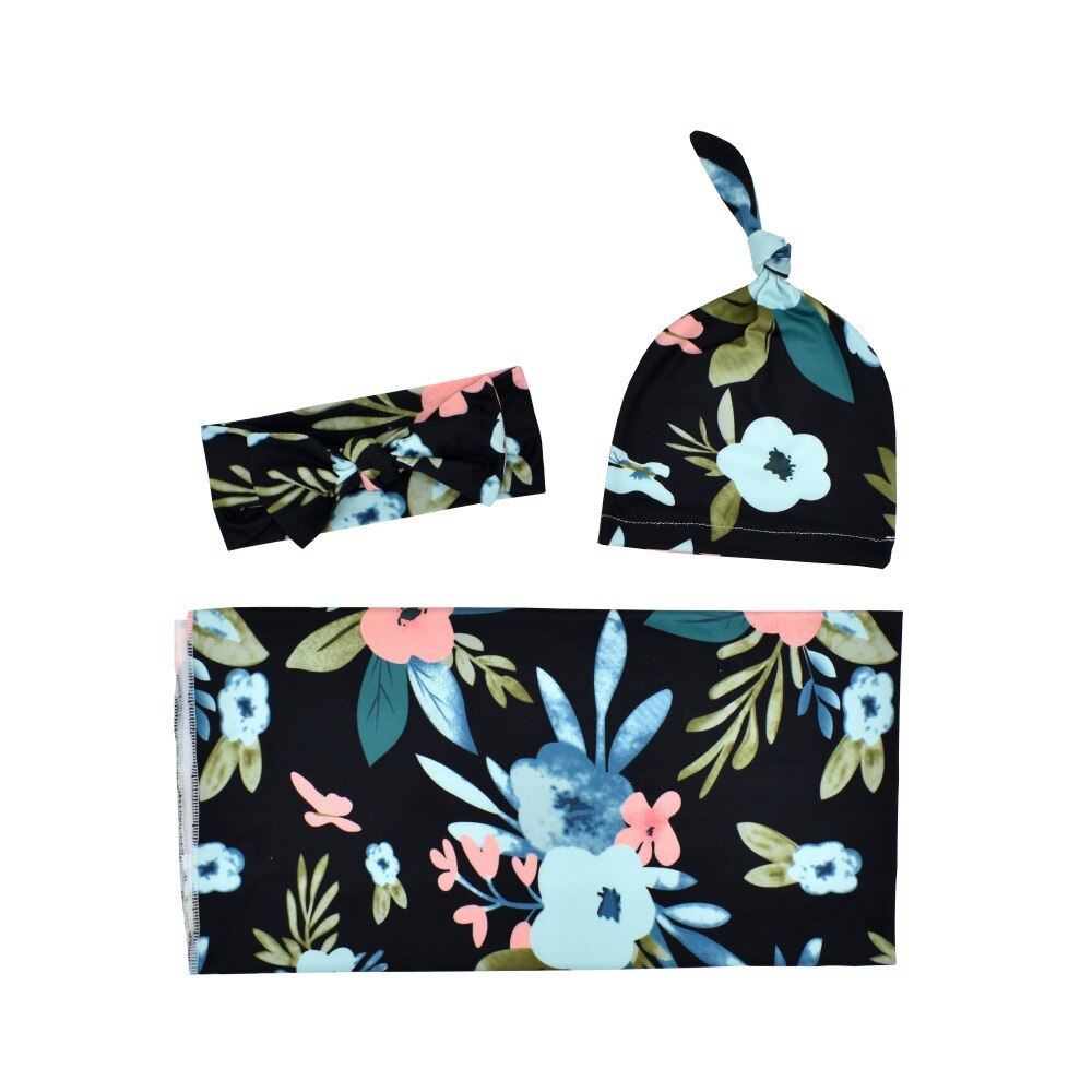 Set de manta para bebé: arrullo, pañuelo para la cabeza, gorrito con estampado floral