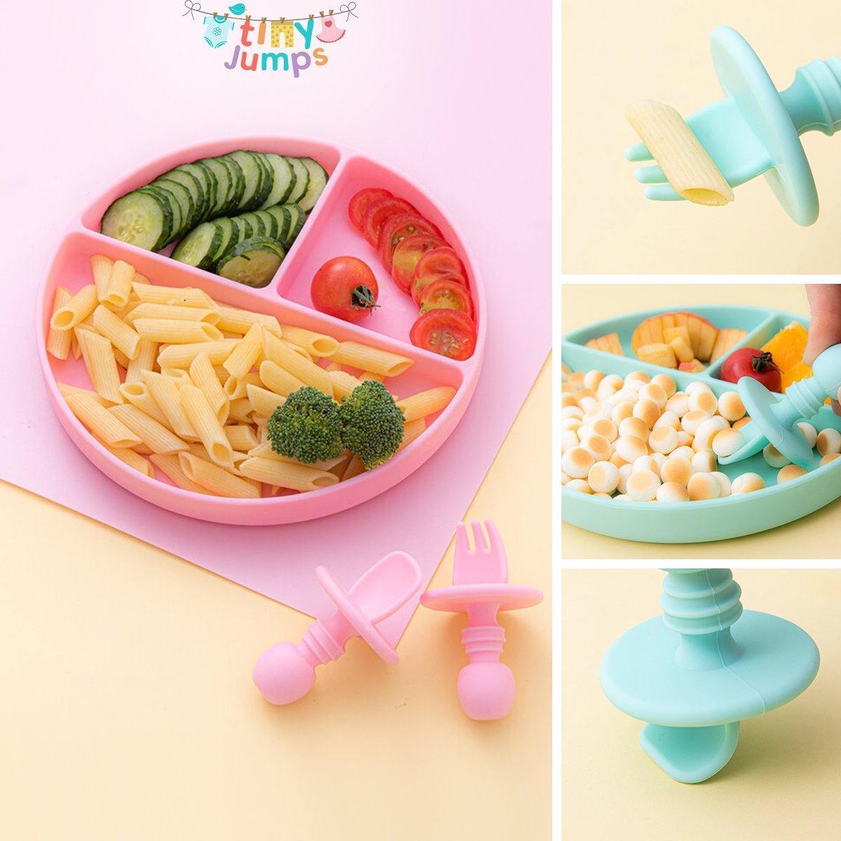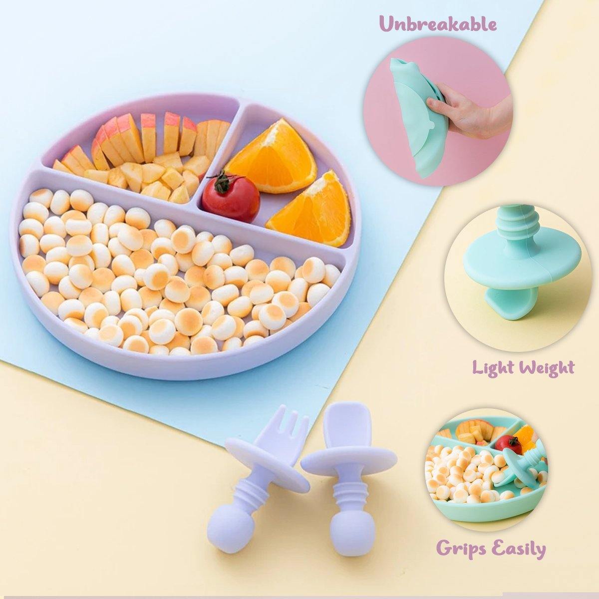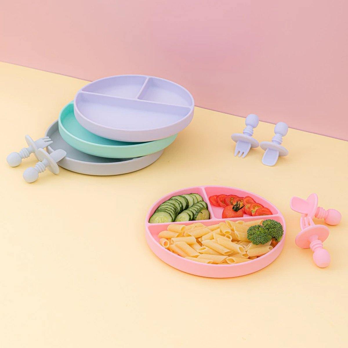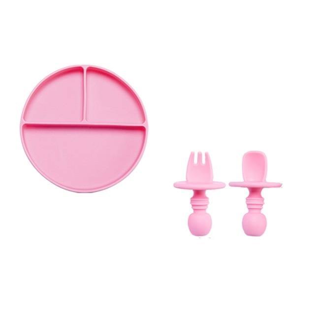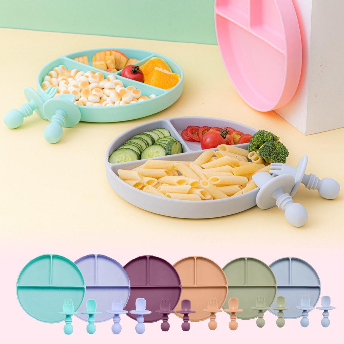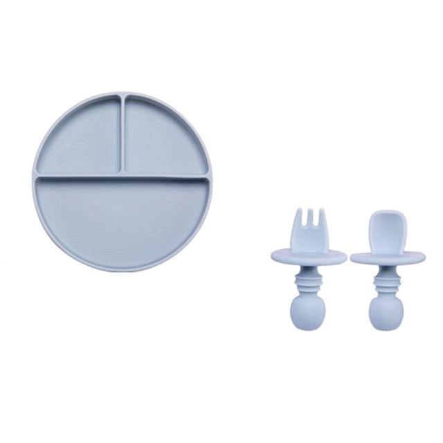 1X Silikon-Tellerset für Babys (ein Silikonteller, Löffel und Gabel)