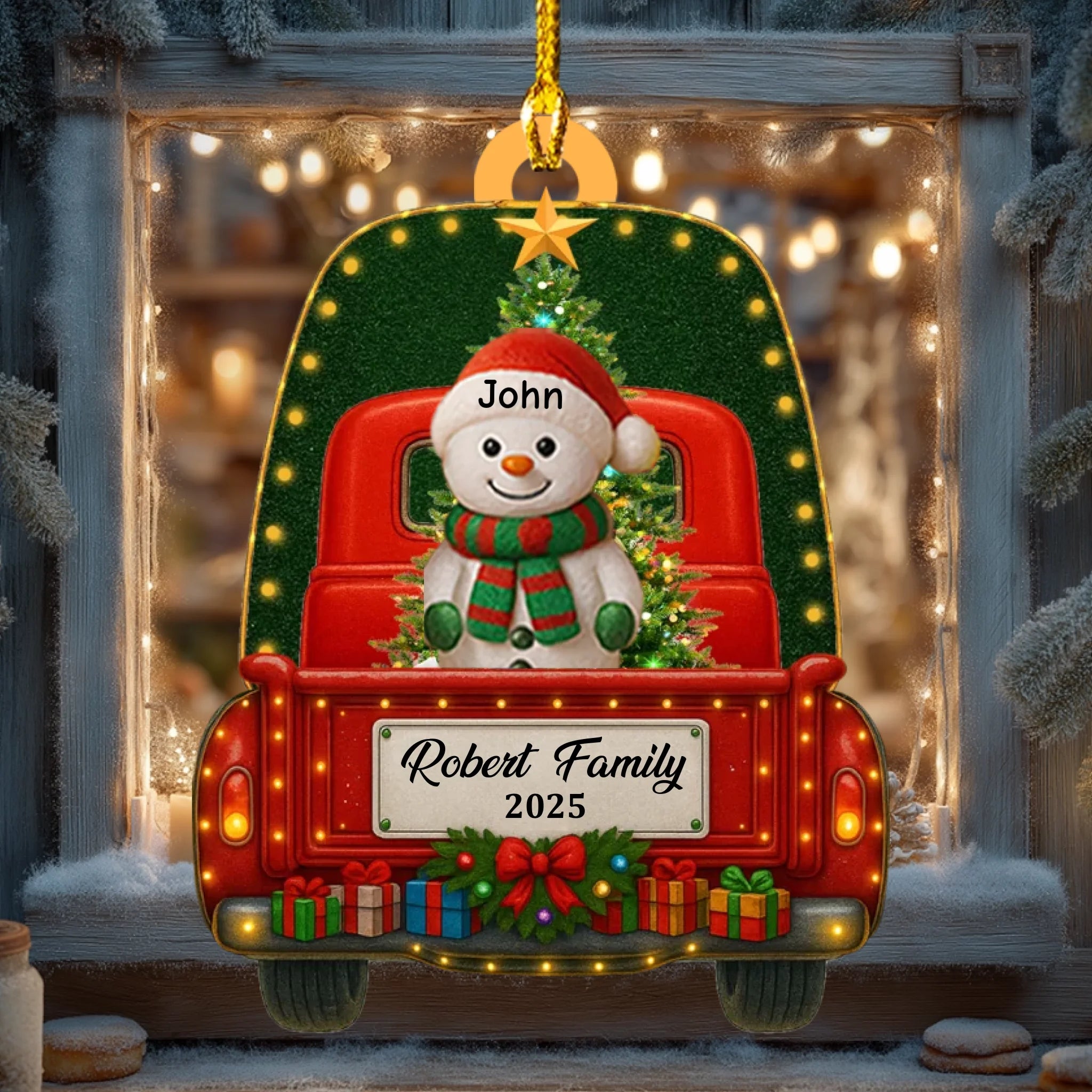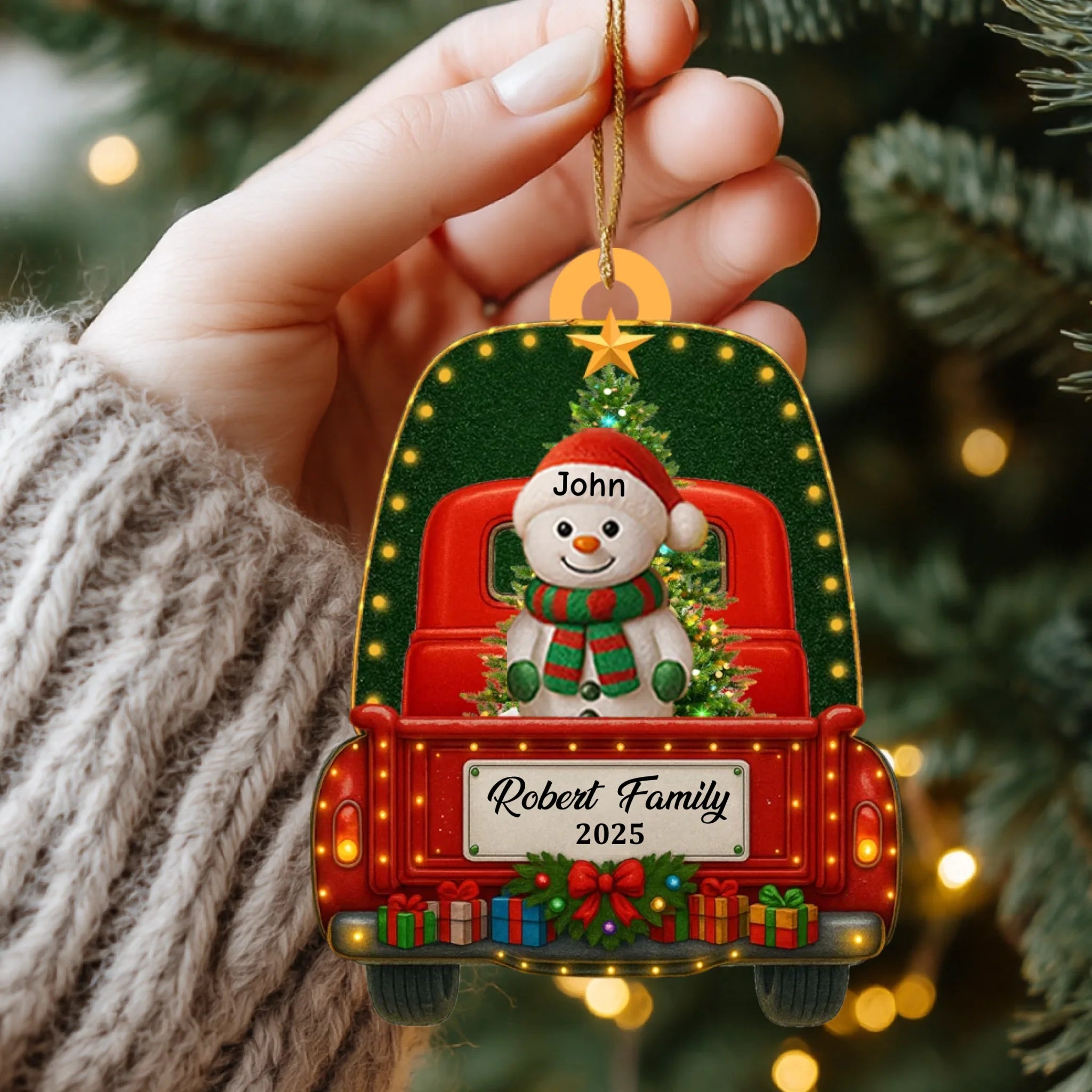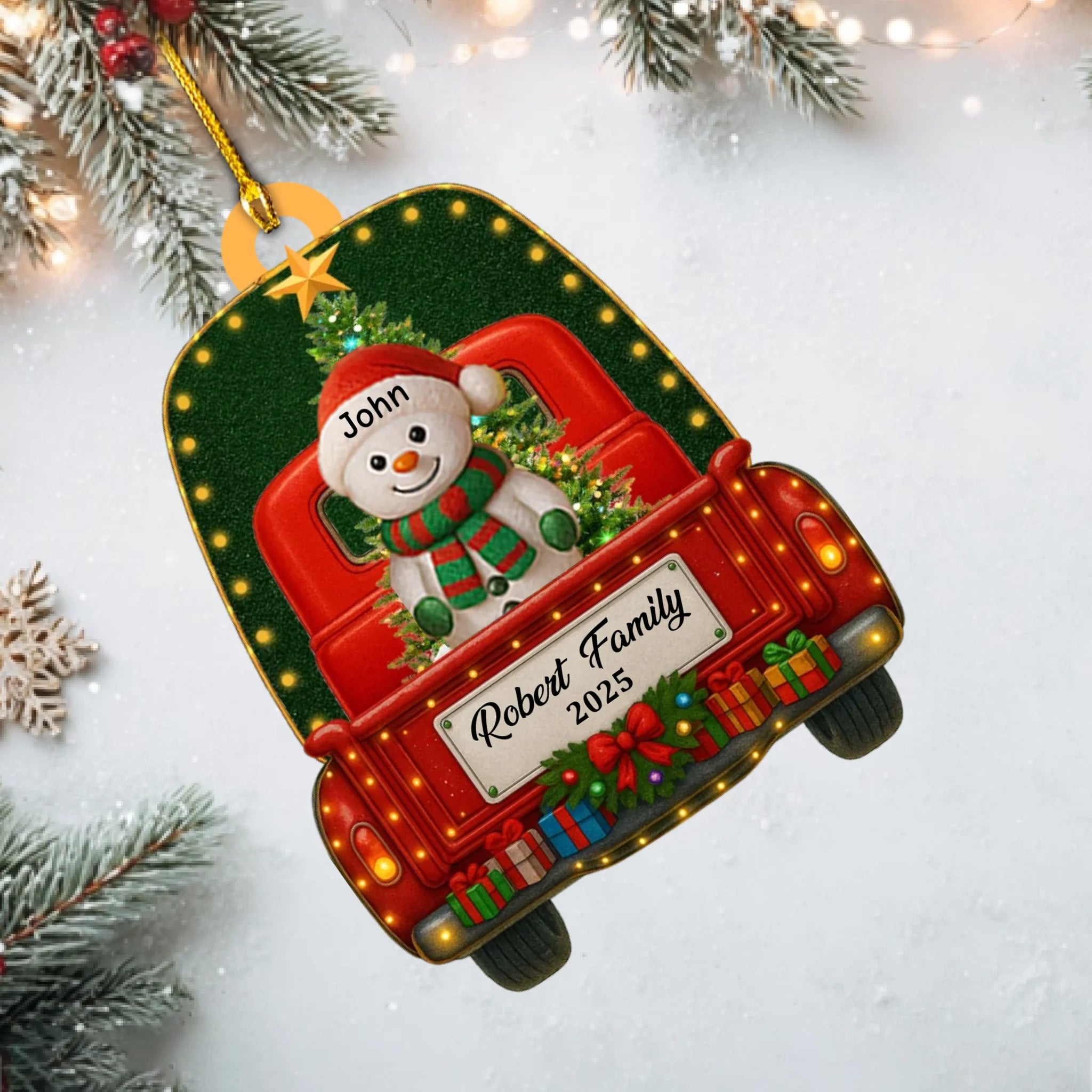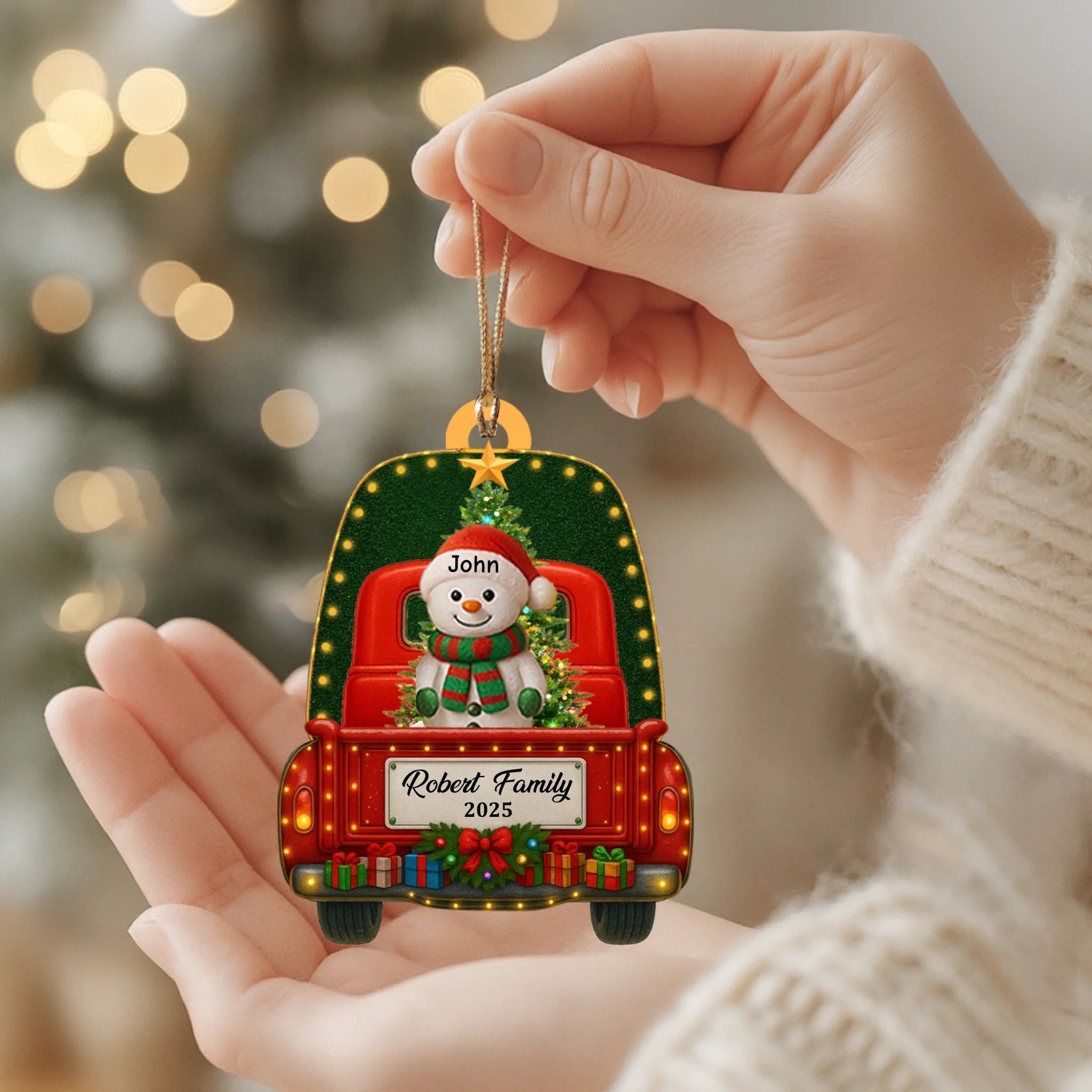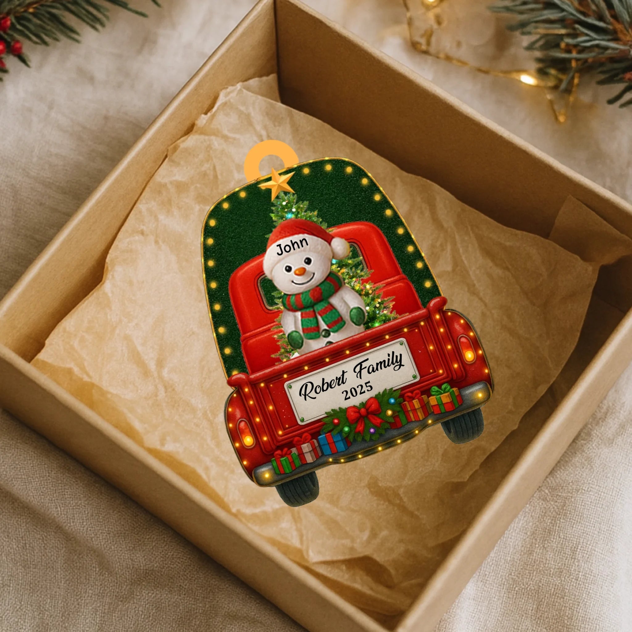 Bringen Sie Wärme und Freude in Ihre Feiertage mit diesem bezaubernden personalisierten Schneemann-Familie-im-Weihnachtsauto-Ornament. Mit einer niedlichen Schneemannfamilie, die in einem festlichen Weihnachtsauto fährt, fängt dieses Ornament den Geist von Liebe, Zusammengehörigkeit und festlicher Stimmung ein. Mehr als nur eine Dekoration ist es ein bedeutungsvolles Andenken, das vollständig mit Ihrem Familiennamen, dem Jahr sowie den Namen und Nummern jedes Familienmitglieds personalisiert werden kann — und so eine wirklich einzigartige Darstellung Ihrer Liebsten wird.
