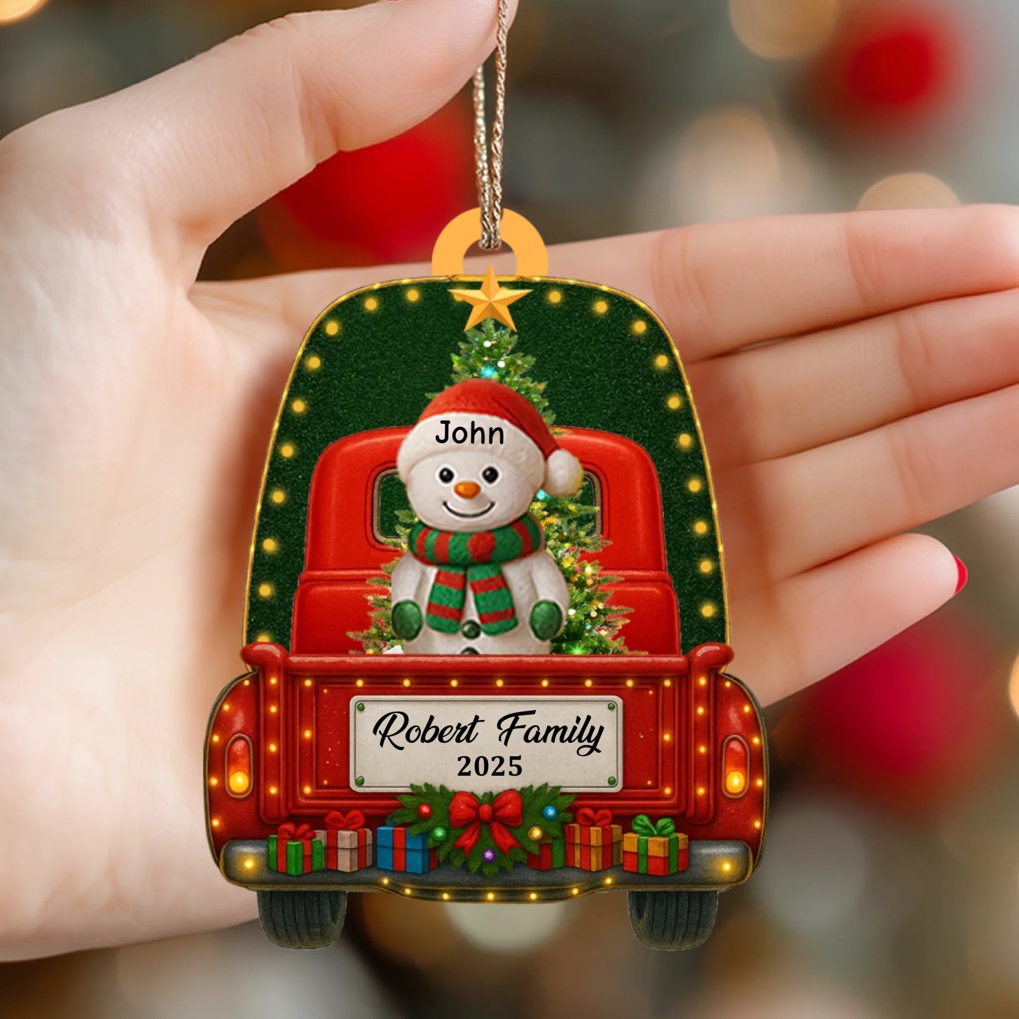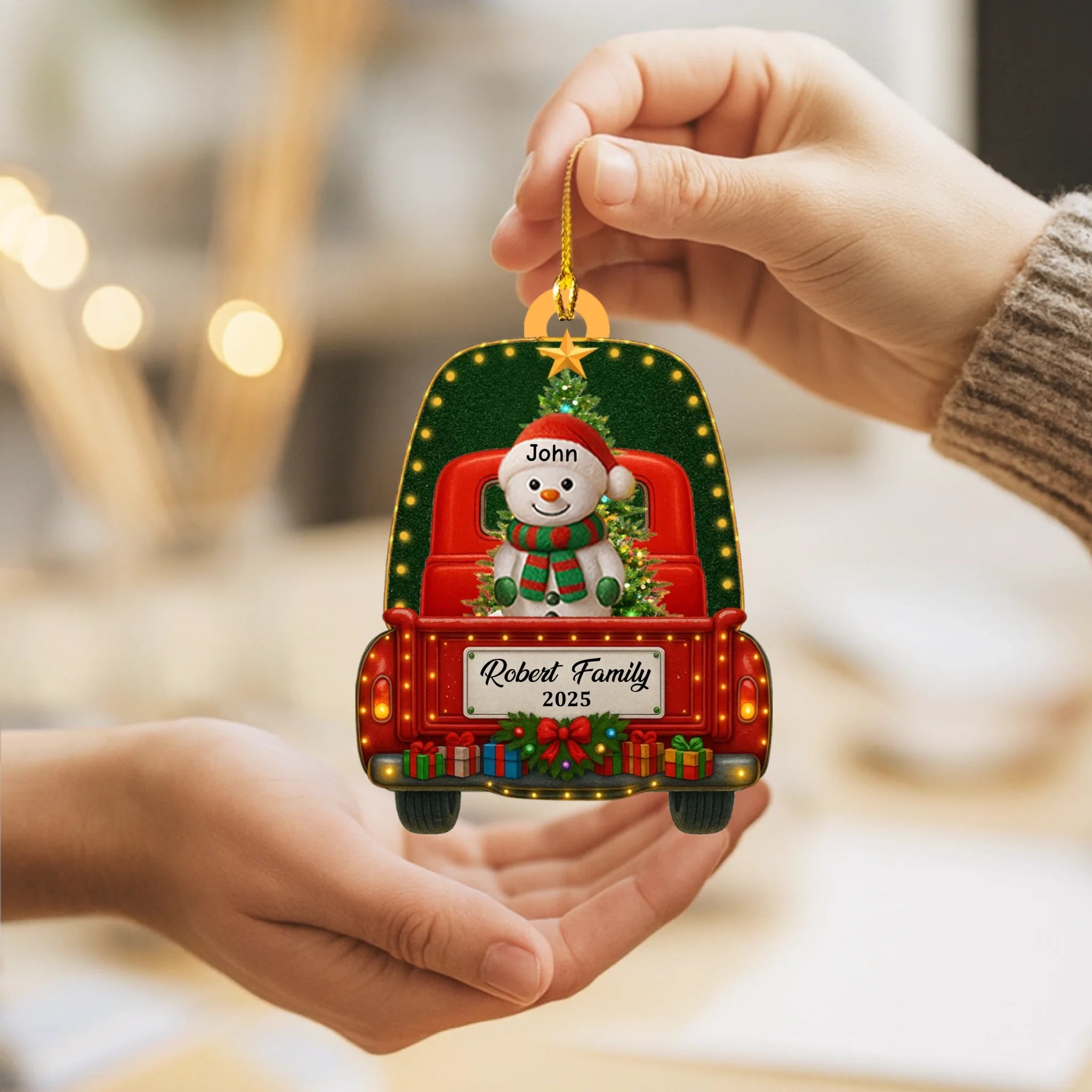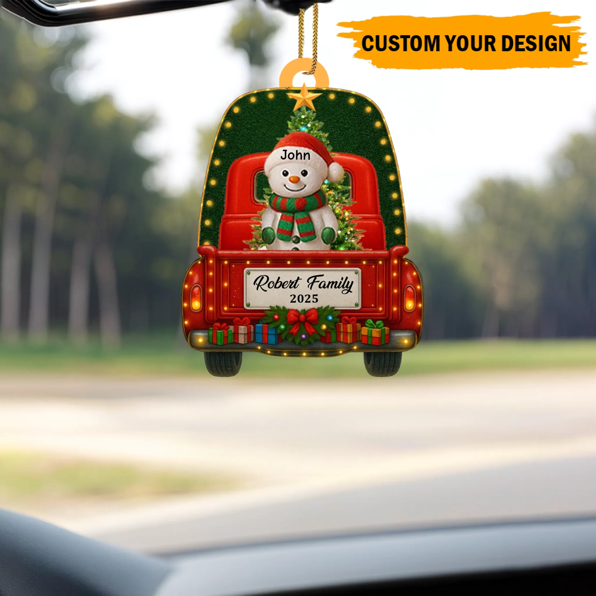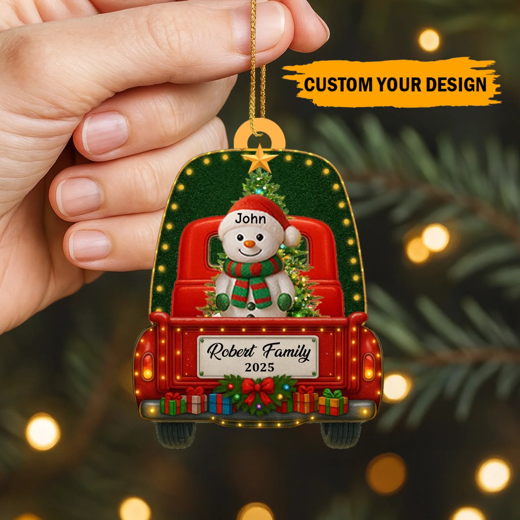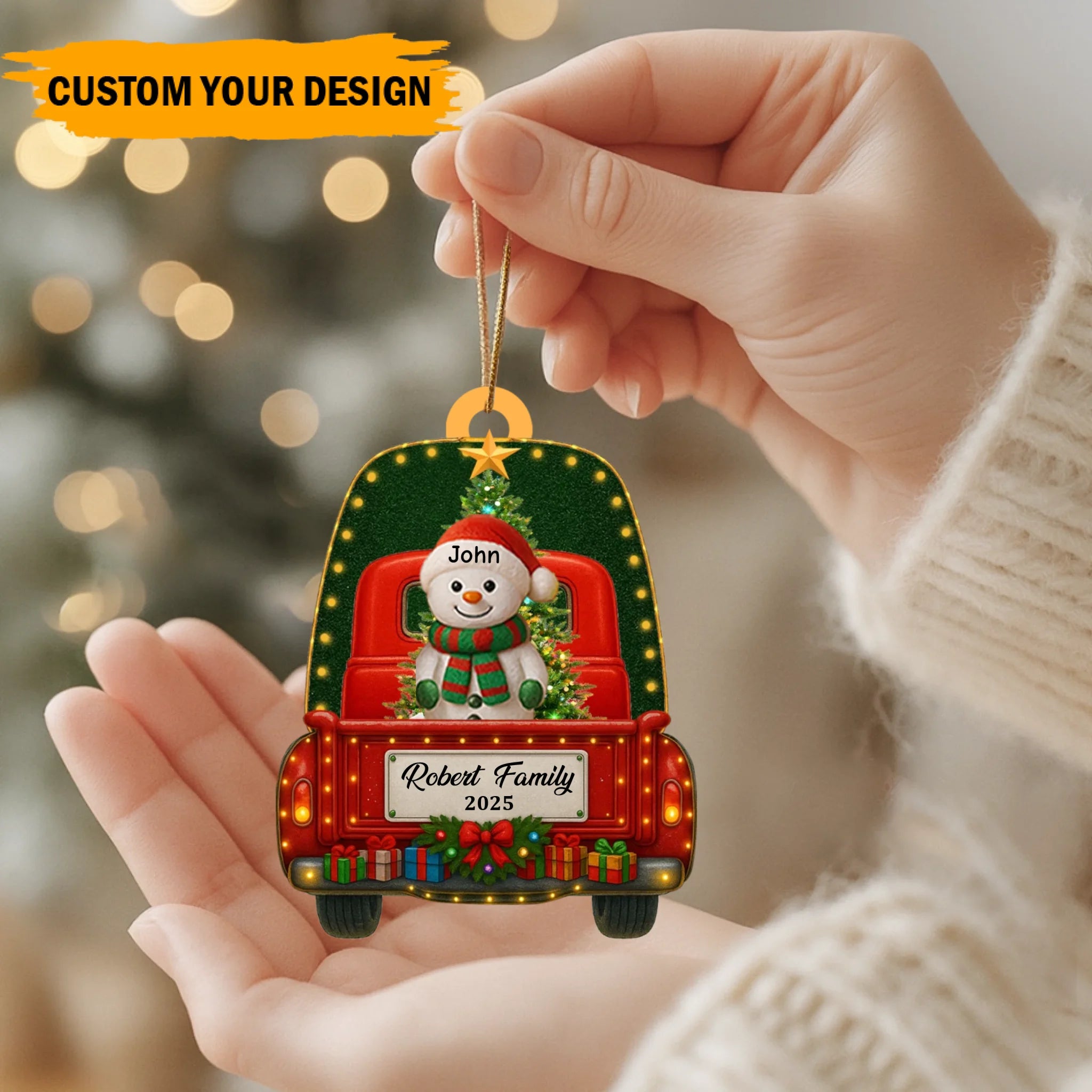 Bringen Sie Wärme und Freude in Ihre Feiertage mit diesem bezaubernden personalisierten Schneemann-Familie-im-Weihnachtsauto-Ornament. Mit einer niedlichen Schneemannfamilie, die in einem festlichen Weihnachtsauto fährt, fängt dieses Ornament den Geist von Liebe, Zusammengehörigkeit und festlicher Stimmung ein. Mehr als nur eine Dekoration ist es ein bedeutungsvolles Andenken, das vollständig mit Ihrem Familiennamen, dem Jahr sowie den Namen und Nummern jedes Familienmitglieds personalisiert werden kann — und so eine wirklich einzigartige Darstellung Ihrer Liebsten wird.