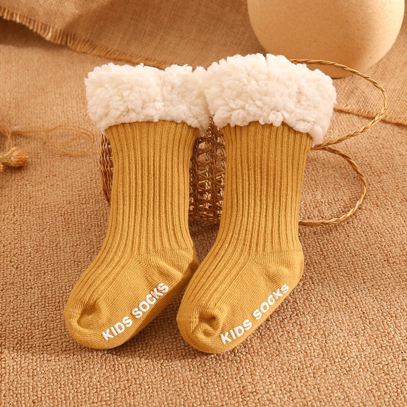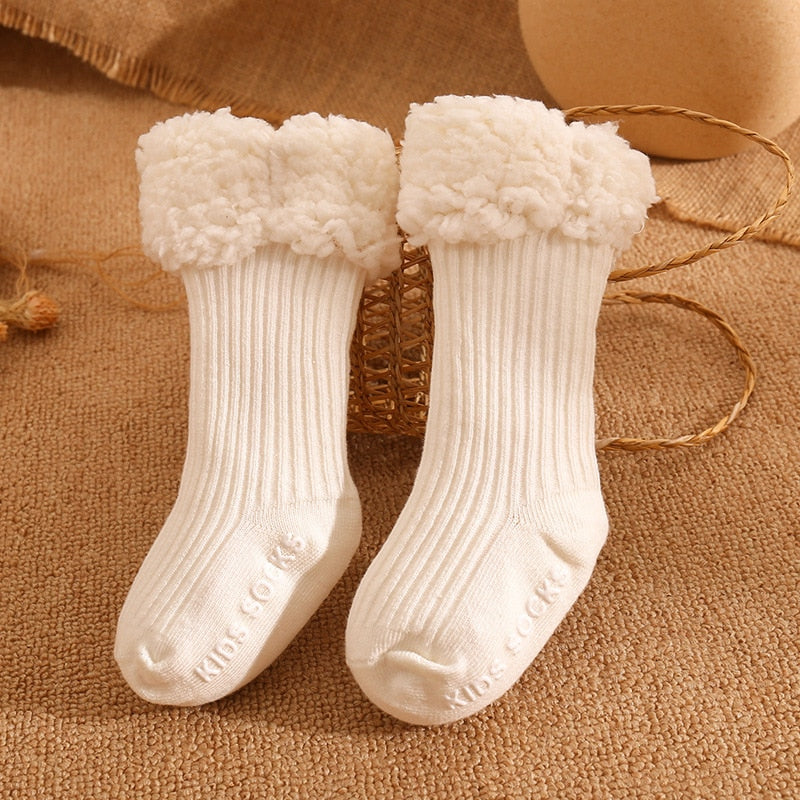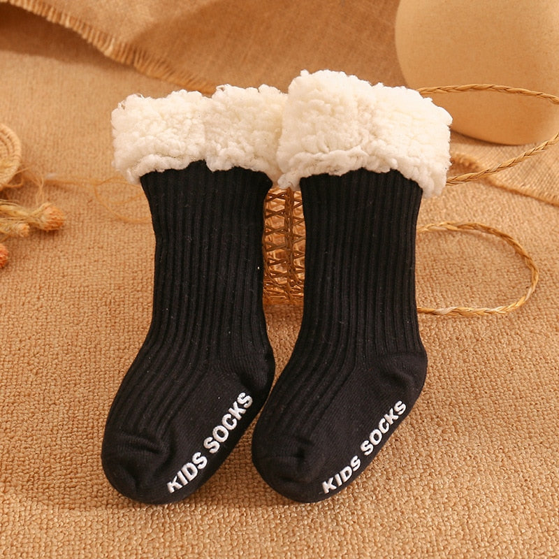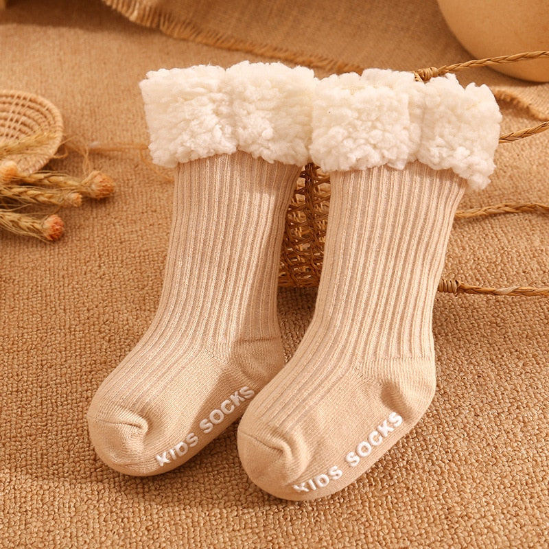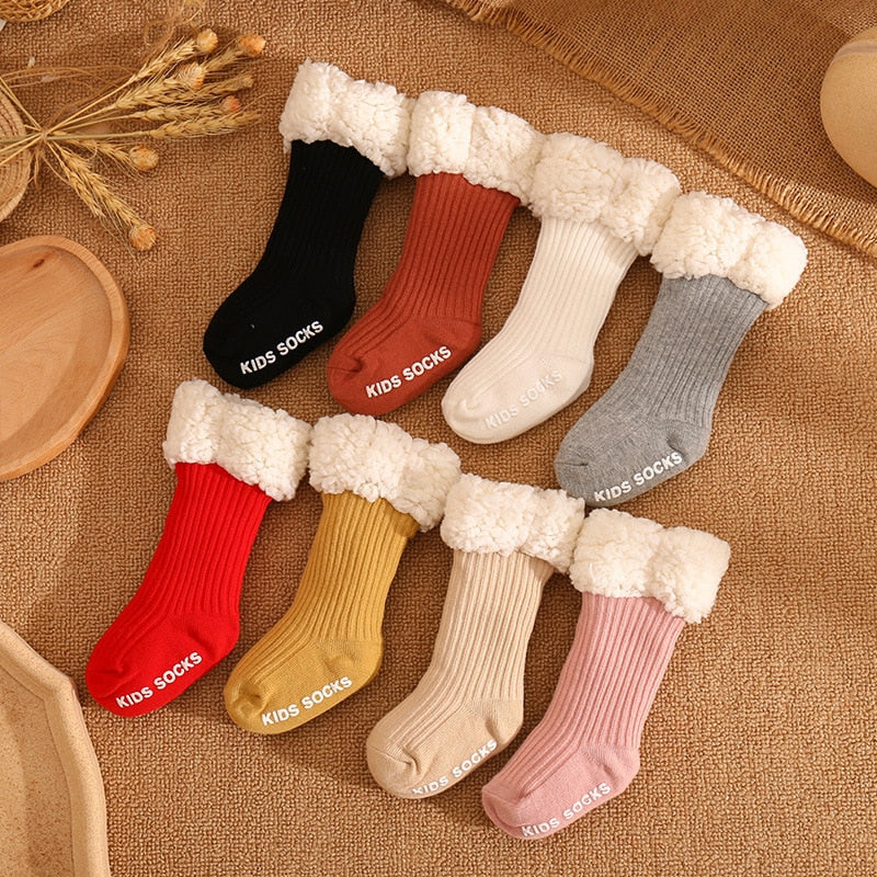 Mit seinem schlichten Design und den trendigen Farben ist dieses Modell einfach wunderschön, liebe Mütter! Im Winter ist es kalt, aber mit so süßen Socken möchte ich einfach ewig frieren. Dicke Baumwollsocken für Babys zum Wechseln der Schuhe, weich und rutschfest, extrem sicher!