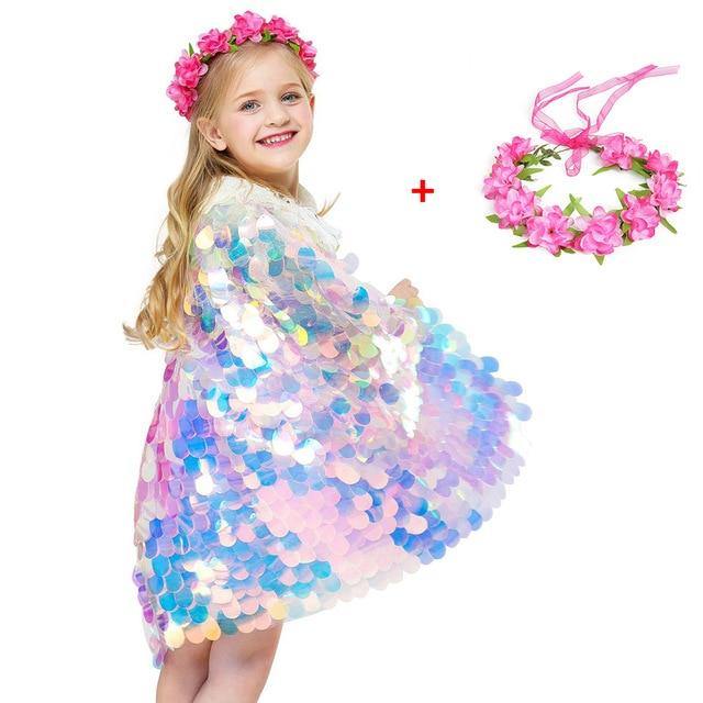 - Es ist ein fröhliches, funkelndes Cape, das mit schimmernden Pailletten verziert ist