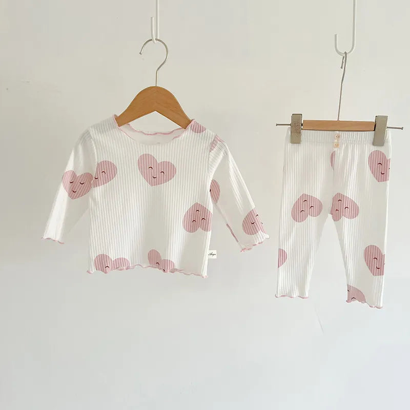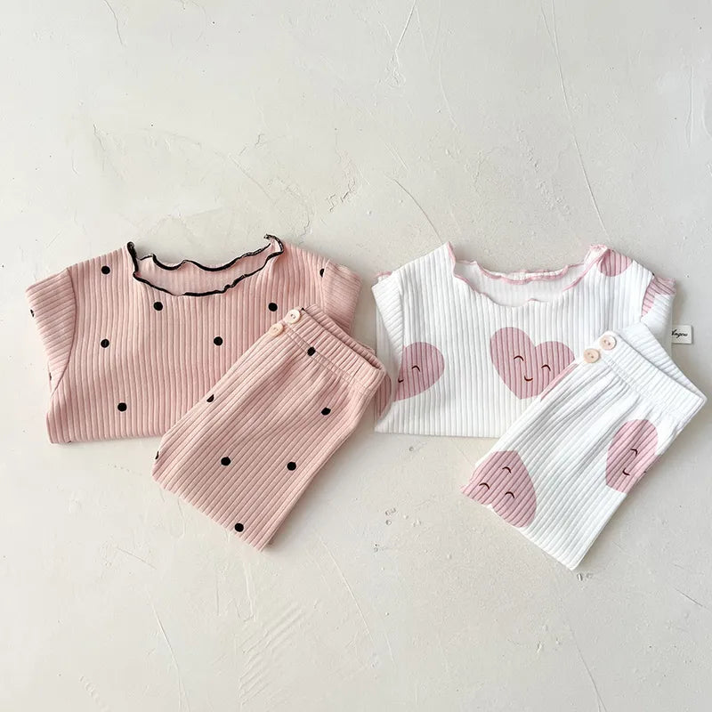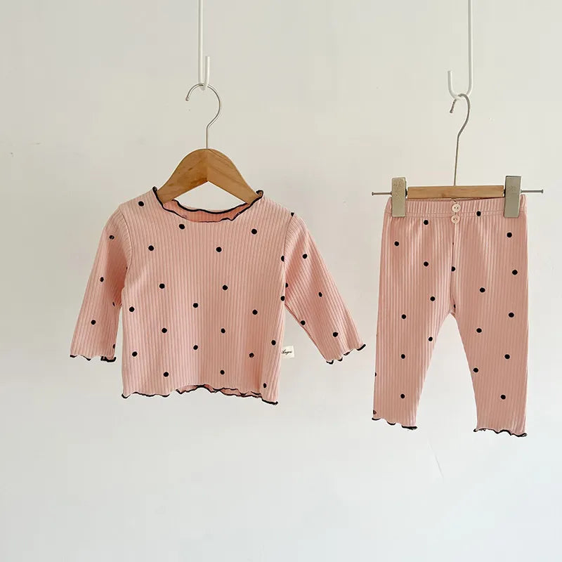 Frühlings-Schlafanzugset mit Punktemuster für Babys – Hauskleidung für Kleinkinder