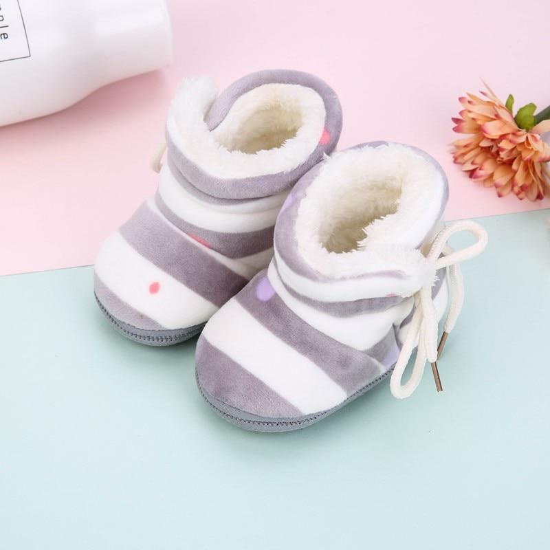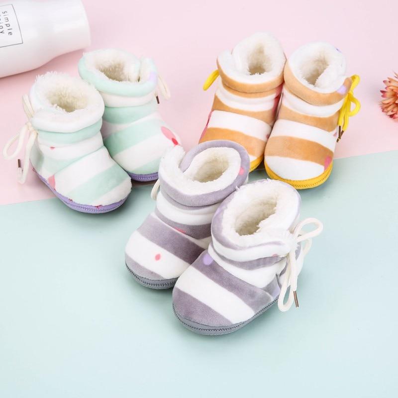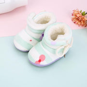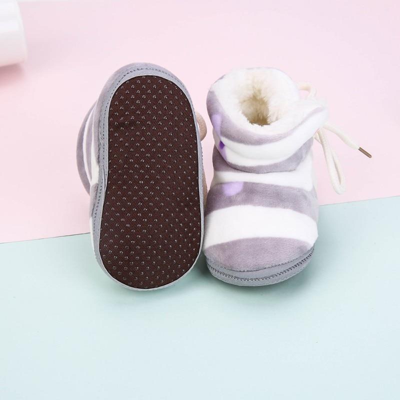 Frühstarter benötigen stabile und gemütliche Schuhe für draußen. Gestreifte Winterstiefel sind stylische und dabei äußerst bequeme Schuhe für Kinder, die gerade erst laufen gelernt haben. Die Sohle an der Unterseite ist rutschfest und der Röhrenriemen-Verschluss sorgt für einen sicheren und festen Halt am Boden. Das Innenfutter aus Kunstfell an den Knöcheln hält die kleinen Füße besonders warm. Dieser Artikel eignet sich hervorragend als Geschenk für frischgebackene Eltern, die auf der Suche nach trendigem Schuhwerk sind.