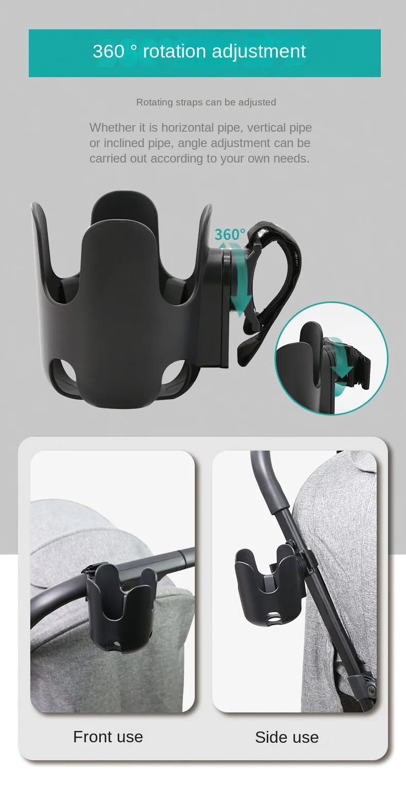Erweitern Sie die Reiseausrüstung Ihres Babys mit unserem um 360° drehbaren Getränkehalter für den Kinderwagen, einem vielseitigen 2-in-1-Zubehör für mehr Komfort. Dieser Getränkehalter aus robustem Kunststoff ist ideal, um unterwegs alles Wichtige griffbereit zu haben.