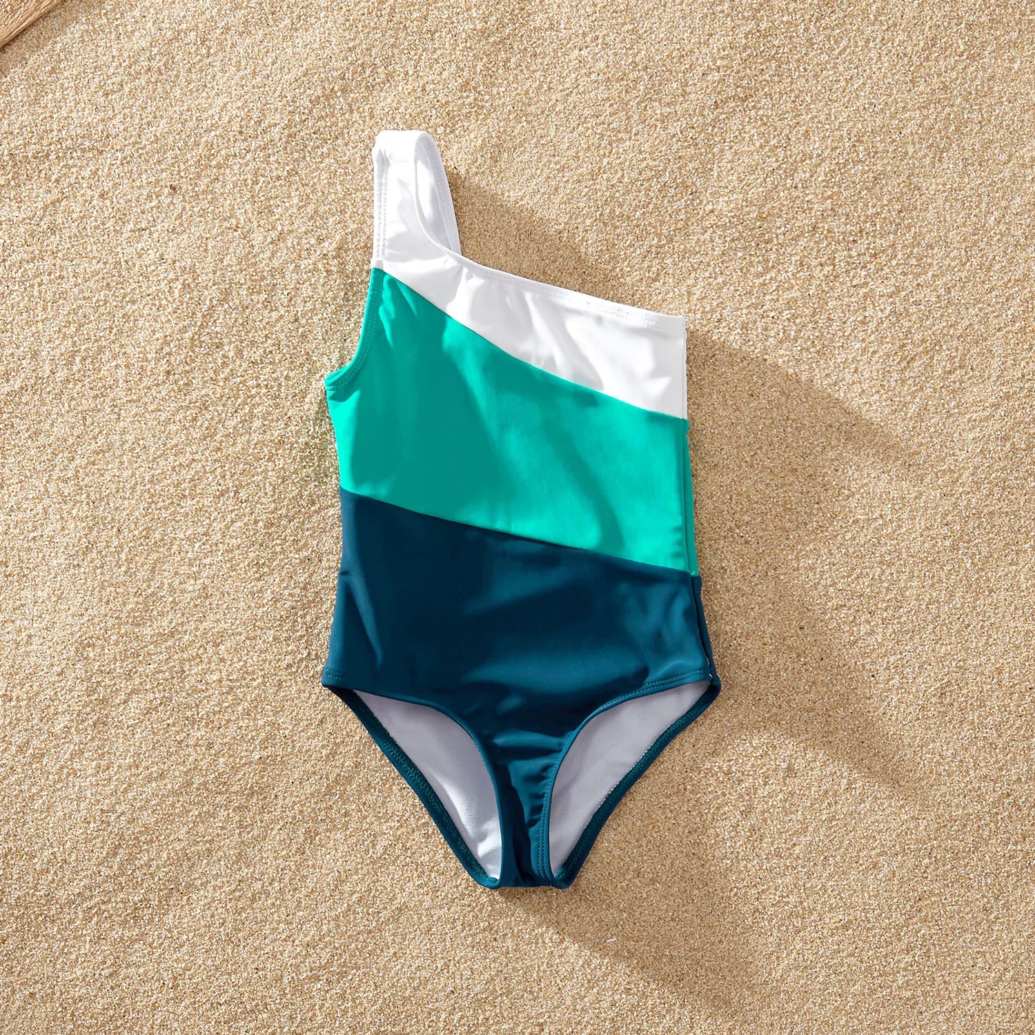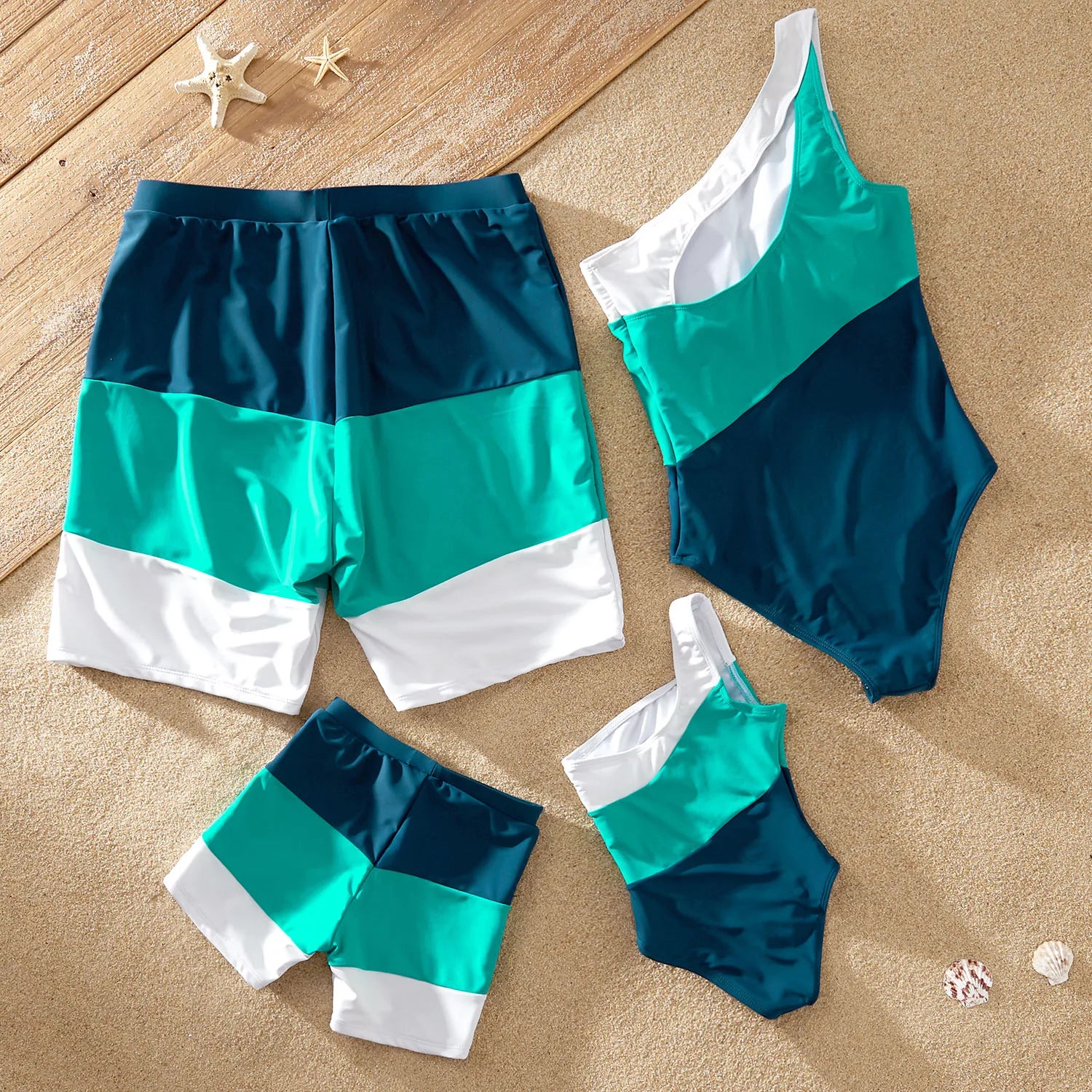 Sommerliches Farbblock-Familien-Badeanzug-Set