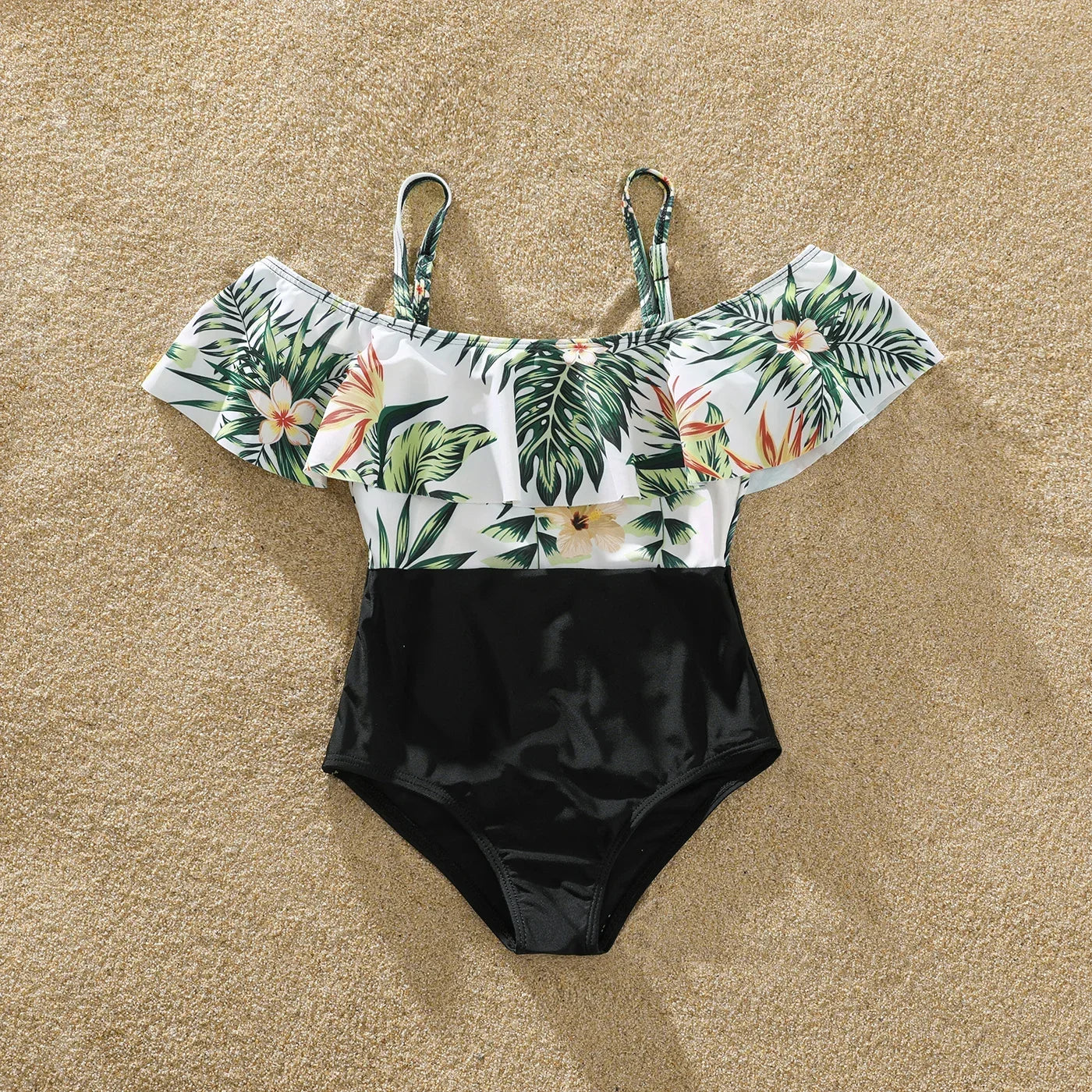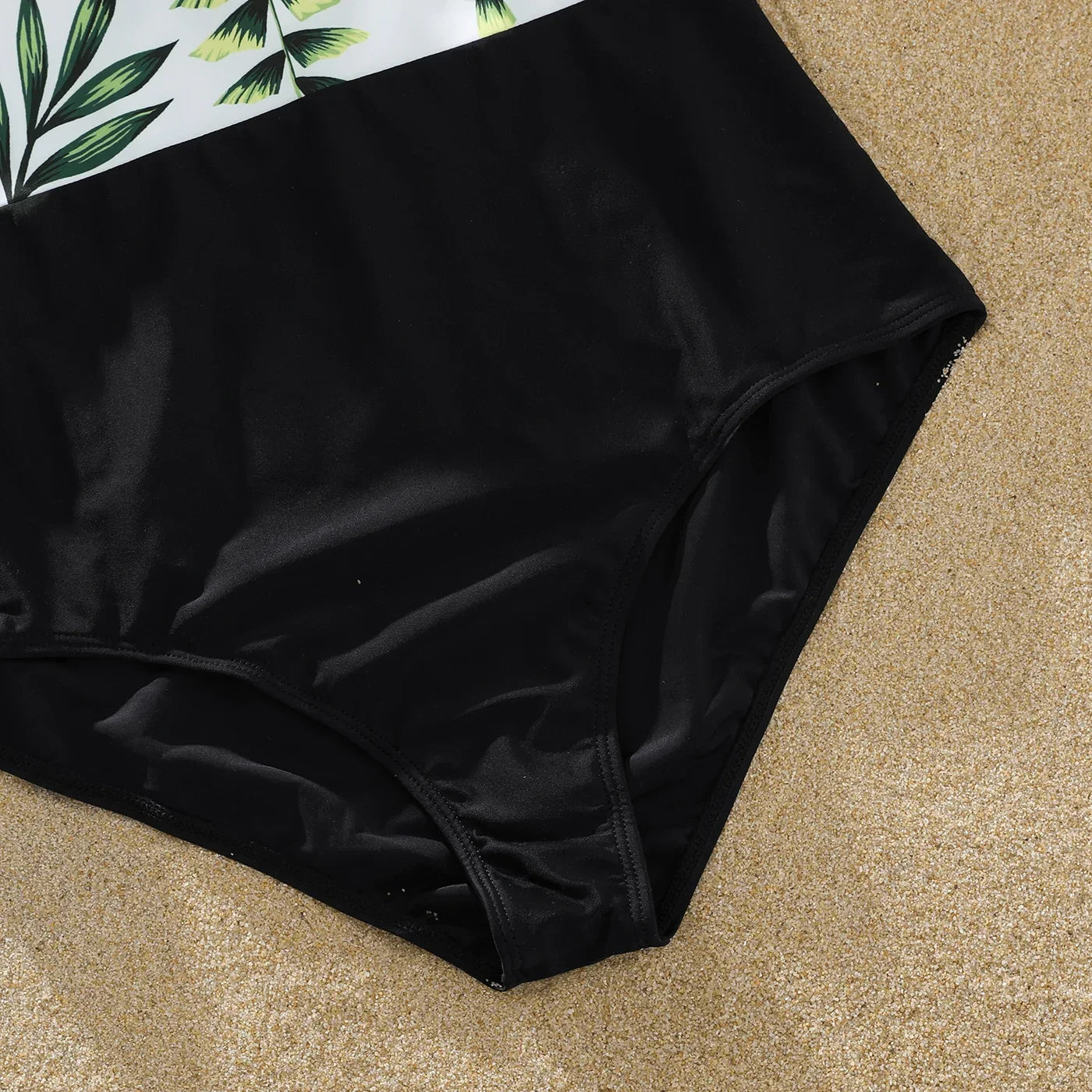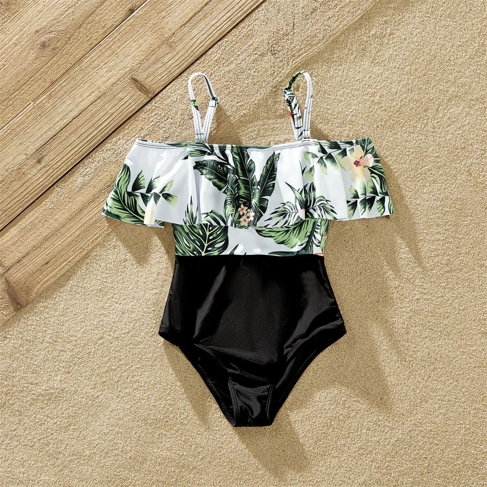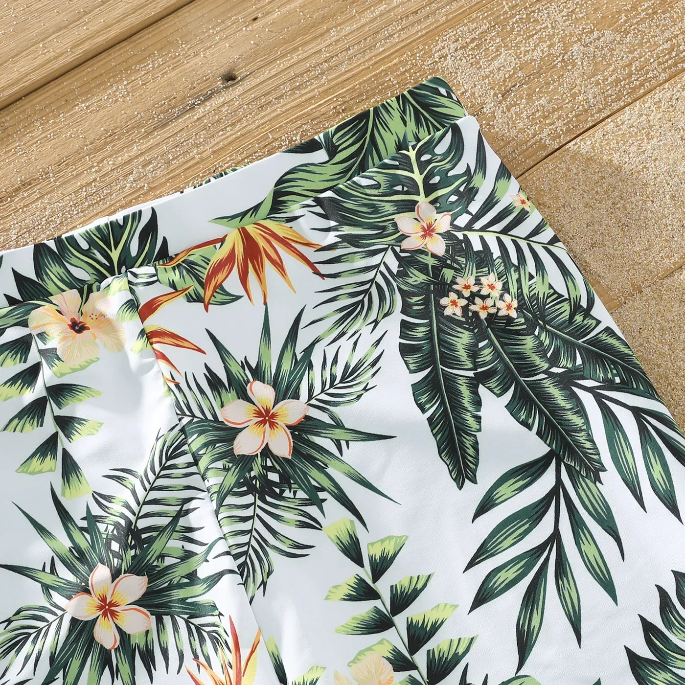 Dive into Trendy Gracefulness: This matching swimsuit set not only features a captivating plant print design but also adds a hint of gracefulness with the ruffle edge and stylish flair. Step into summer with a fashion-forward family statement!