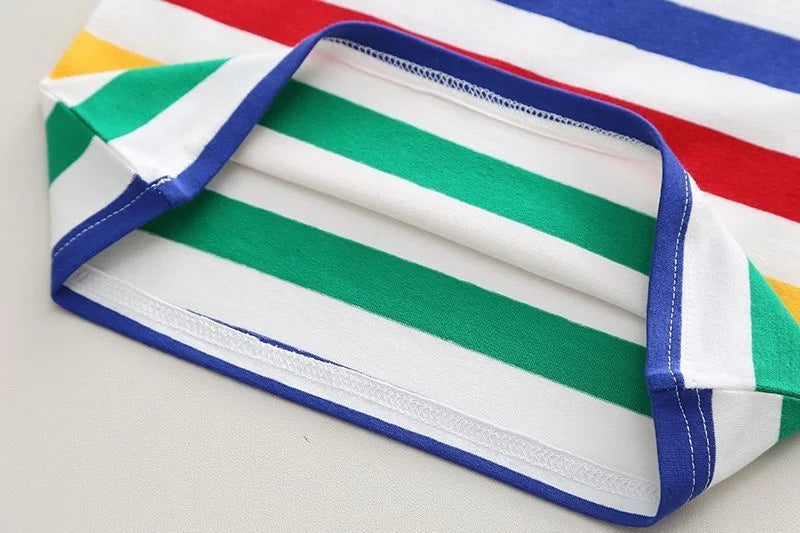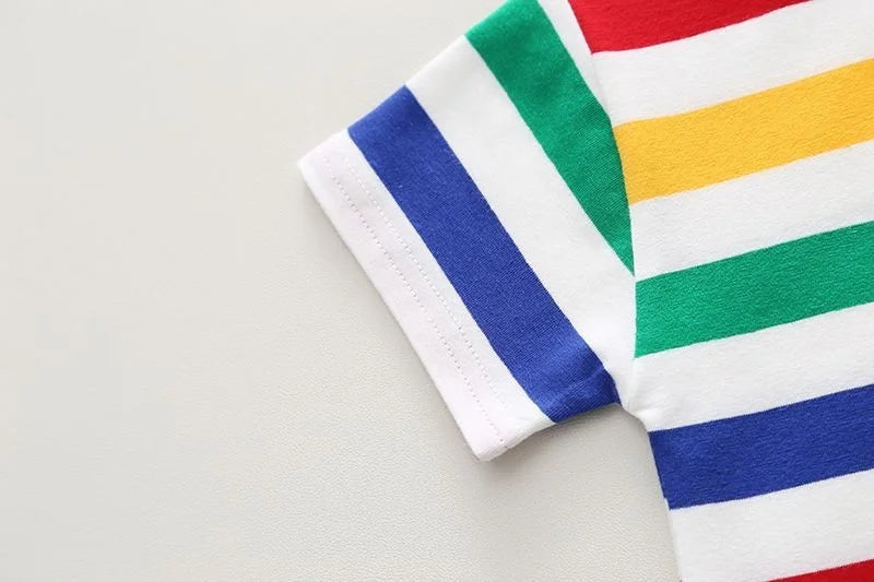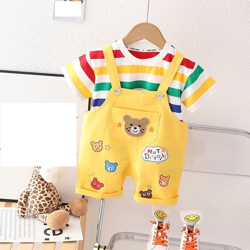 Machen Sie Ihre Kleinen bereit für die kommenden sonnigen Tage mit unserem Sommer-T-Shirt-Overall-Set mit Streifen. Dieses Ensemble aus weicher und atmungsaktiver Baumwolle hält Ihre Kinder im Sommer angenehm kühl und bequem.