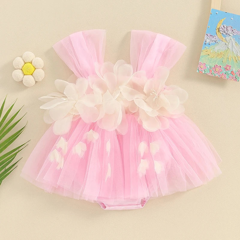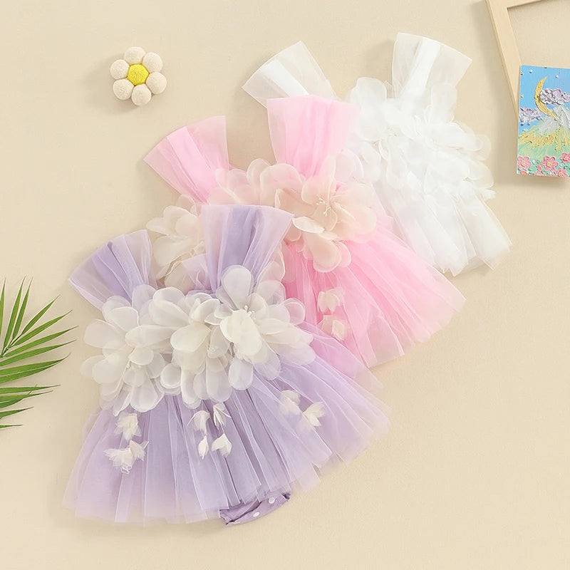 Sommerlicher Tüll-Blumen-Strampler: Ärmelloser Overall für Kleinkinder