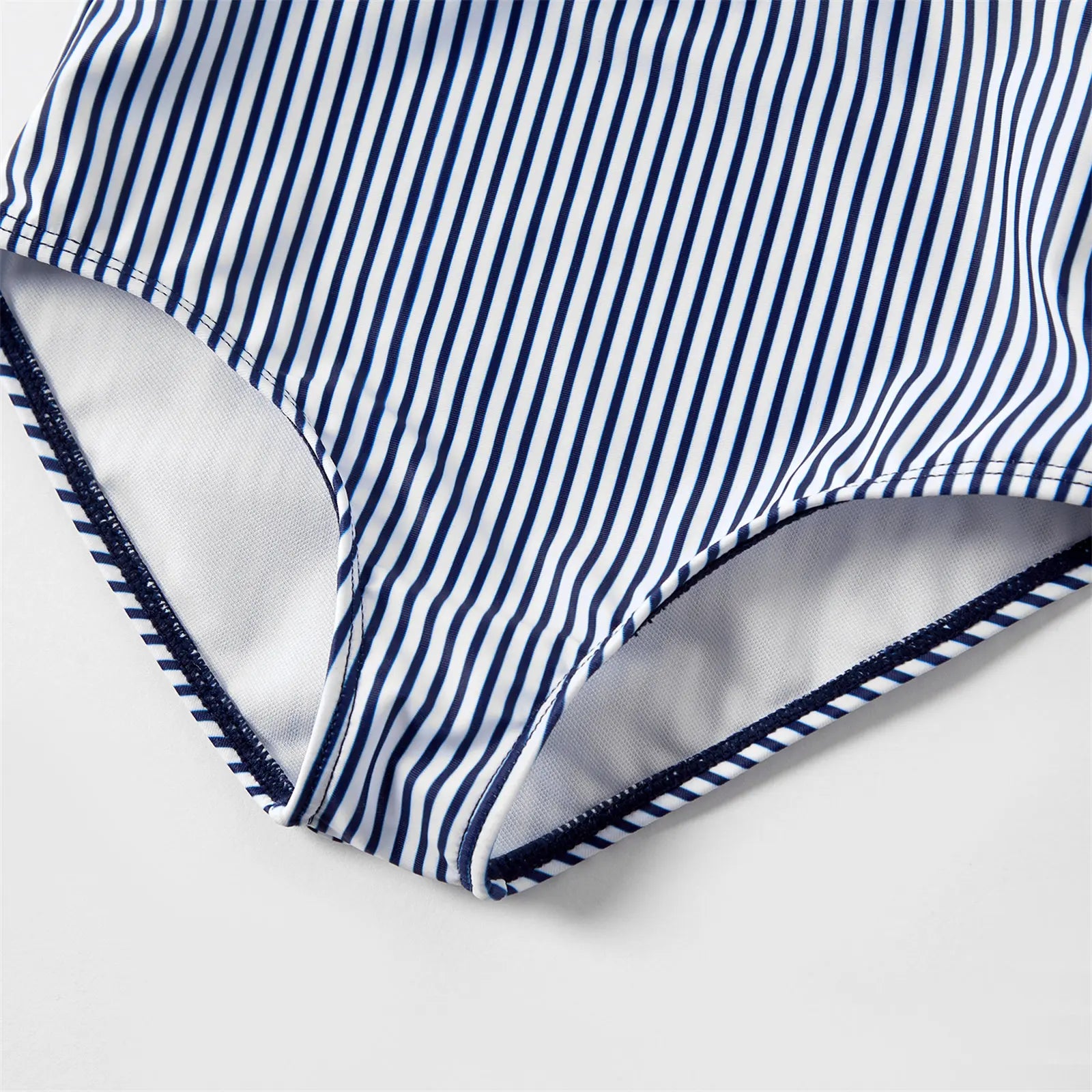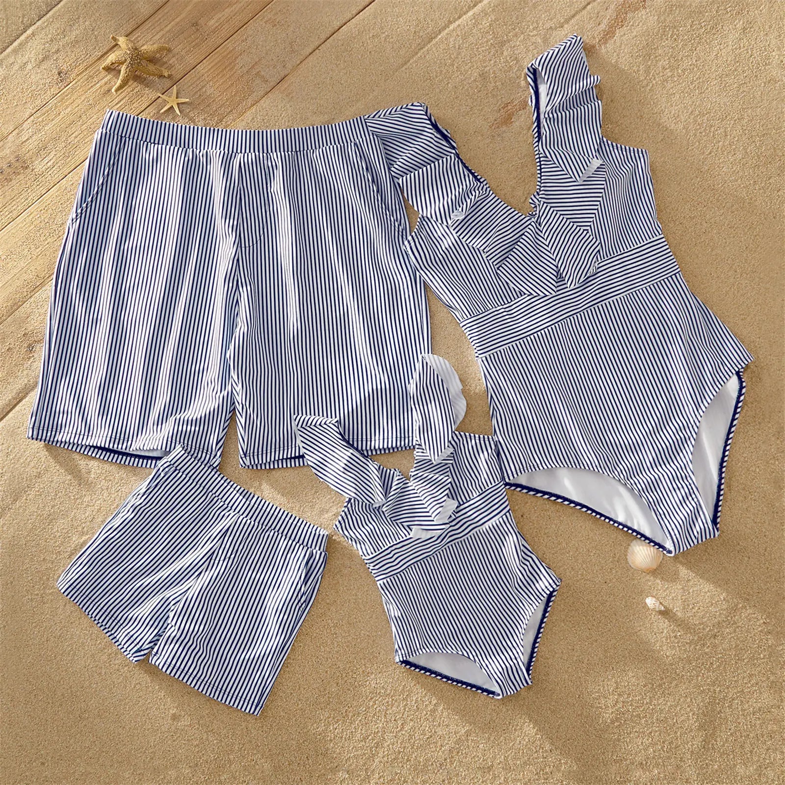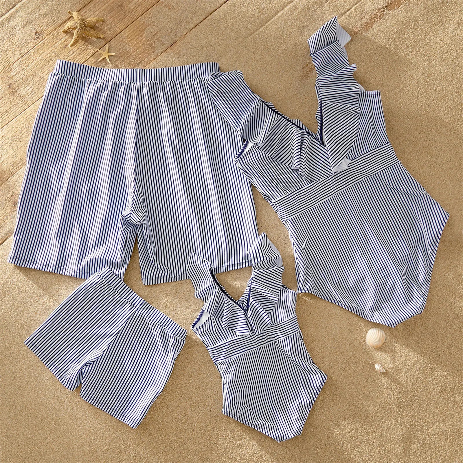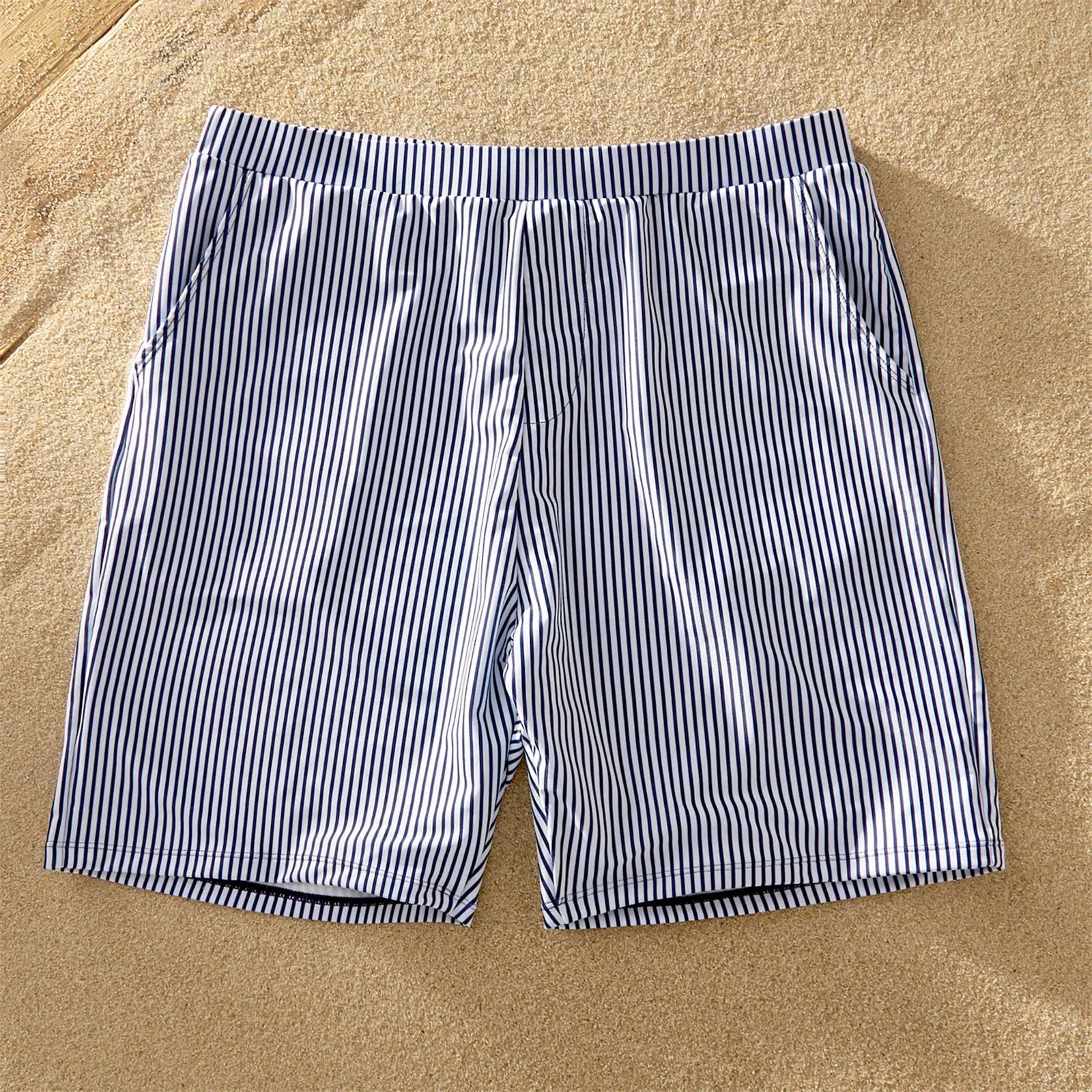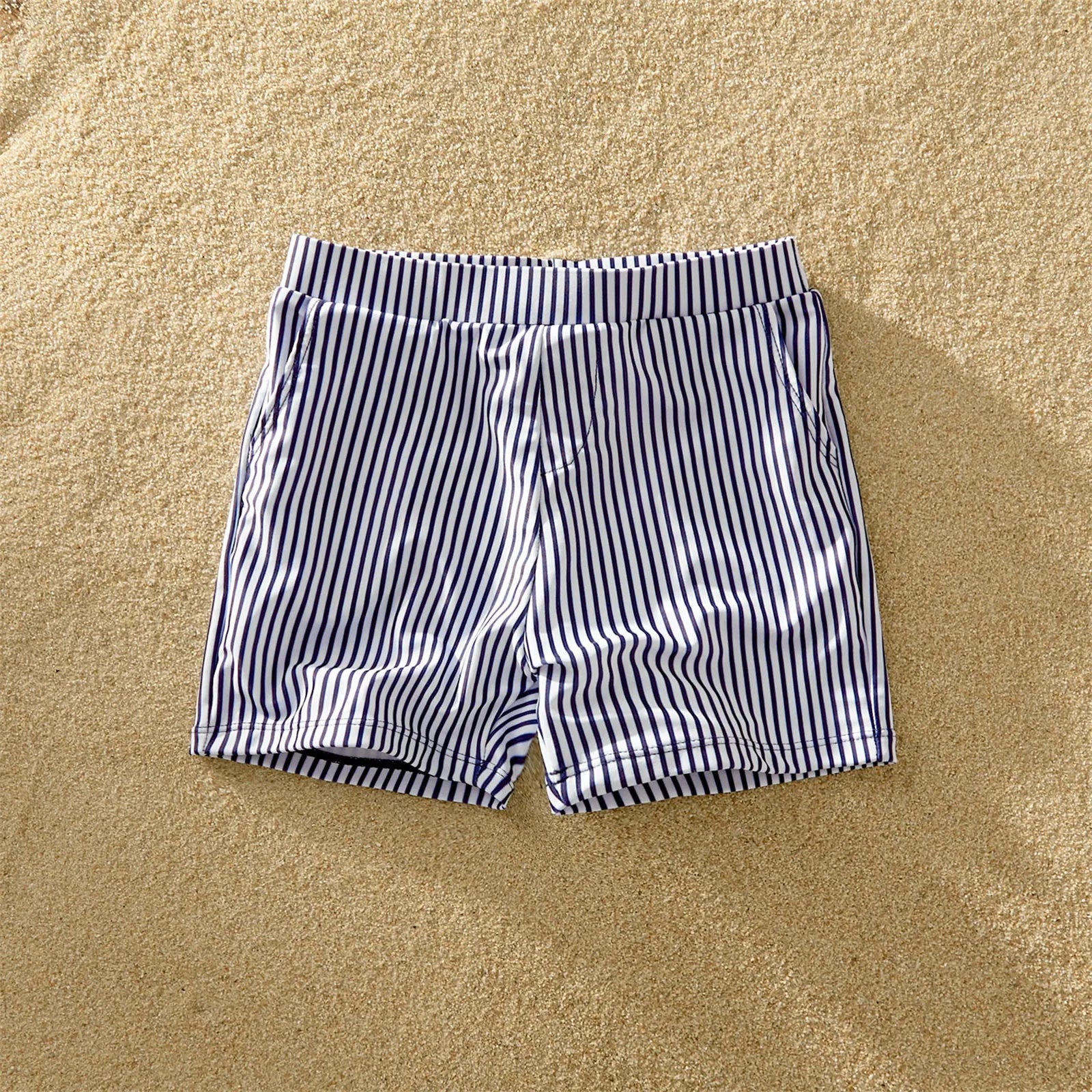 Mustertyp: Mit ihrem bezaubernden Streifenmuster verleihen diese Badeanzüge Ihrem Familien-Strandlook einen Hauch von Spaß und Lebendigkeit.