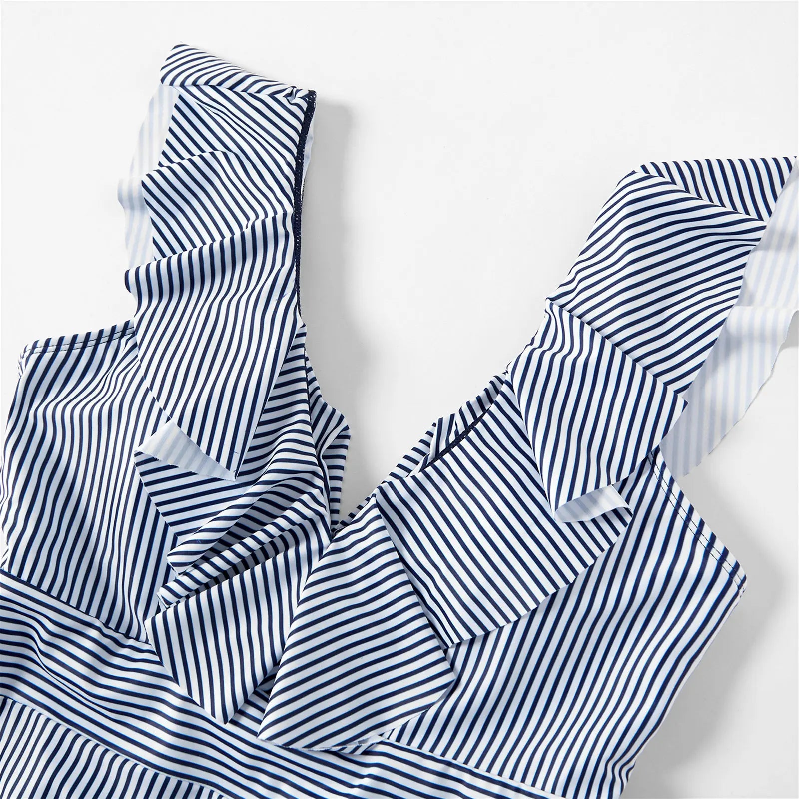 Sommerlicher V-Ausschnitt Volant Streifendruck Passende Familienbadeanzüge