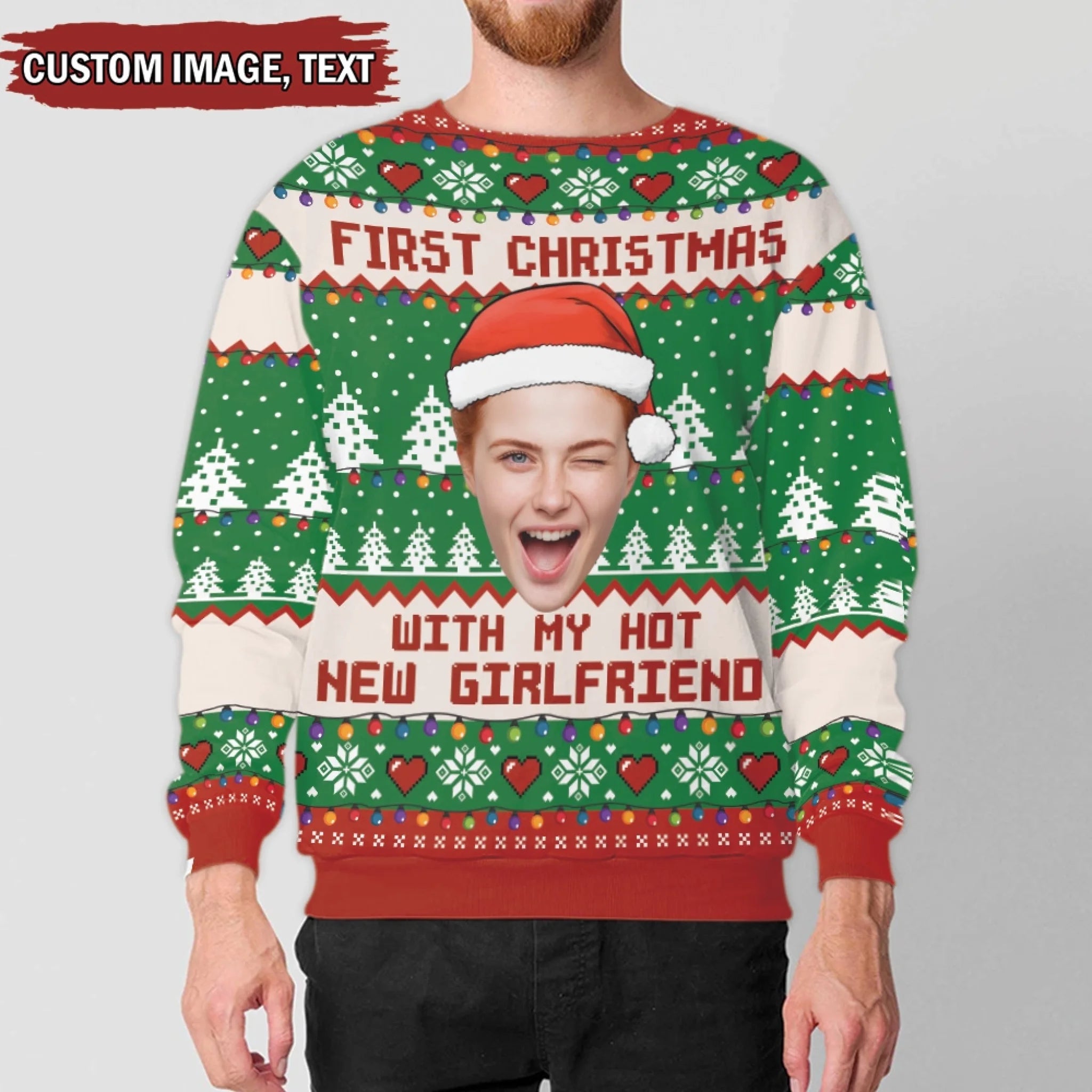 Mach dich bereit, in dieser festlichen Saison im Mittelpunkt zu stehen mit unserem individuellen Weihnachtspullover! 🎄✨ Lade dein eigenes Foto hoch – egal ob von deinem Haustier, deiner Frau, deinem Ehemann, Freund, Freundin oder einer geliebten Person – und personalisiere den Text, um einen lustigen und herzerwärmenden Pullover zu erschaffen, der wirklich einzigartig ist.