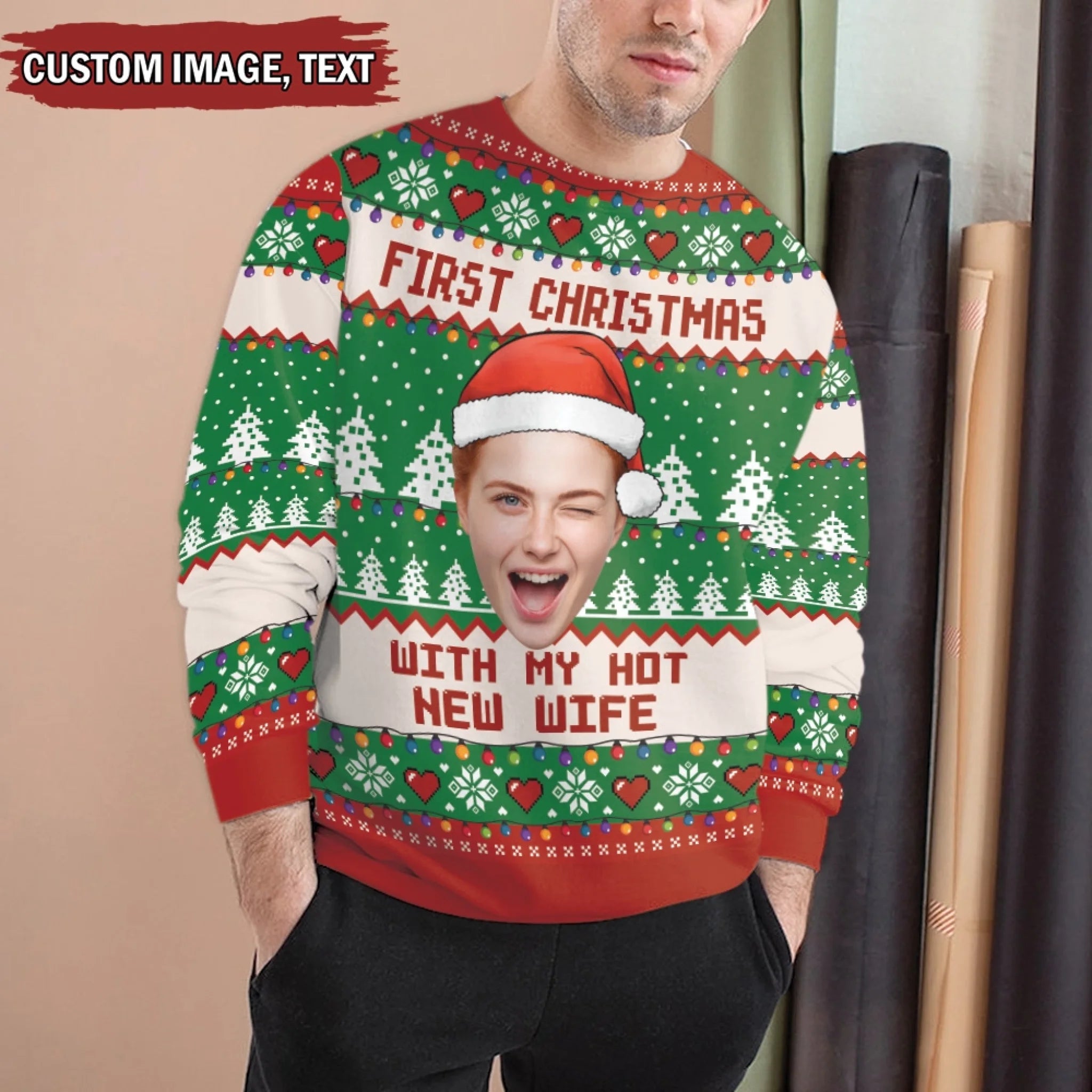 Personalisierbarer Ugly Christmas Sweater – Individuell mit Foto & Text gestaltbarer weihnachtlicher Strickpullover