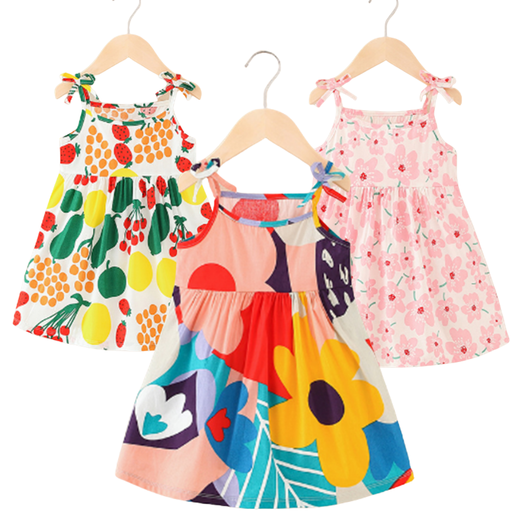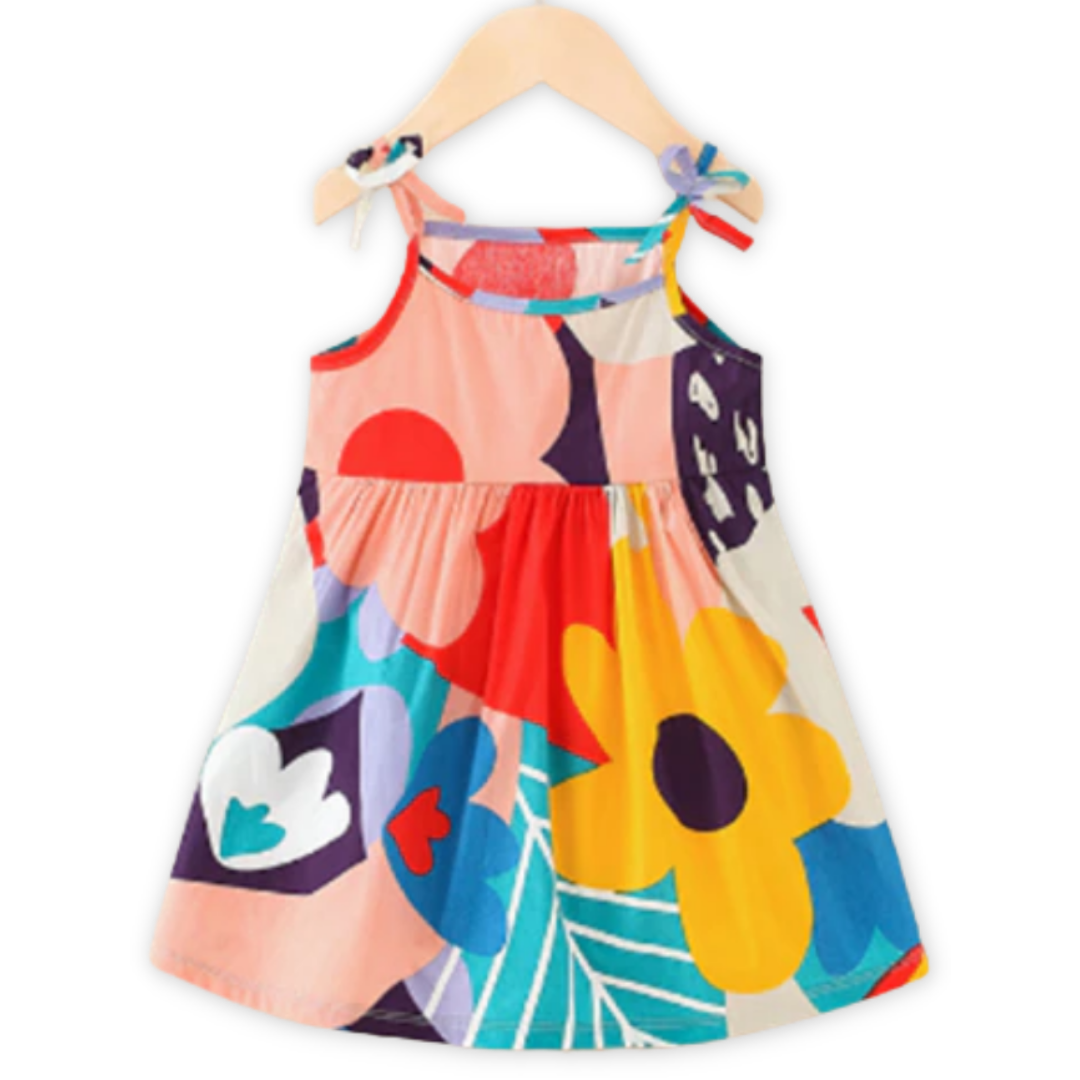 Robe d’été à Bretelles Ruban Imprimés Sucrés pour Petite Fille