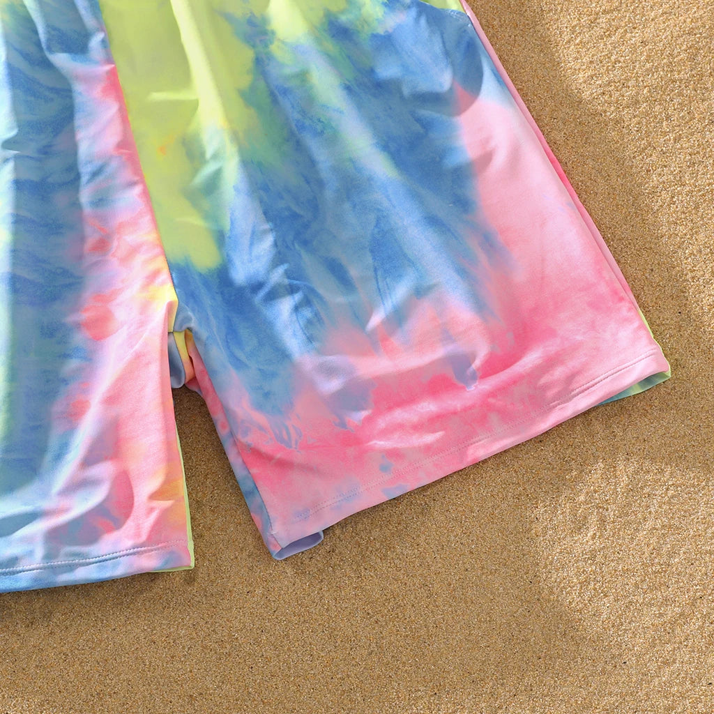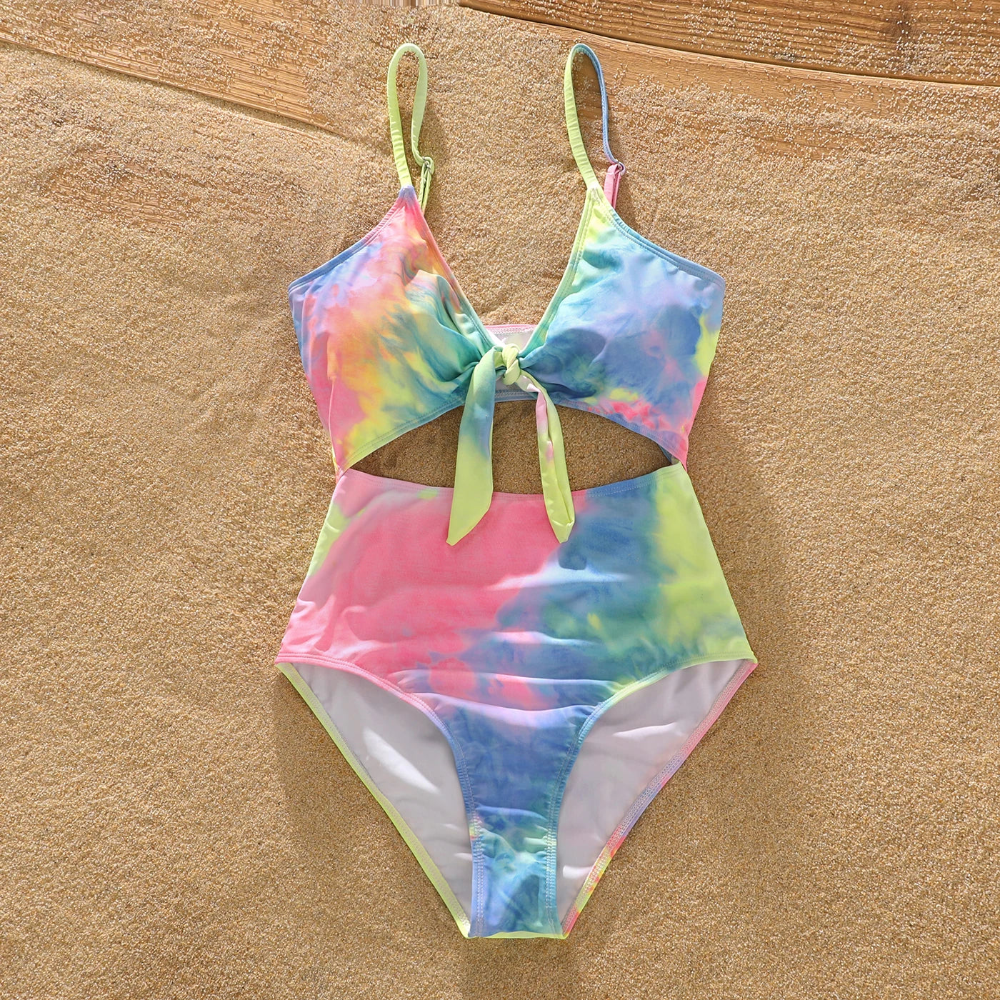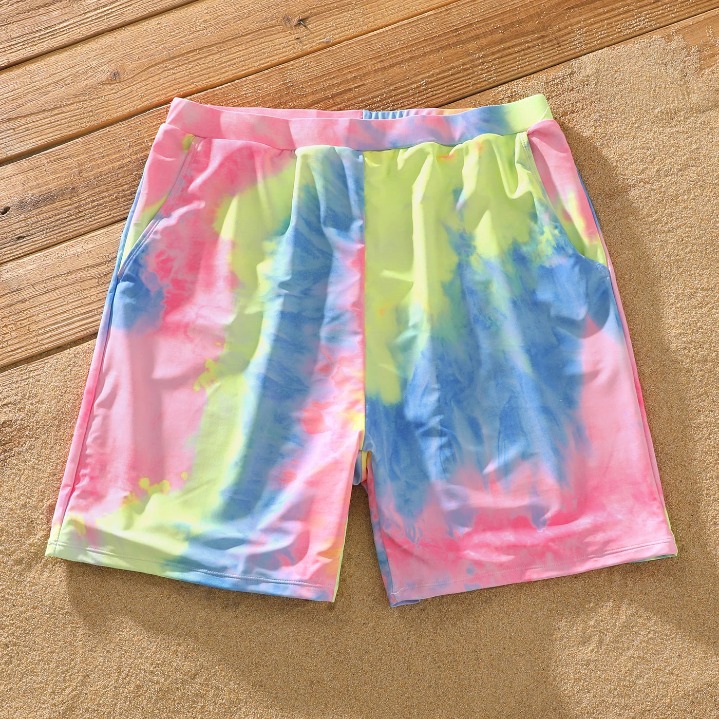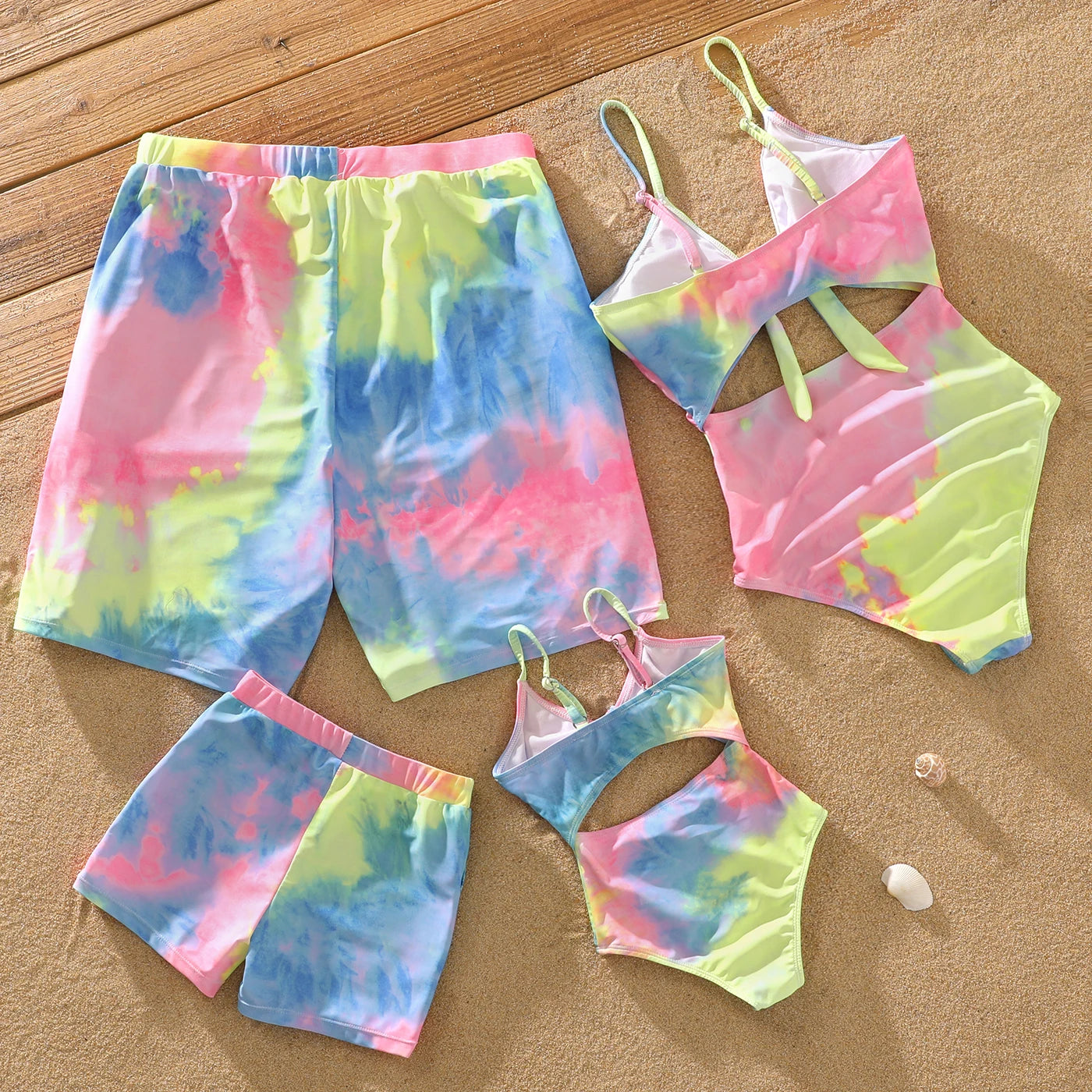 Produkteinführung: Mach dich bereit für einen Spritzer mutiger und verspielter Mode mit unserem passenden Familien-Set aus Batik-Badeanzug mit V-Ausschnitt, selbstbindenden Spaghettiträgern und Badehose. Erleben Sie diesen Sommer ein stilvolles Wasserabenteuer mit Ihren Lieben in diesem auffälligen Ensemble.