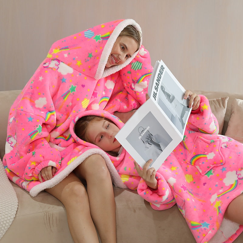 Manta con Capucha Familiar de Sherpa - Diseño de Unicornio