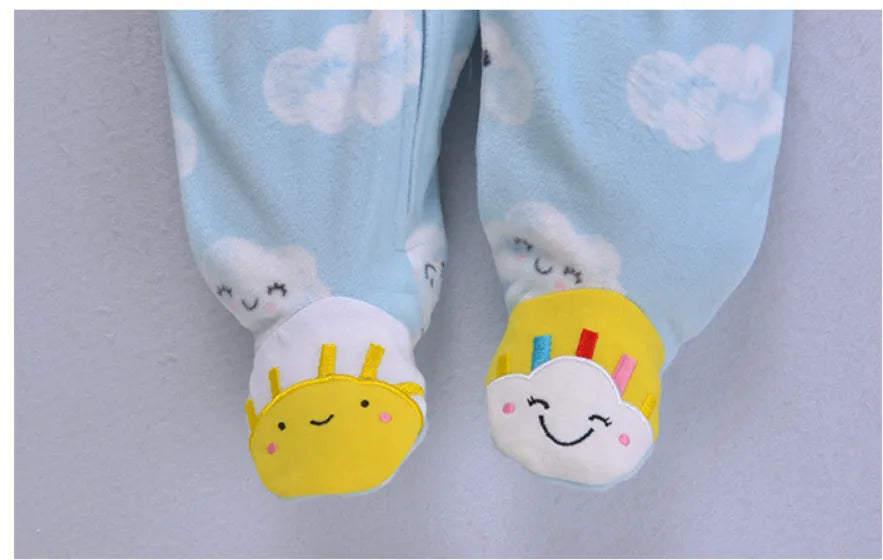 Stilvoll und gemütlich mit unserem warmen Fleece-Baby-Strampler – einem bezaubernden Cartoon-Pyjama mit Füßen!