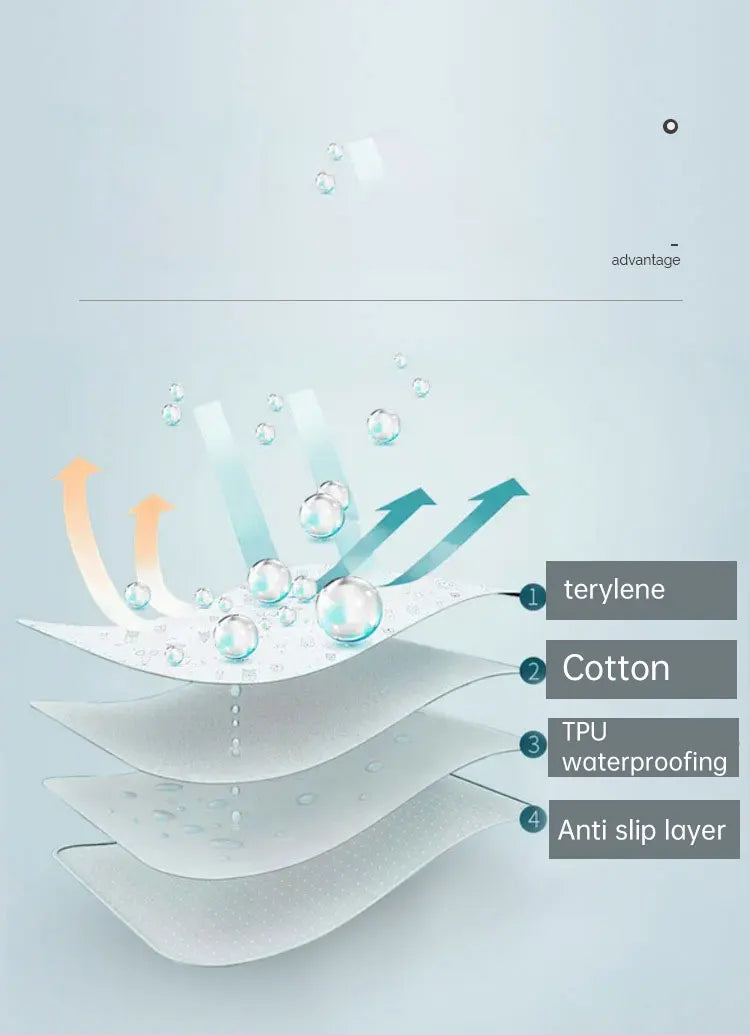 Diese Urinunterlage mit ihrer 4-Lagen-Konstruktion ist außen weich und innen vollständig wasserdicht. Sie blockiert effektiv Feuchtigkeit und hält Oberflächen sauber und trocken.