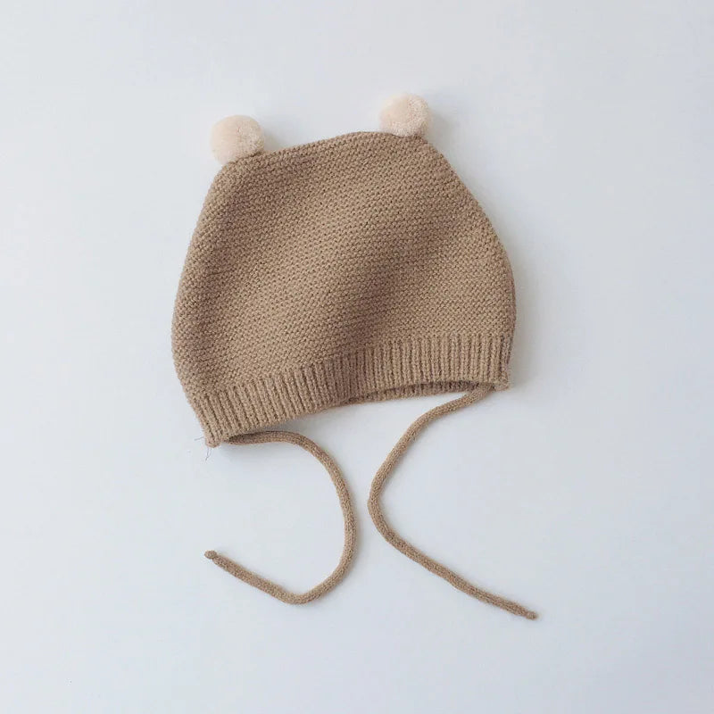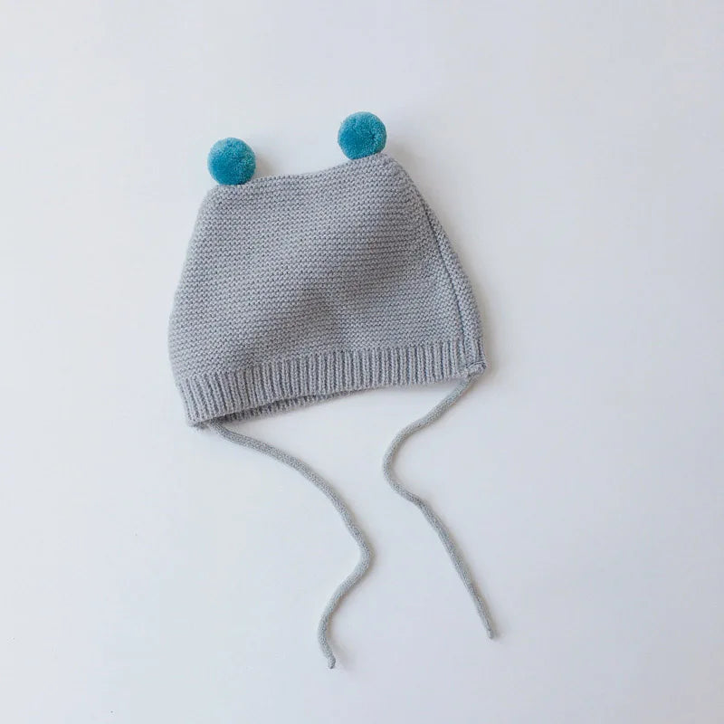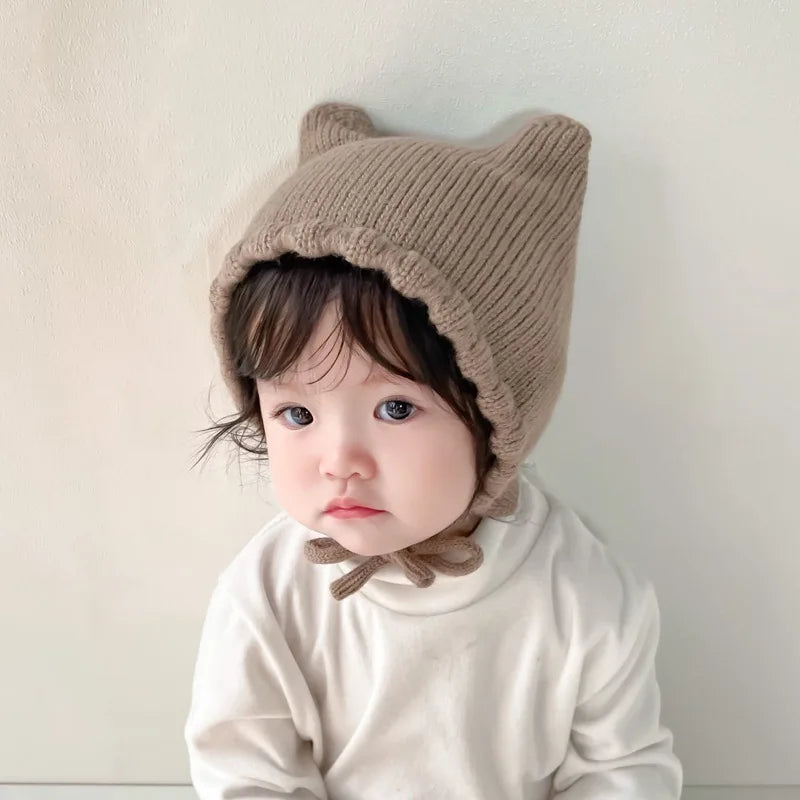 Wir präsentieren unsere Winter-Cartoon-Baby-Strickmütze – einfarbige Ohrenschutzmütze (Junge/Mädchen)