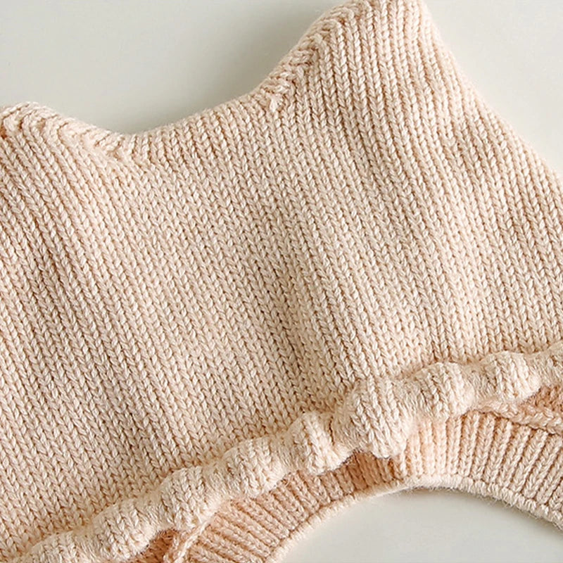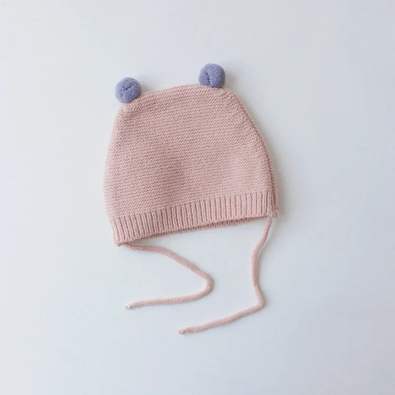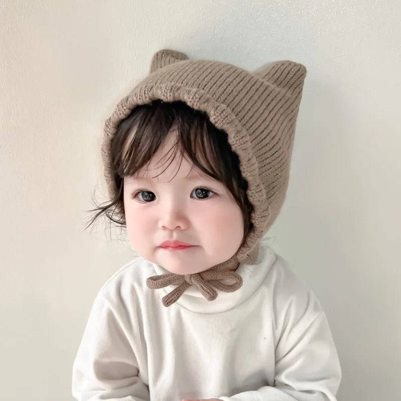 Winter Cartoon Baby Strickmütze - Einfarbige Ohrenschutzkappe