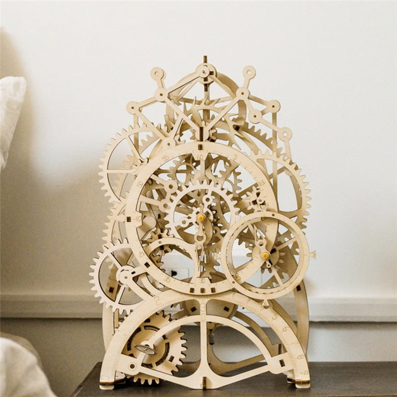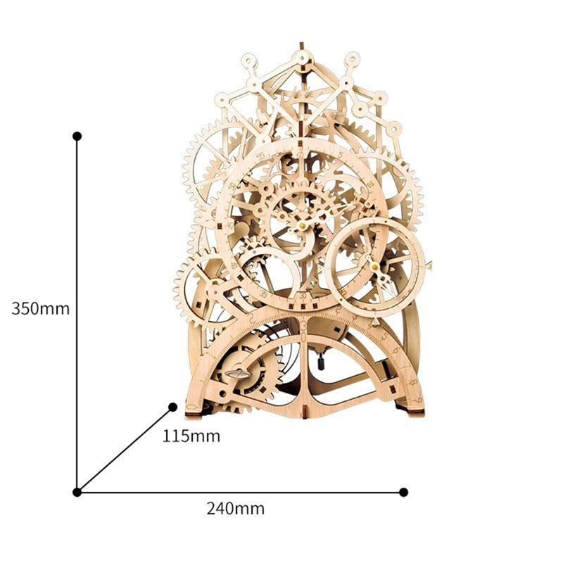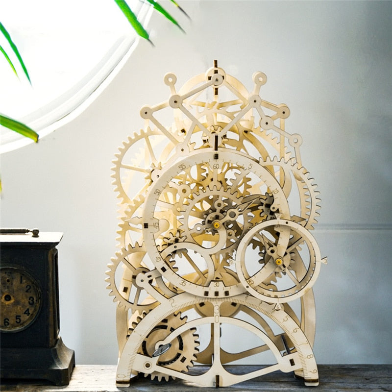 Diese einzigartige und exquisite Pendeluhr ist ein federbetriebenes 3D-Holzpuzzle mit mechanischem Zahnrad. Erleben Sie den Lauf der Zeit durch die Rotation mechanischer Zahnräder. Es bietet Ihnen ein fantastisches Bauerlebnis.