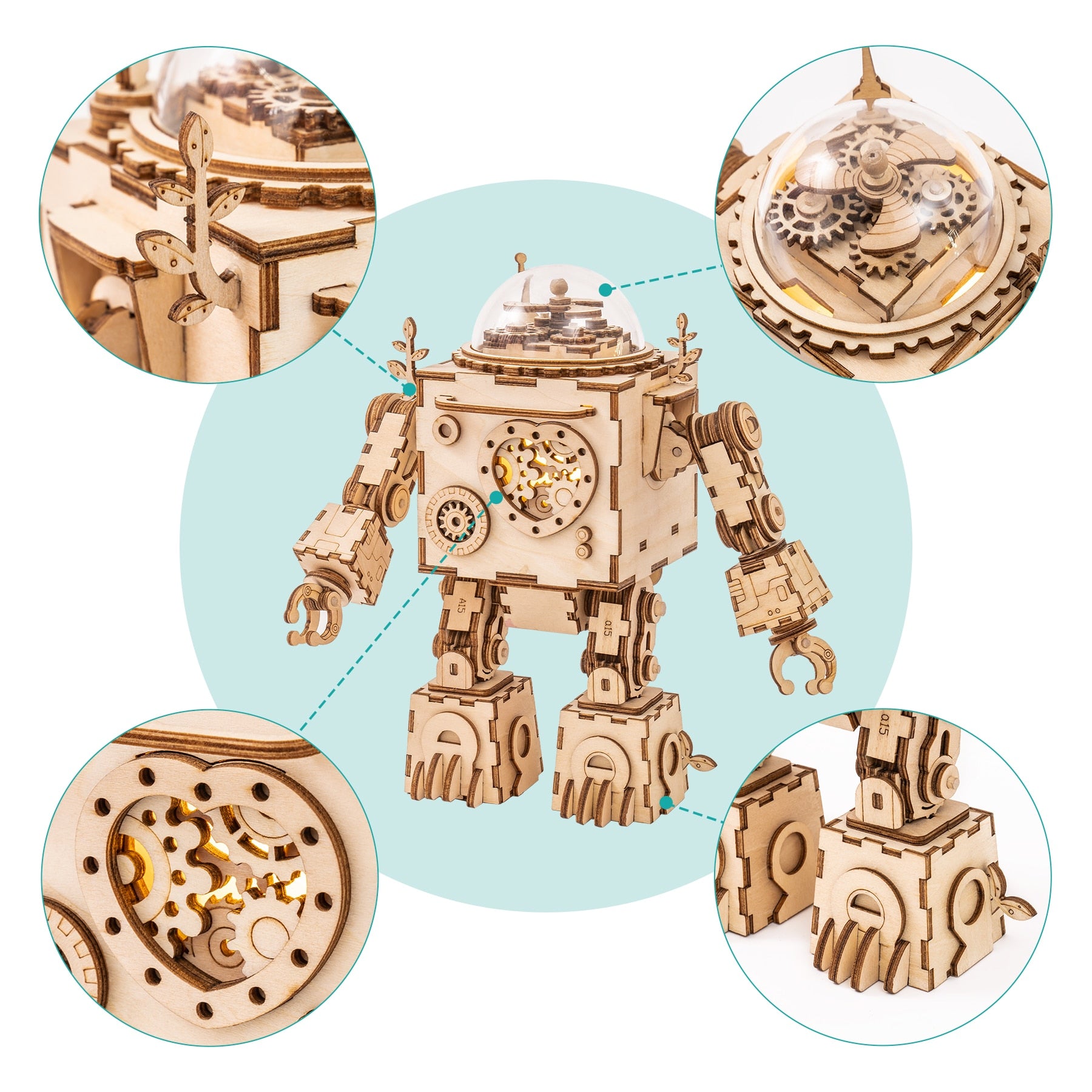Juguete Educativo de Madera | Caja de Música Robot Steampunk | ¡El Regalo Perfecto para tus Pequeños!